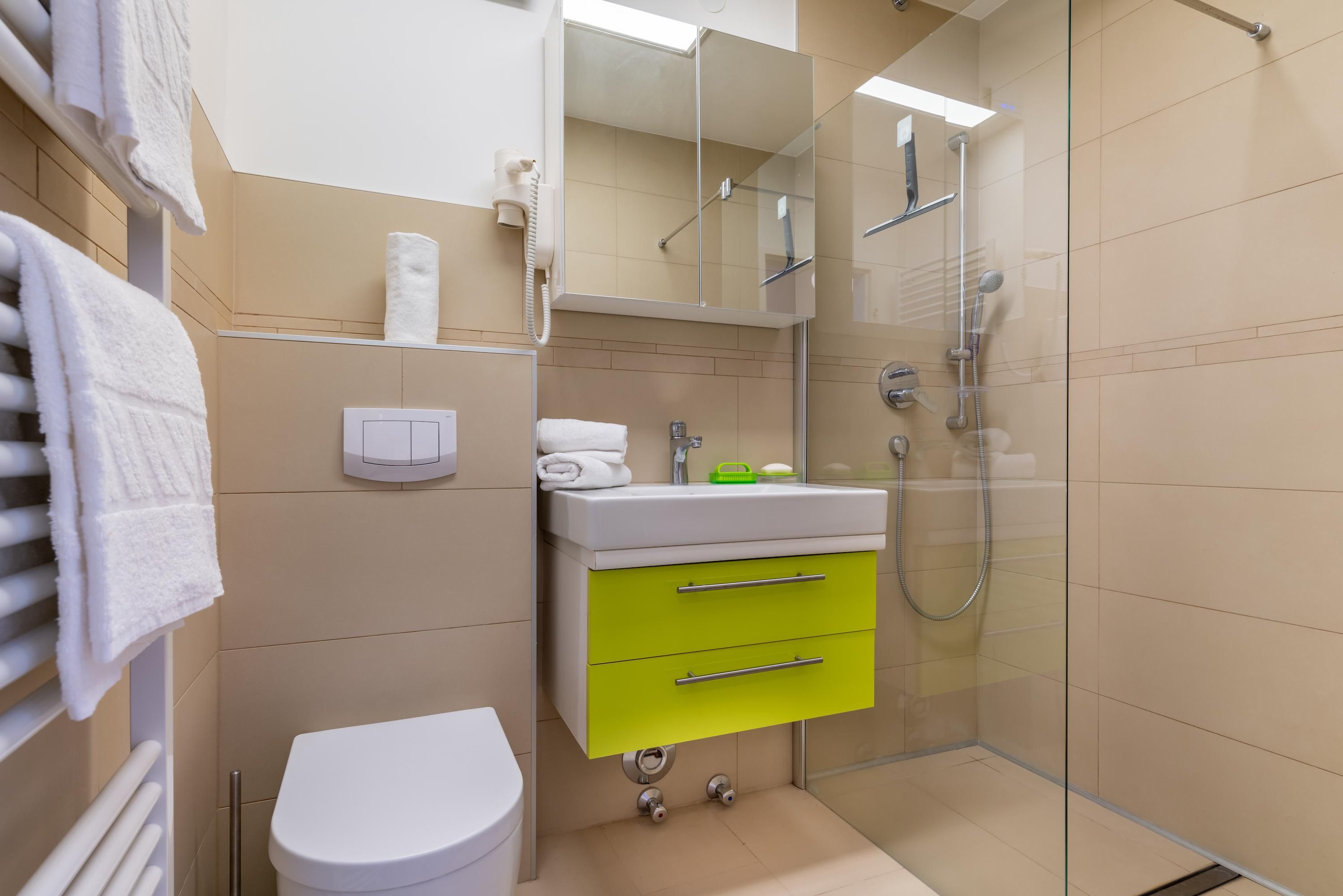 Dich erwartet ein Apartment mit Schlafzimmer, Wohnküche und Badezimmer.