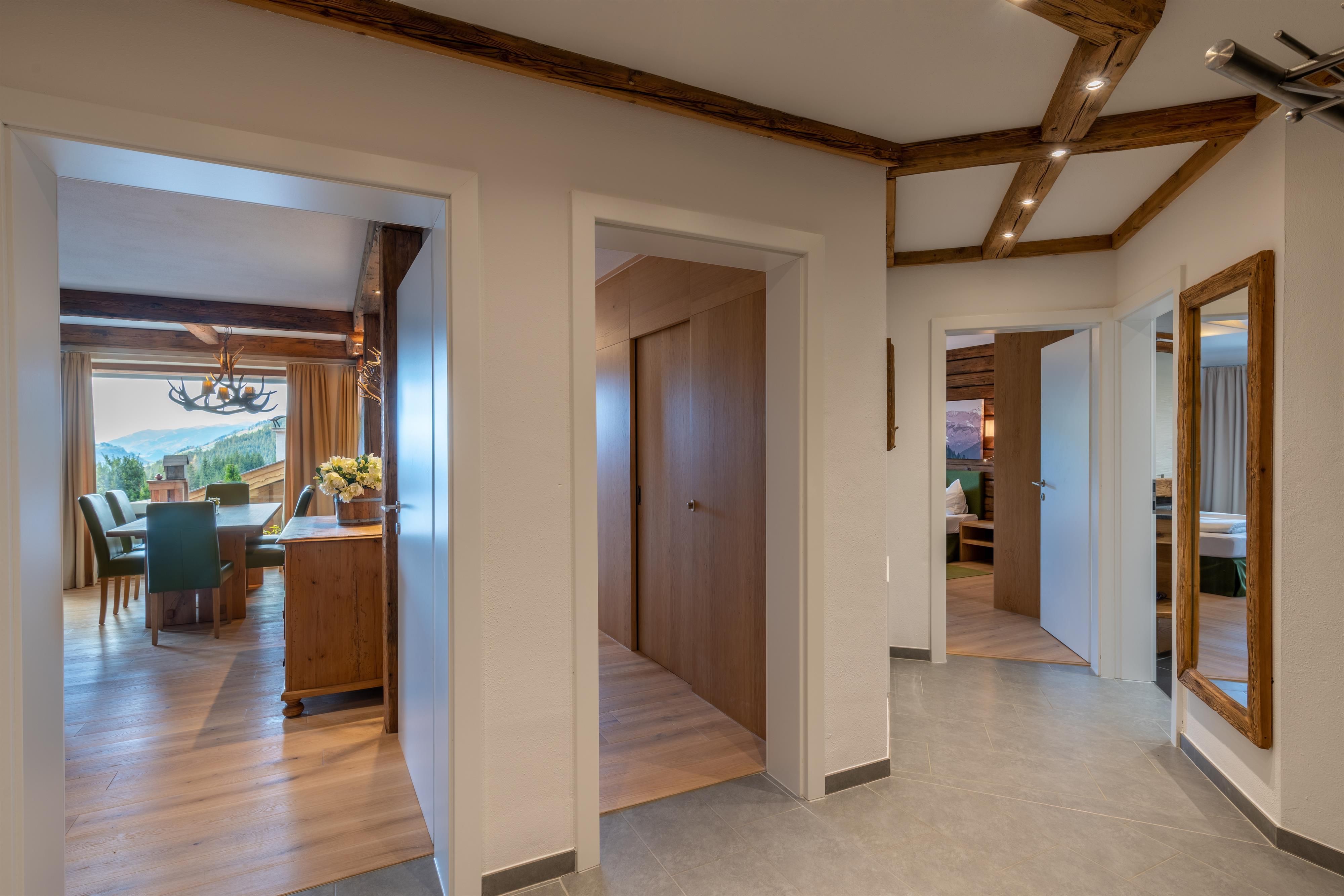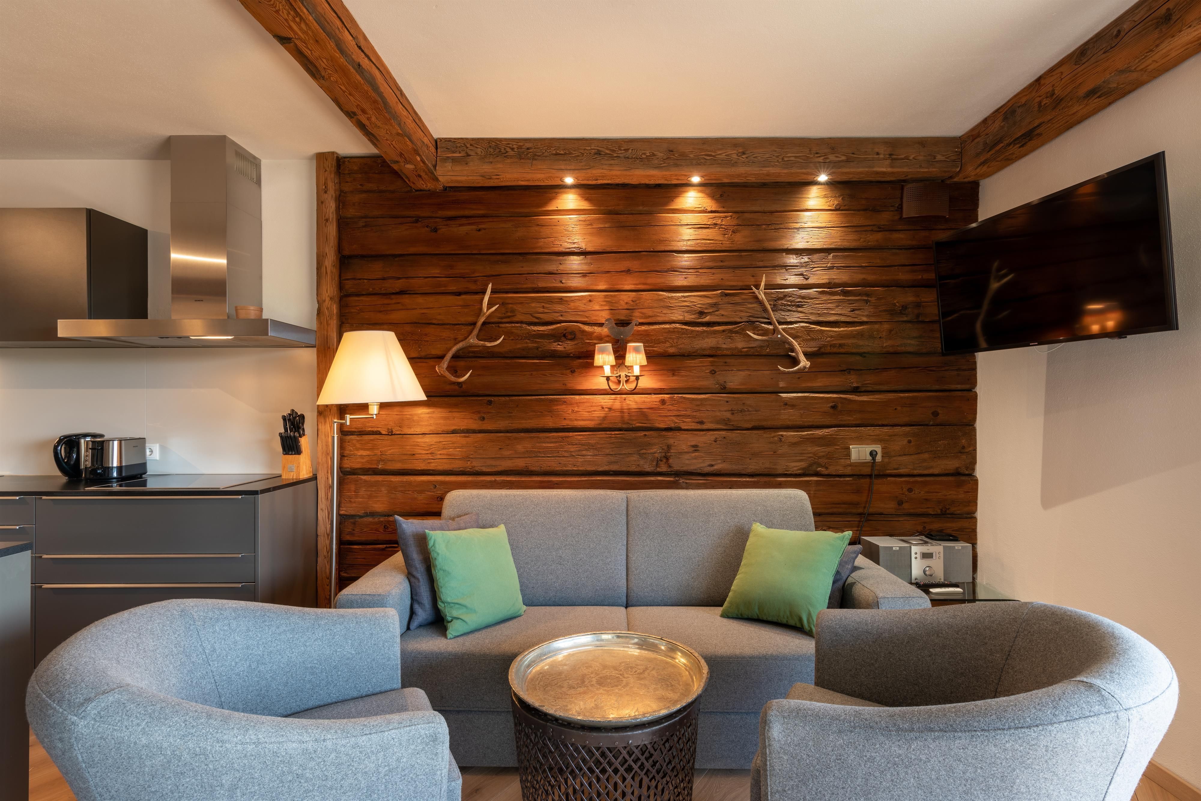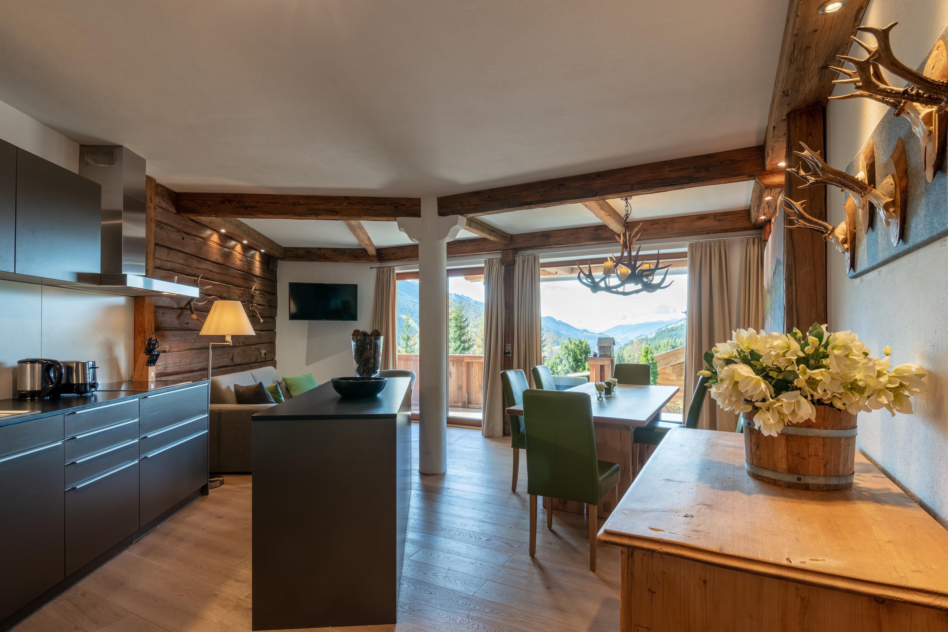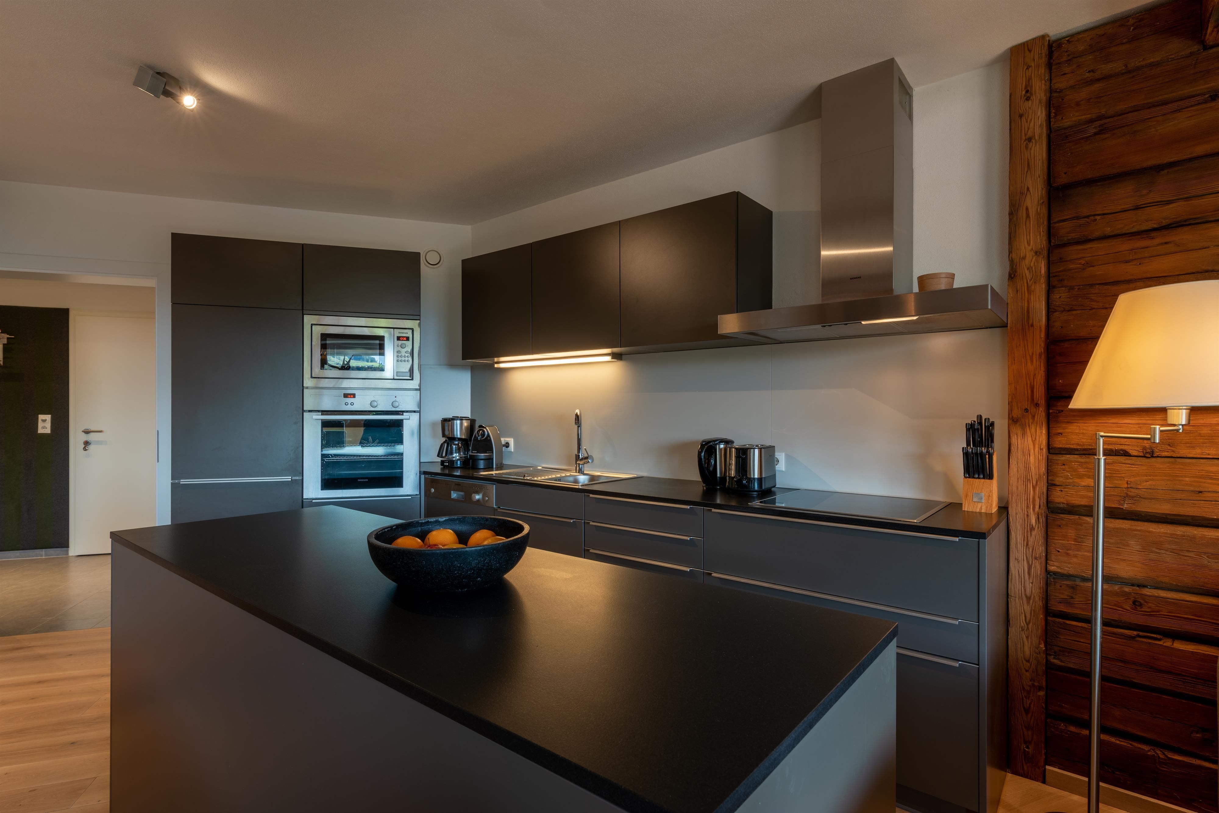 Dich erwartet ein Apartment mit 2 Schlafzimmern, Wohnküche inklusive großem Esstisch, Badezimmer und einer privaten Sauna.