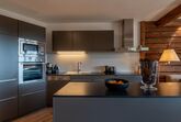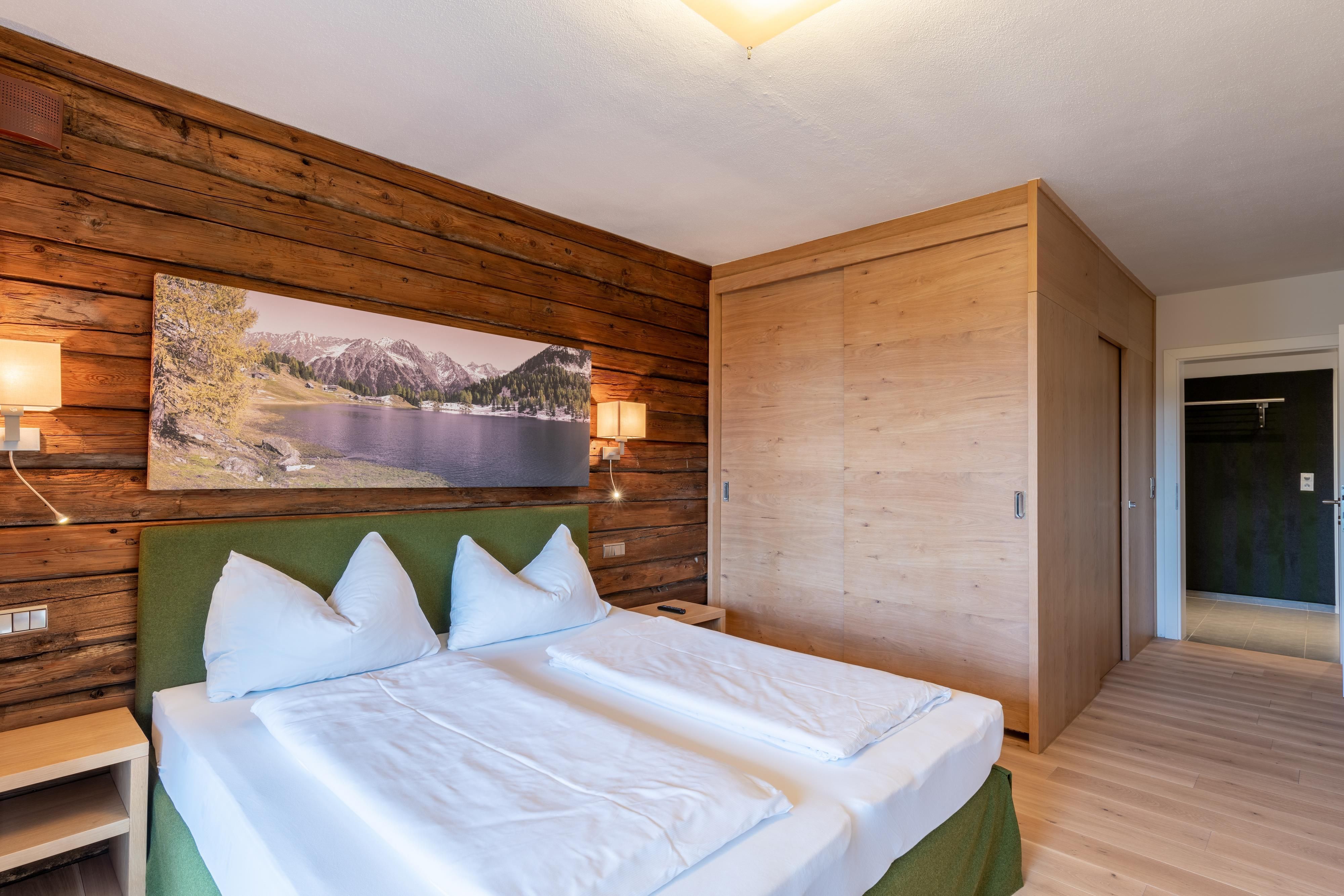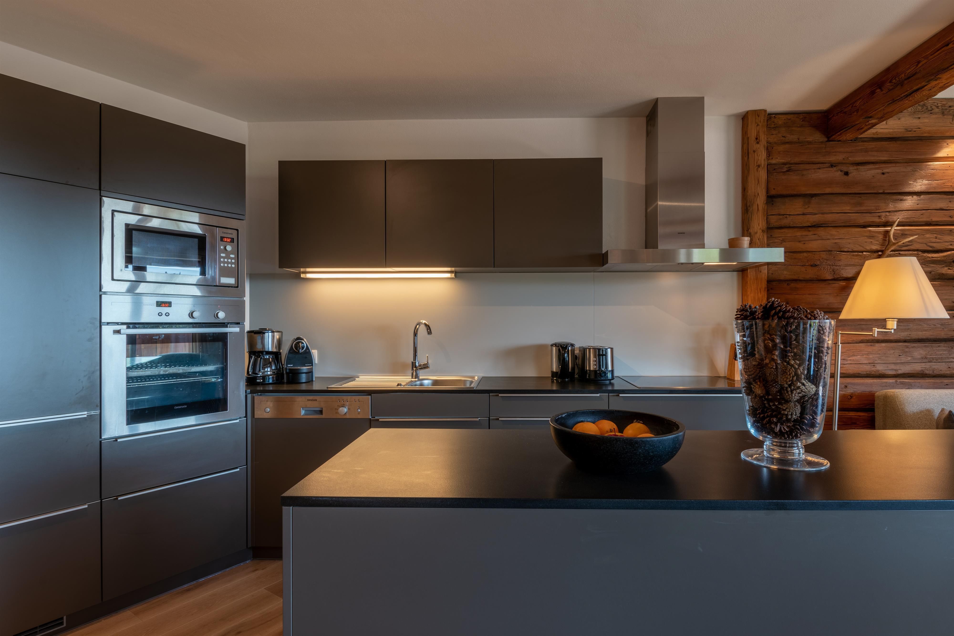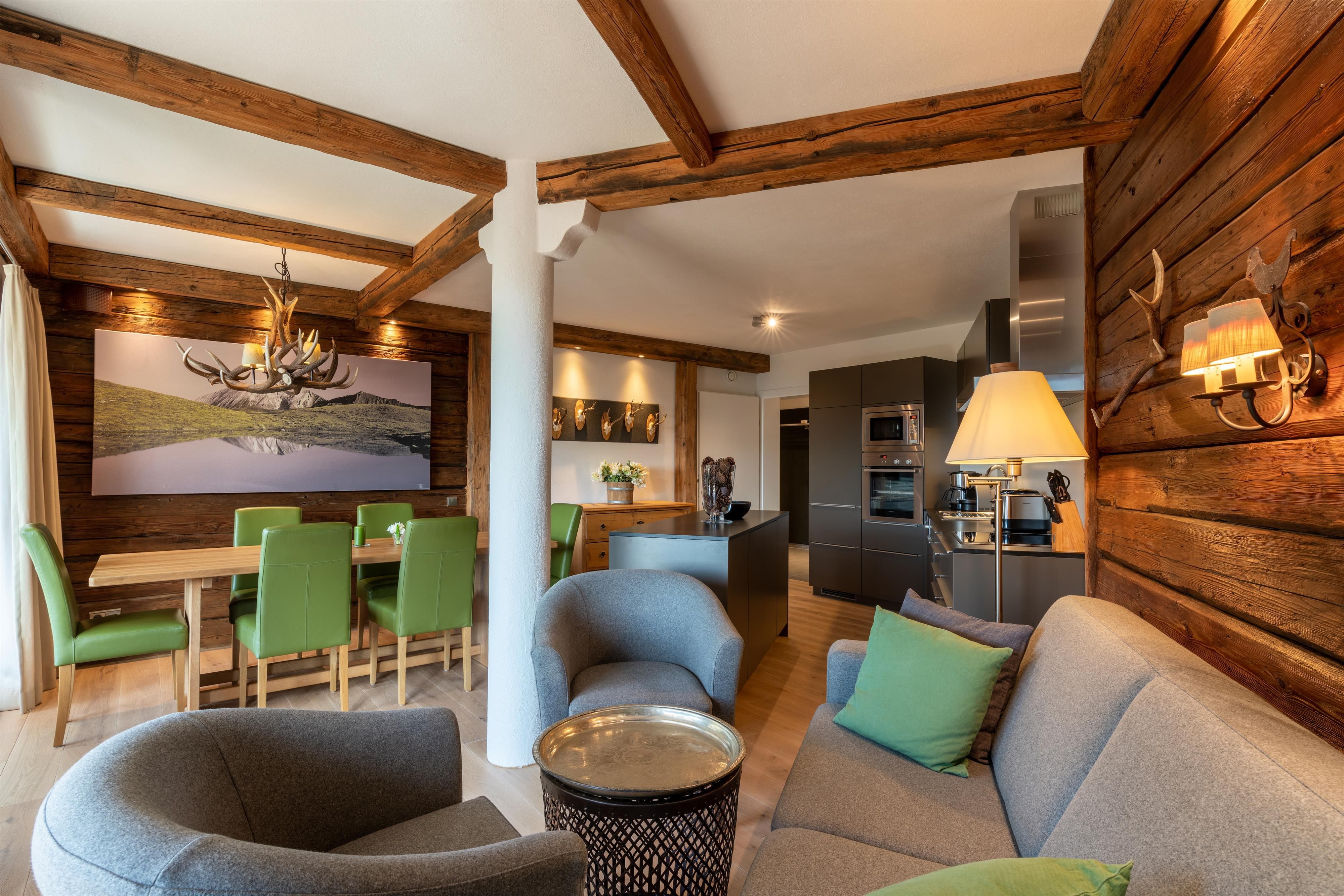 Dich erwartet ein Apartment mit 2 Schlafzimmern, Wohnküche inklusive großem Esstisch, Badezimmer und einer privaten Sauna.