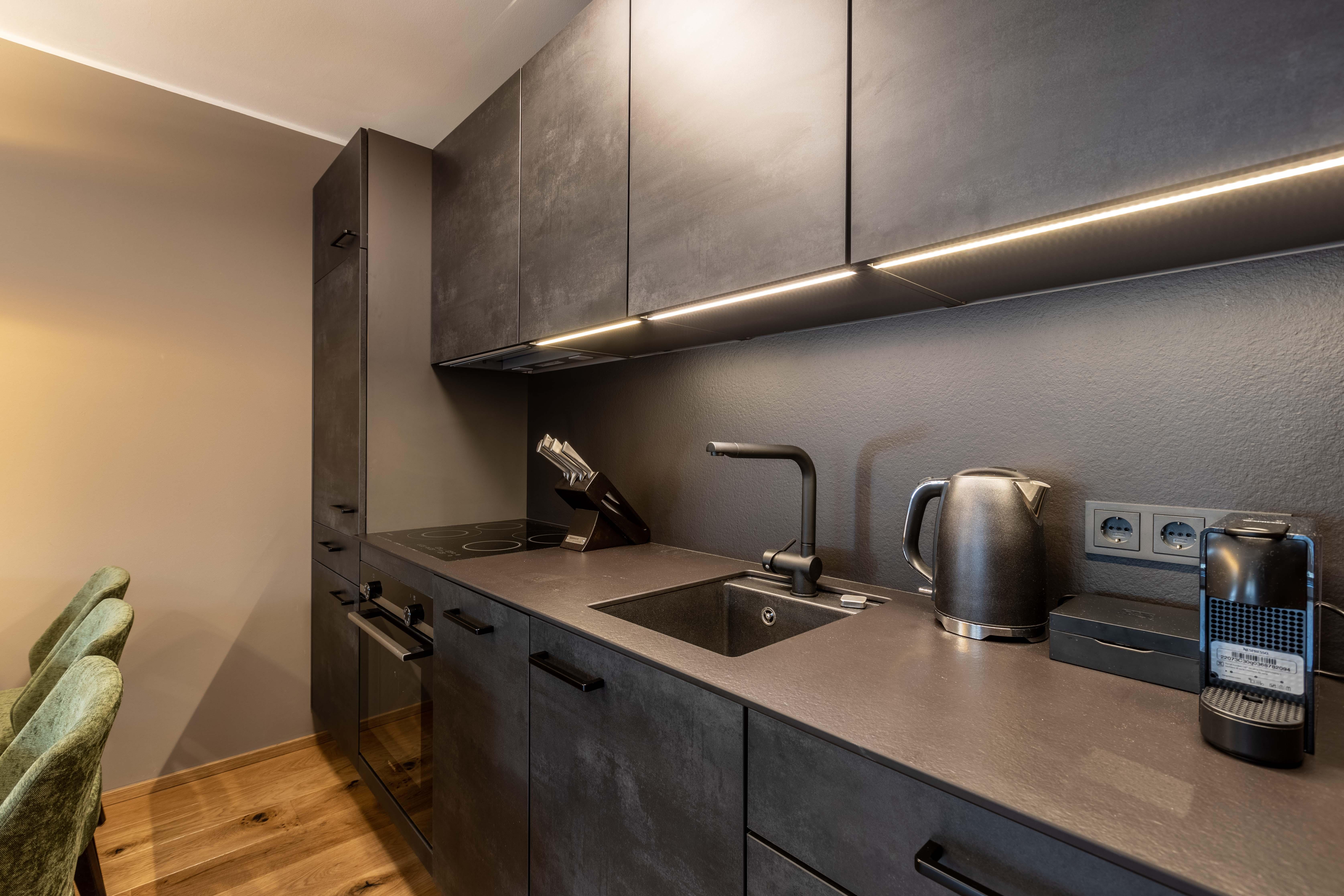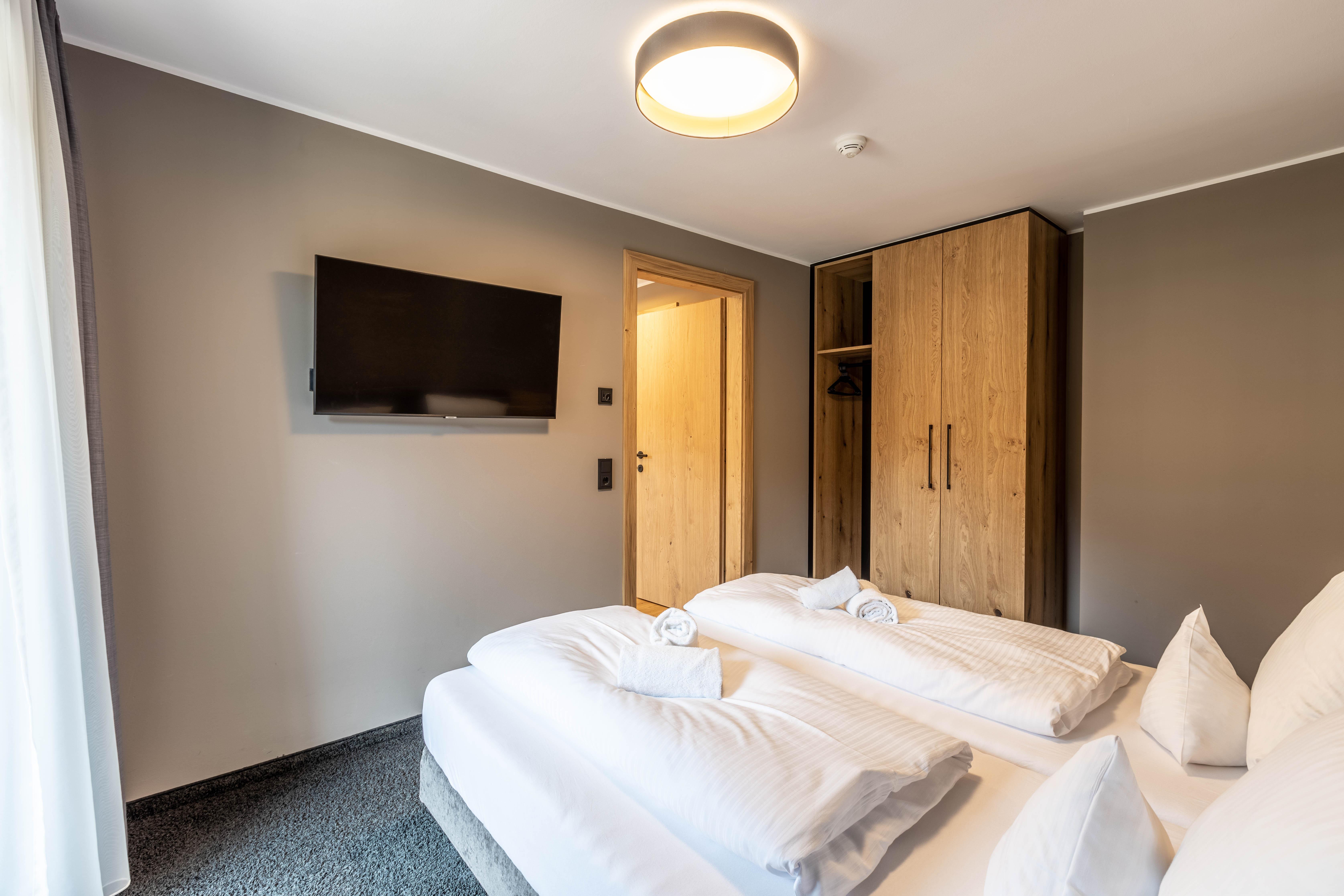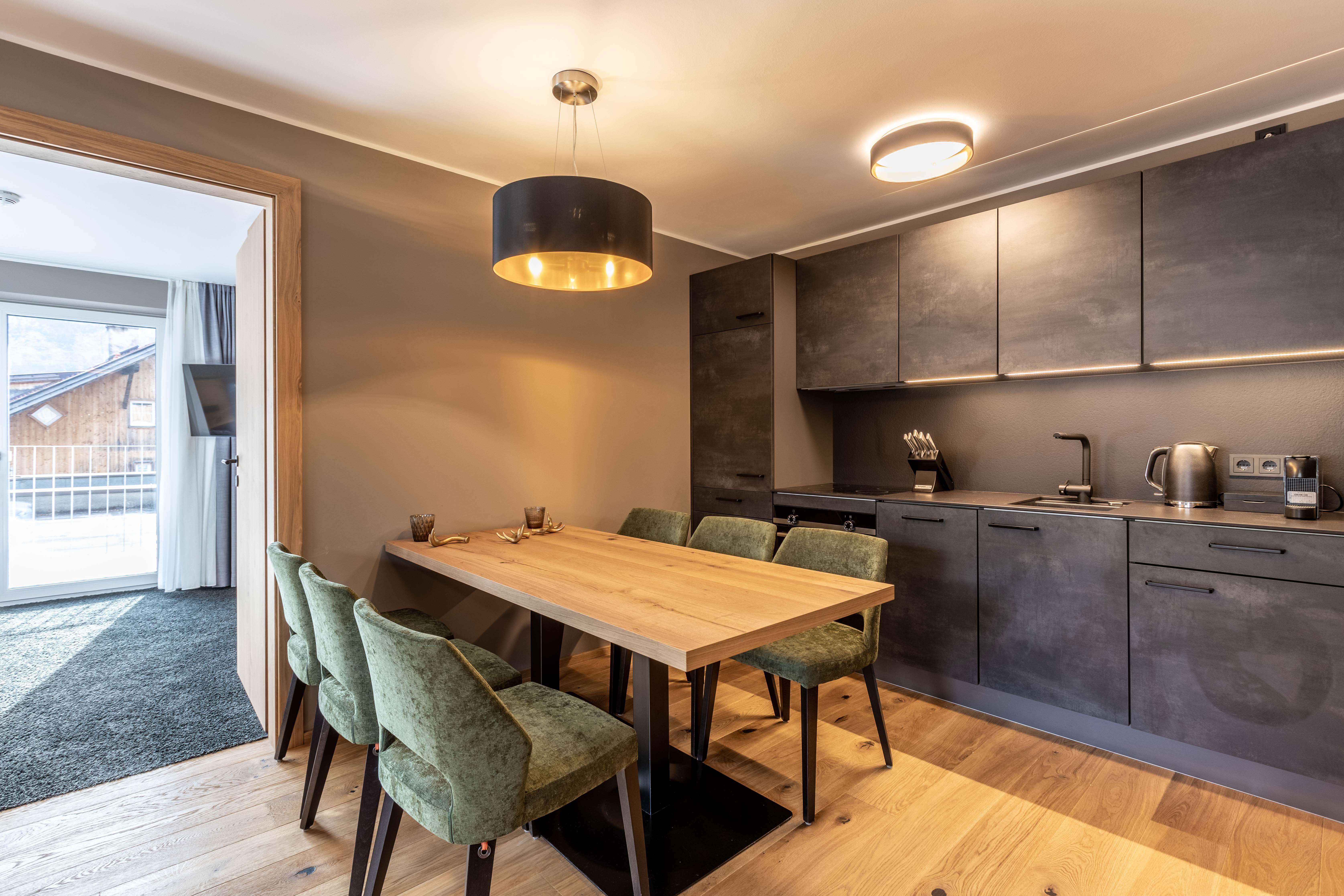 Das Apartment bietet Platz für 6 Personen und bietet Wohnküche, 2 Schlafzimmer (Boxspringbetten - 1x Zugang Balkon/ 1x Terrasse+eigenes Bad), 2 Badezimmer, separates WC + Balkon. Der Eingangsbereich, mit Garderobe, führt direkt in die Wohnküche, welche mit Küchengeräten, Kühl-Gefrierkombi sowie Nespresso Kaffeemaschine ausgestattet ist. Der Esstisch bietet Platz, um gemeinsam ein selbstgekochtes Mahl zu genießen. Im anschließenden Wohnbereich befinden sich TV, Kleiderschrank und Ausziehsofa.