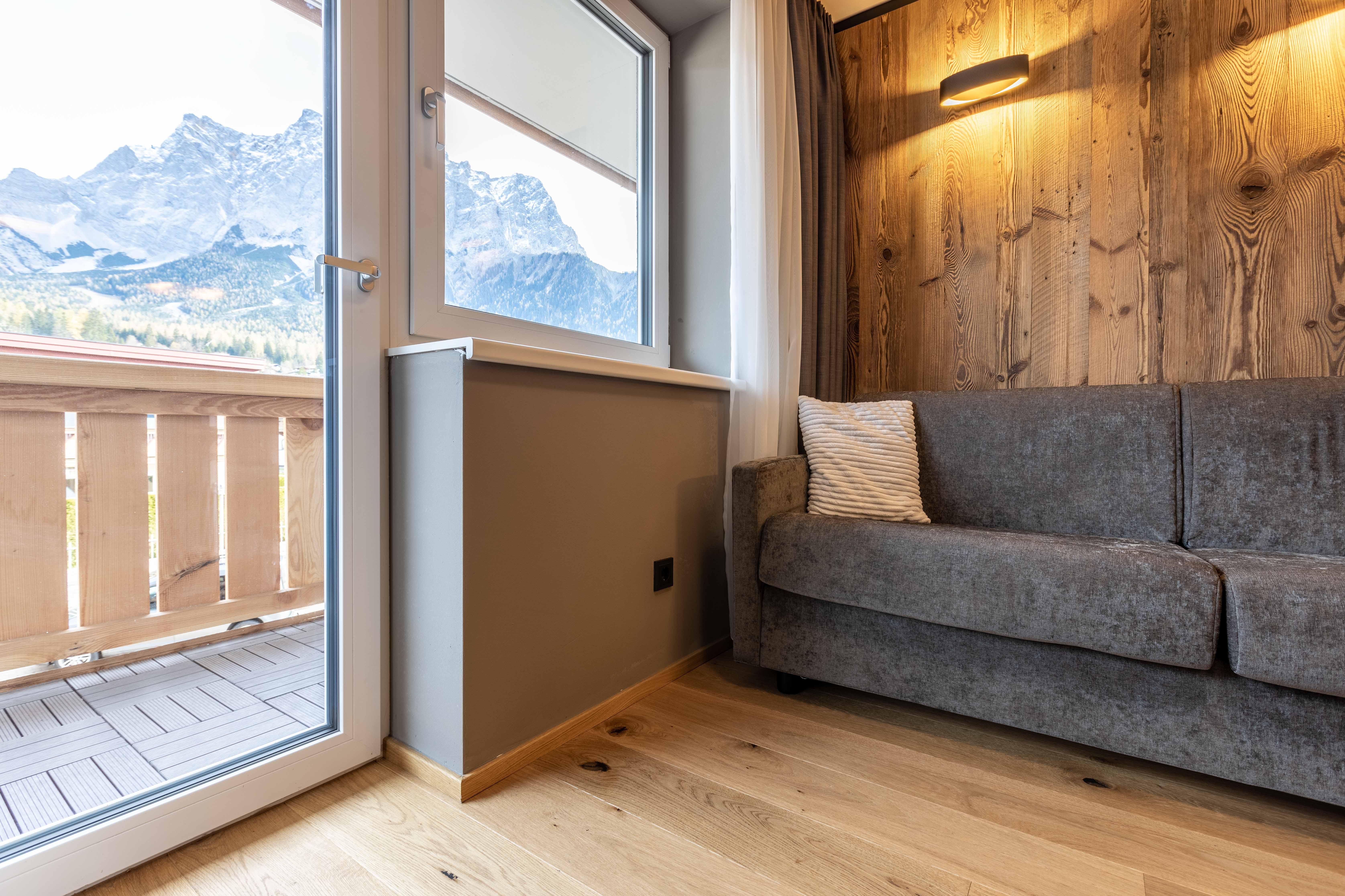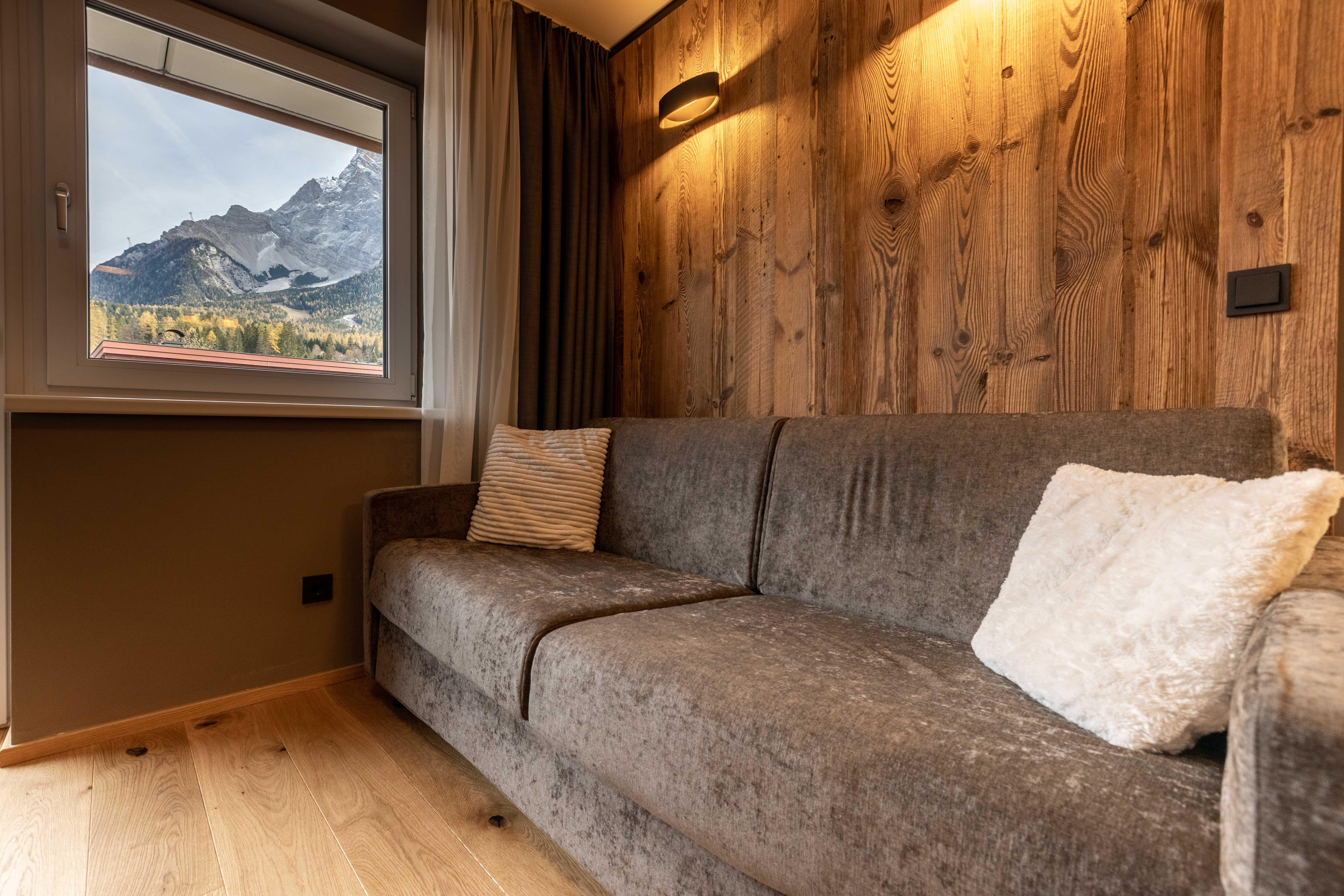 Zugspitz Residences liegt im Herzen von Ehrwald, direkt neben dem Golfplatz und in unmittelbarer Nähe des weit bekannten Ehrwalder Schigebiets. Dieser einzigartige, familienfreundliche Topspot garantiert ganzjährig Sport- und Freizeiterlebnisse der besonderen Art. Die bequem vom Haus aus zu erreichende Zugspitz Arena mit 56 Bergbahnen bietet auf 142 Pistenkilometern abwechslungsreiches Skivergnügen in allen Schwierigkeitsgraden! Des Weiteren sind eine problemlose Anbindung (Flughafen Innsbruck, 75 km - Flughafen München (DE), 147 km - Flughafen Salzburg, 196 km - Flughafen Zürich (CH), 200 km) und diverse Ausflugsziele (Bayrische Königsschlösser, Seefeld, Ötzi Dorf, Swarovski Kristallwelten, Innsbruck uvm.) gegeben. Parkmöglichkeiten sind rund um die Residenz vorhanden. Für Körper und Seele besteht im Erdgeschoß ein exklusiver Wellnessbereich mit Indoor-Infinity-Pool, finnischer Sauna, Bio-Sauna sowie Infrarotkabine, Regenerationsdusche und einem Ruheraum für totale Entspannung. Der Außenbereich animiert im Sommer zum Relaxen in der Sonne und im Winter ist dort Erfrischung nach einem ausgiebigen Saunagang möglich.