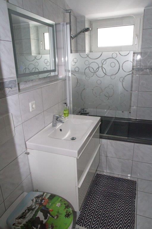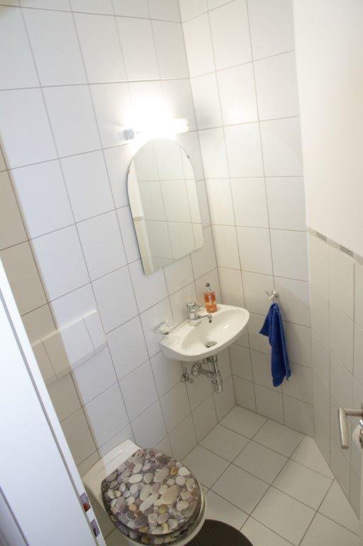 Eine komplett eingerichtete Küche ermöglicht eine problemlose Selbstversorgung. Im Bad befindet sich eine Badewanne mit integrierter Dusche sowie ein WC. Ein zweites WC ist ebenfalls vorhanden.