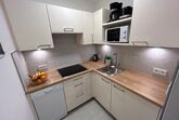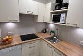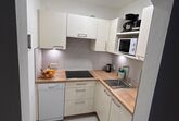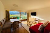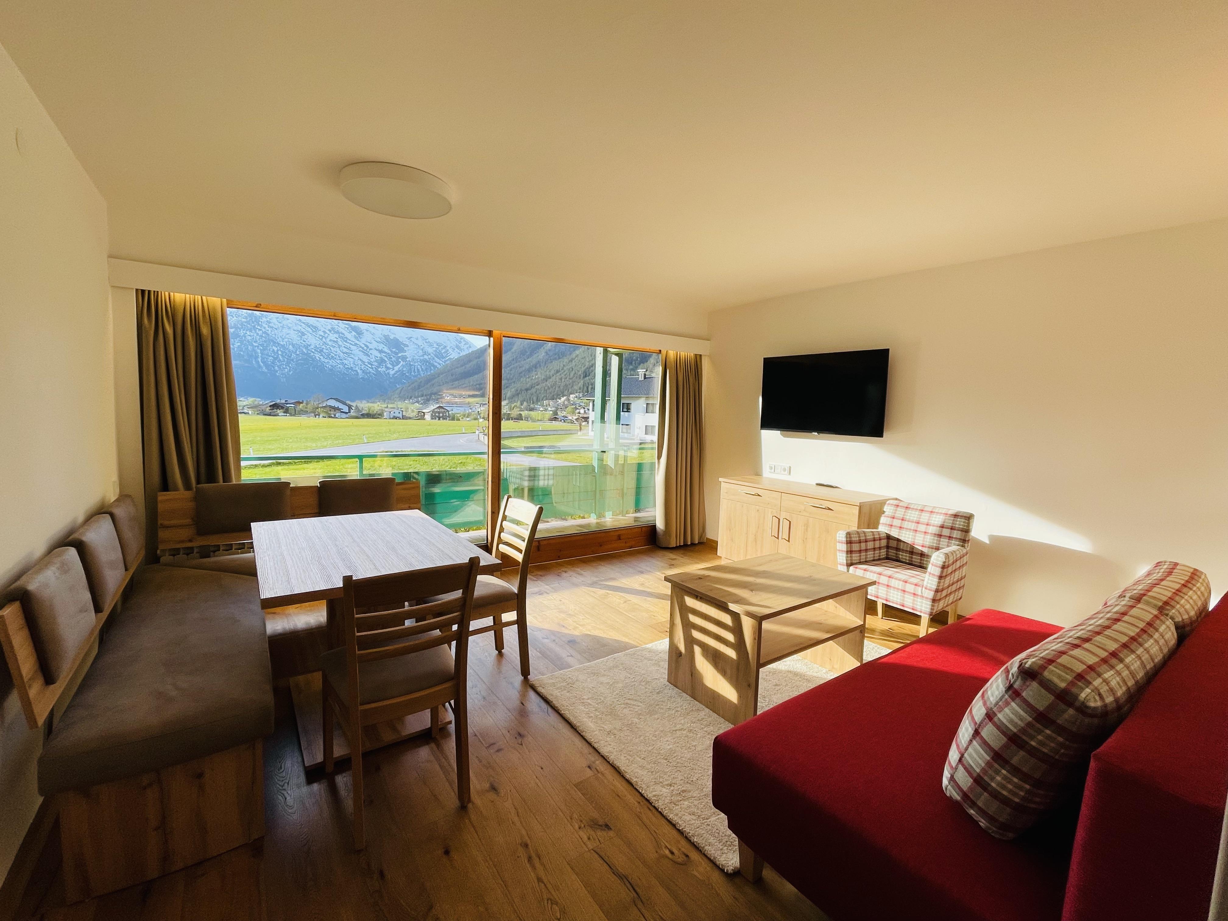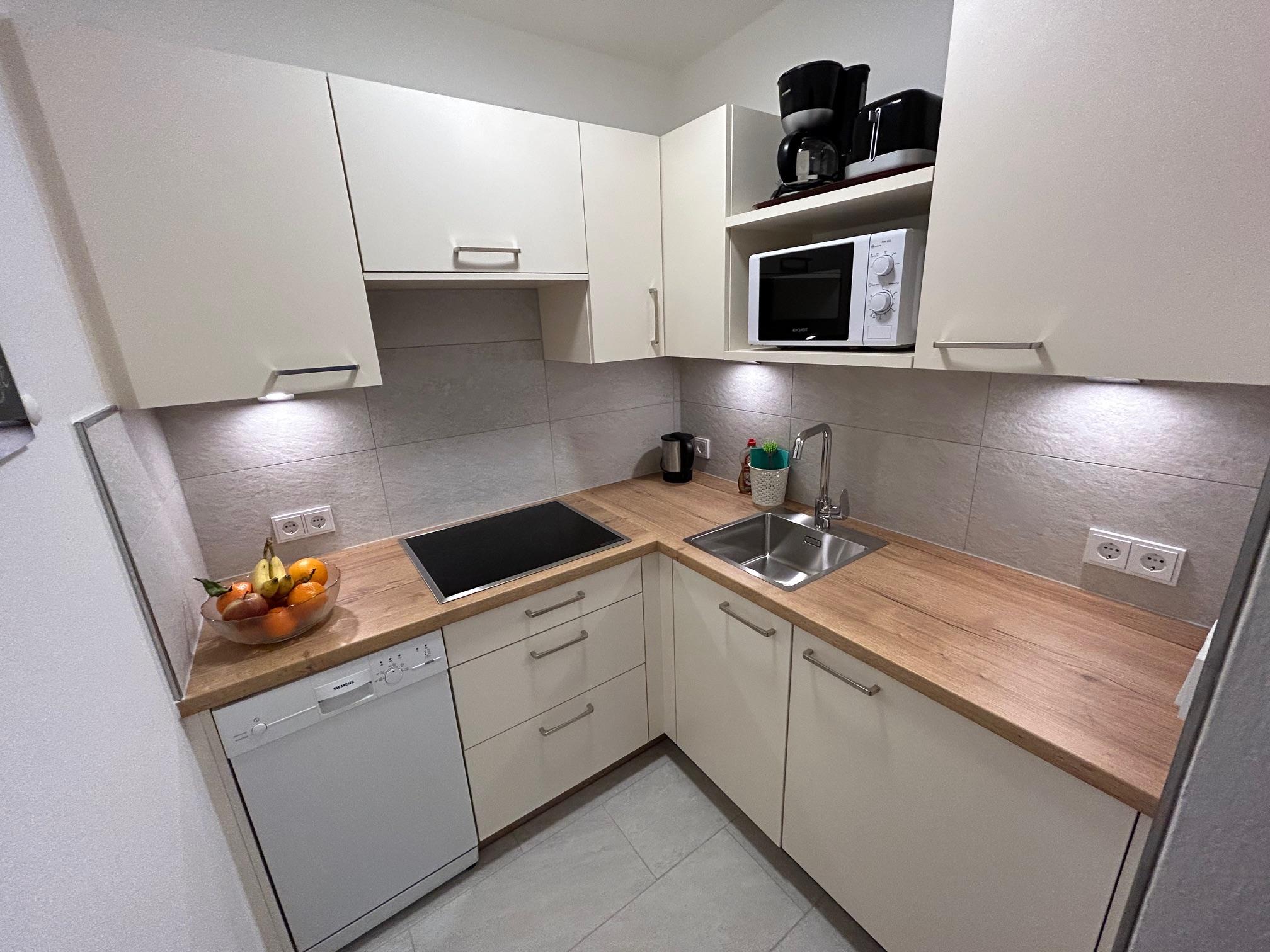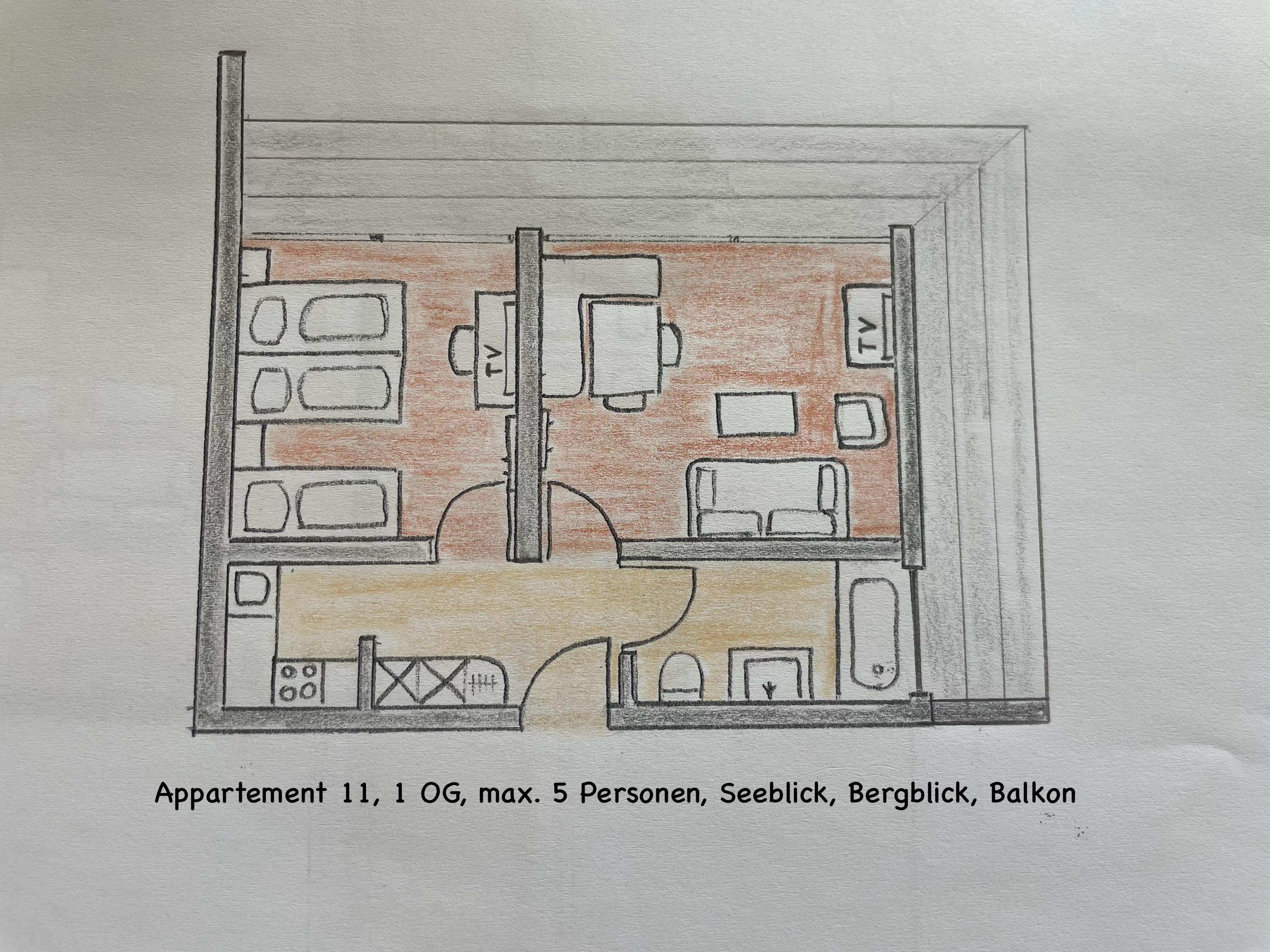 Wohnschlafzimmer mit zwei Couches und Tischchen, gepolsterter Eßecke und Bauernkomode. Dreibettzimmer mit 2 Fauteuils und Tischchen, Wandvertäfelung. Große Schiebetüre zum Liegebalkon bzw. zur Gartenterasse. Vorraum mit Schrank. Frisch renoviertes Badezimmer mit Dusche, Waschbecken, WC und Heizstrahler. Separate Küche mit 3-Platten-Herd, Kühlschrank, Geschirrspülmaschine, Mikrowellenherd, Dunstabzug, kompl. Geschirr, Kaffeemaschine. Farb-TV, Safe, Internetanschluss. Haustiere sind nicht erlaubt!