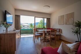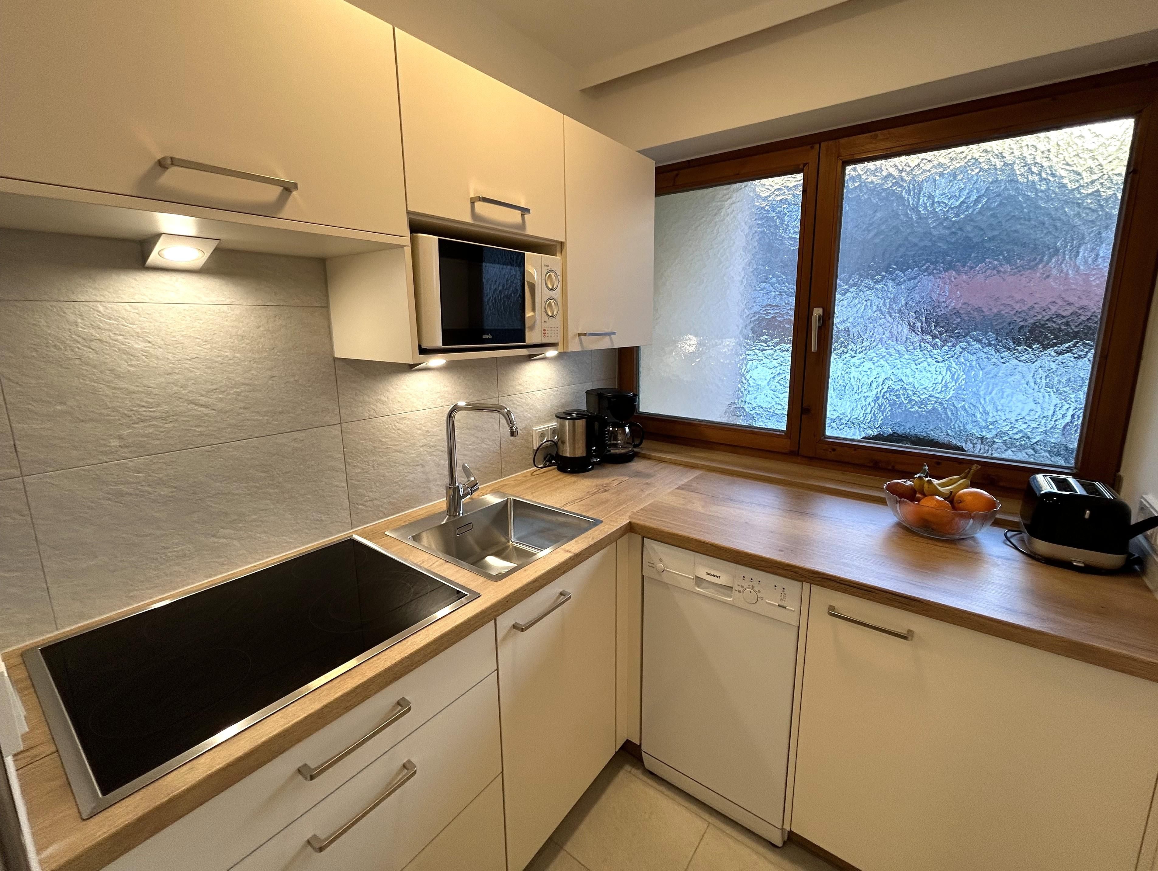 Alle Apartments verfügen über raumhohe Panorama Fenster, einen großzügigen Balkon oder eine Terrasse mit herrlichem Blick auf die umliegende Bergwelt. Moderne Badezimmer sowie hochwertig ausgestattete Küchen mit Geschirrspüler, Kühlschrank, Cerankochfeld, Mikrowelle und Kaffeemaschine bieten höchsten Komfort für einen entspannten Aufenthalt.