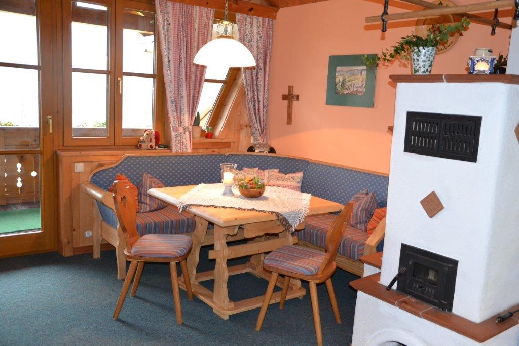Das liebevoll eingerichtete Appartement mit seperaten Eingang befindet sich im 1. Stock unseres Einfamilienhauses, besticht durch das großzügige Raumangebot mit 100 m² und bietet Platz für bis zu 5 Personen. Ein heller Wohnbereich mit komplett ausgestatteter Küche, Esstisch, gemütlichem Wohnraum mit Kachelofen und komfortabler Wohnlandschaft mit großen Fenstern sowie eigener Sonnen-Veranda Richtung Süden ermöglichen einen herrlichen Ausblick. Zwei Schlafzimmer mit Ostbalkon und wohltuender Morgensonne, Badezimmer mit Badewanne und Dusche , seperates WC , sowie Vorraum mit Garderobe stehen den Gästen zur Verfügung.  Eigener Parkplatz im Carport .