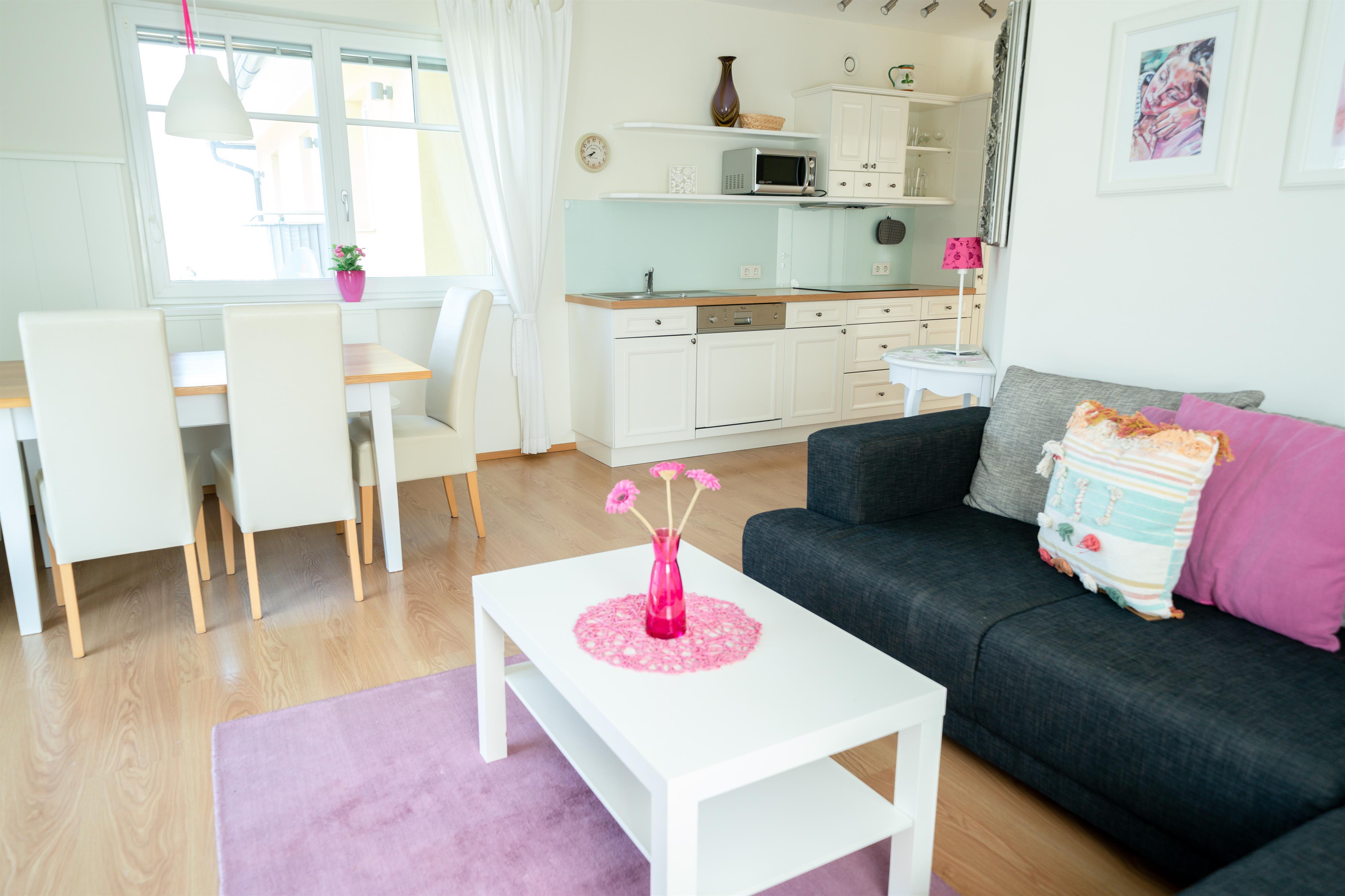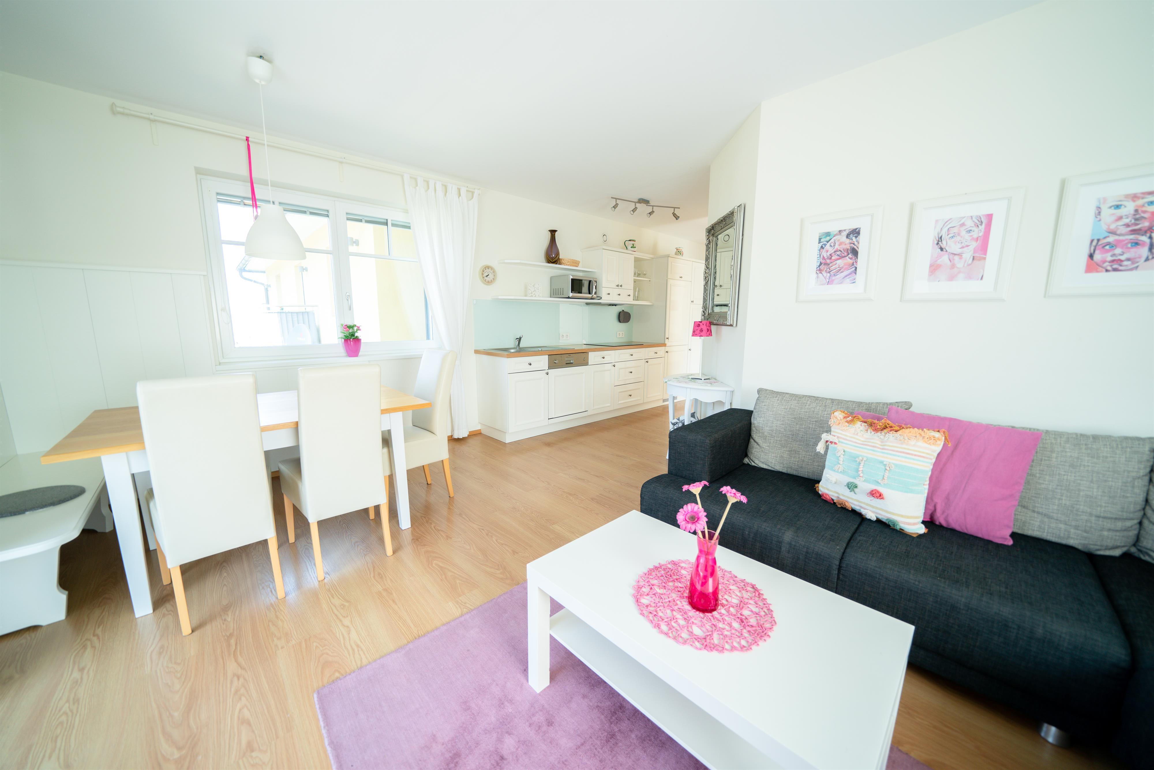 Die Wohnung mit großer Wohnküche, 2 Schlafzimmern und Badezimmer sowie seperaten WC ist 58 m2 groß. Perfekt für Familien oder Freunde die gemeinsamen einen schönen und unvergesslichen Sommer/Winterurlaub erleben möchten.