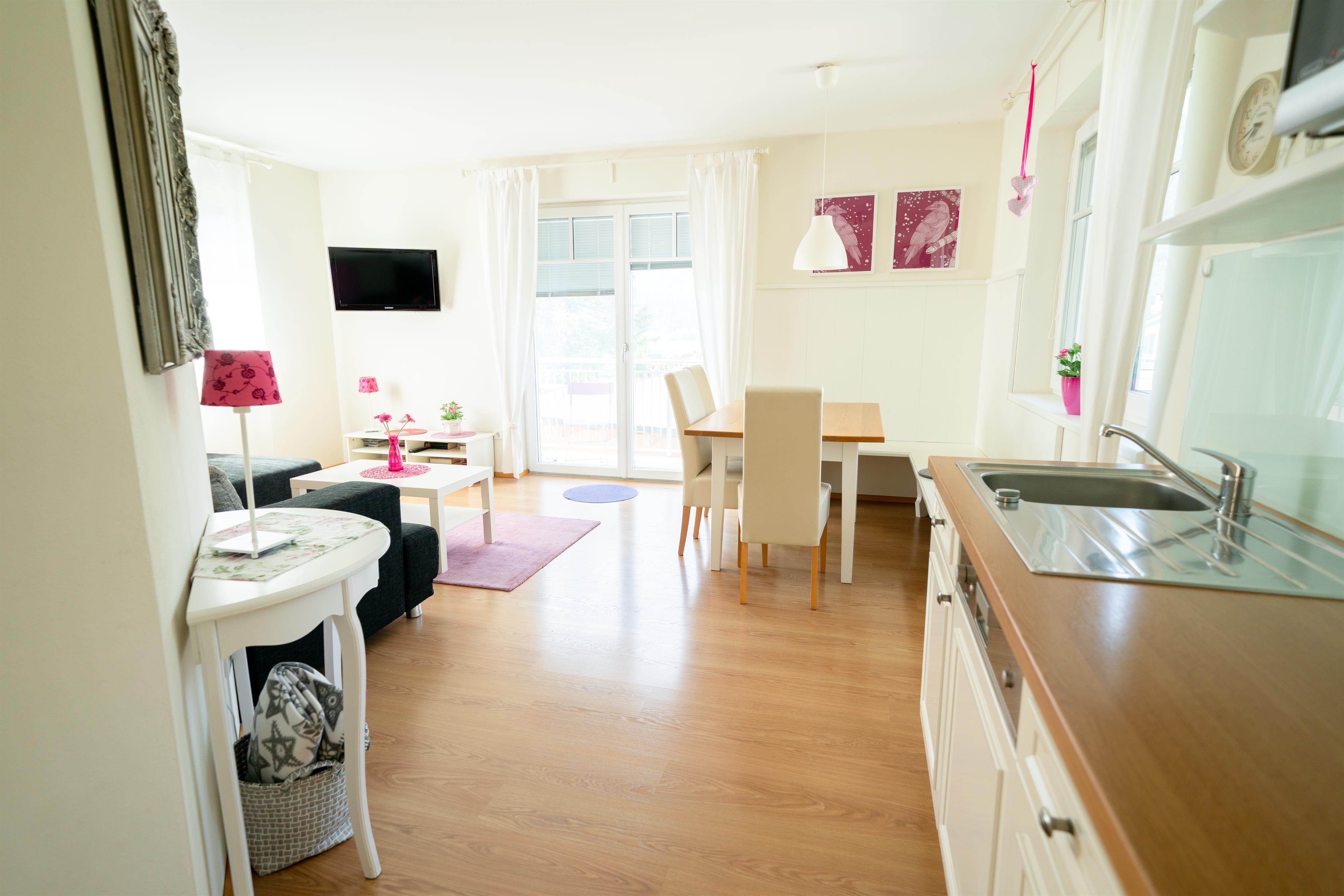 Villa-hubertus Apartment Enzian: Ein ruhiges, familienfreundliches Apartment mit Gemeinschaftsgarten und Südbalkon.