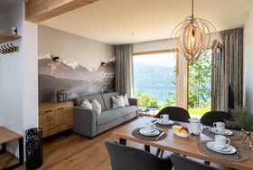 Die 40m² große Wohnung verfügt über ein Doppelzimmer, einem Badezimmer mit Dusche, einem separatem WC, eine voll ausgestattete komplett neue Küche mit Essplatz, Wohnbereich mit TV und einer überdachten Terrasse mit Sitzbereich und Blick auf den Millstätter See.