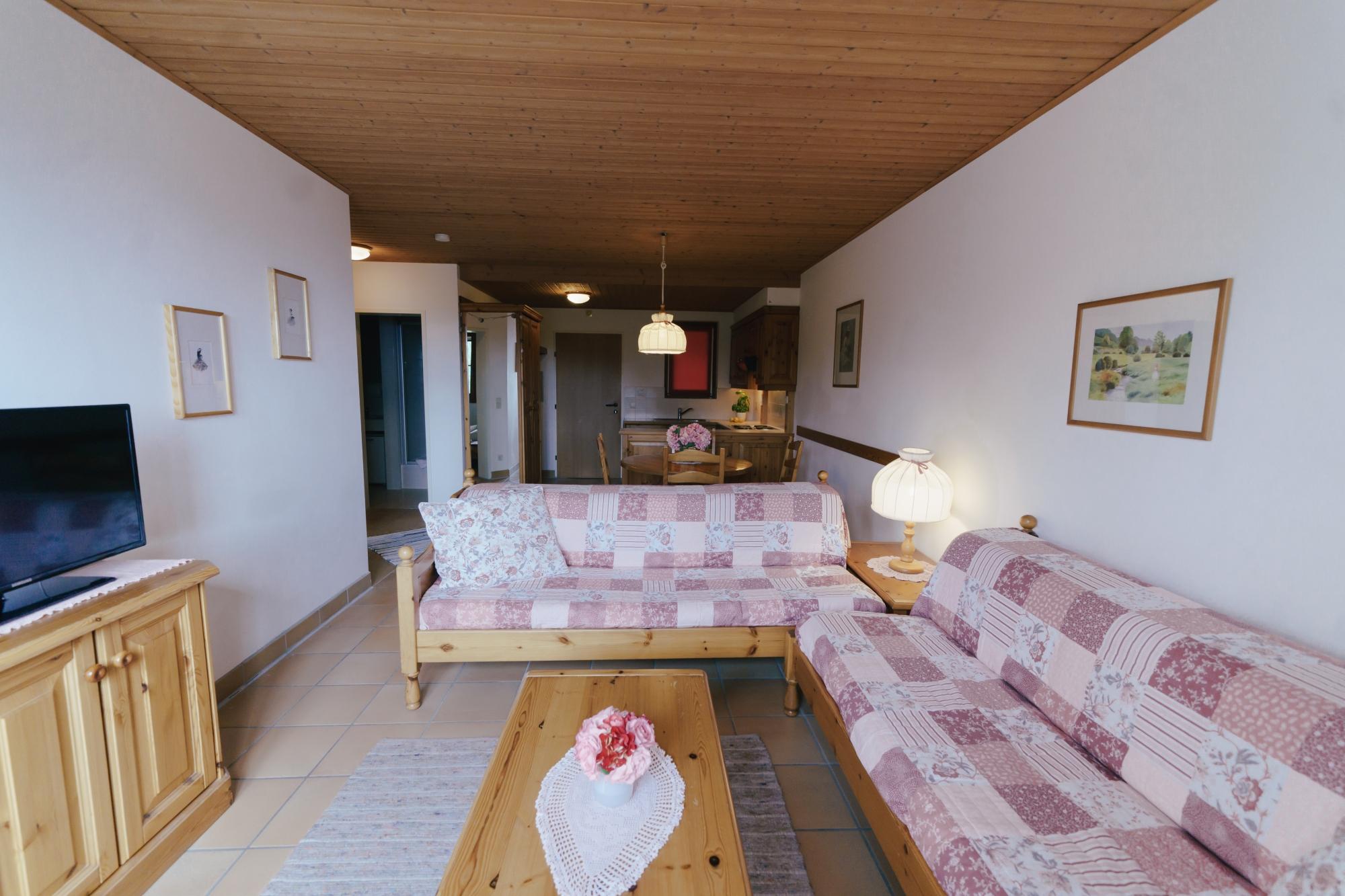 Es gibt Platz für bis zu 4 Personen und die Wohnung ist mit einem gemütlichen Wohnbereich mit zwei Sofabetten, einem separaten Schlafzimmer mit großem Doppelbett, einem Badezimmer mit großzügigem Waschtisch, Dusche, WC und einem ca. 6m2 großen Balkon ausgestattet. Der gemütliche Wohnraum mit Flatscreen-TV lädt zum geselligen Beisammensein ebenso wie zu einem entspannten Fernsehabend ein. Die integrierte Küche mit Herd, Kühlschrank, Gefrierfach, Geschirrspüler, Wasserkocher und Kaffeemaschine ist bestens ausgestattet. Direkt bei der Unterkunft steht ein kostenloser Tiefgaragenplatz zur Verfügung.