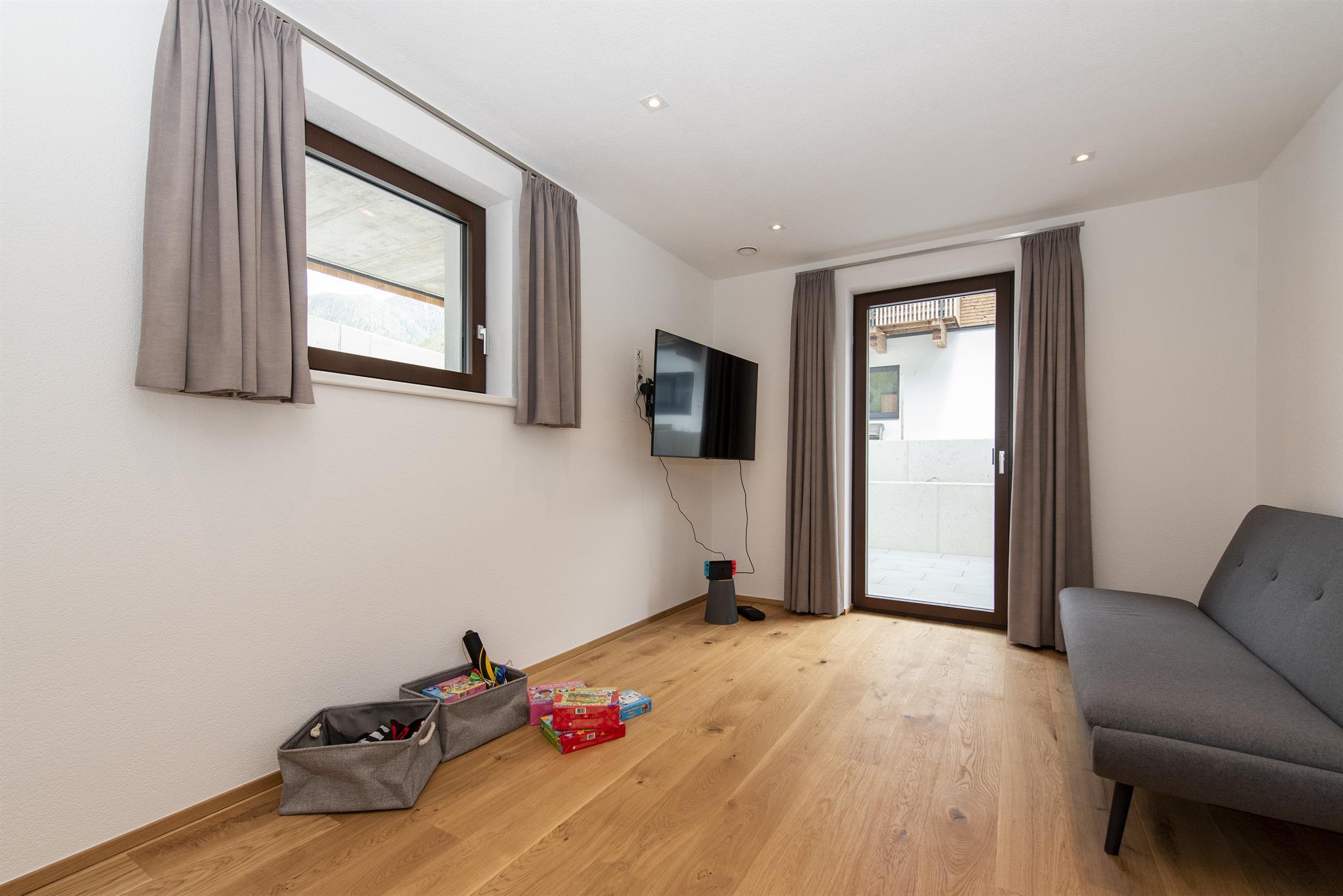 Das Fitnesstudio ist mit einer Rudermaschine, einem Crosstrainer und einem modernen Gewichtstrainer ausgestattet. Damit sich auch die kleinsten (und großen!) in Ihrem eigenen Bereich austoben können, finden Sie im Untergeschoss ein Spielzimmer. Das Wohnzimmer, die Bibliothek, das Fitnessstudio und das Spielzimmer sind mit Smart-TV's ausgestattet. Eine Sammlung der gängigsten Gesellschaftsspiele sind auch für Sie bereitgestellt.