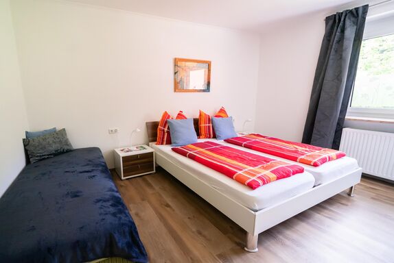 Unser 35 m² großes Appartement bietet Platz für bis zu drei Personen und verfügt über ein gemütliches Doppelzimmer sowie ein Zustellbett. Im privaten Garten steht dir einen Gartengrill und Gartenmöbeln zur Verfügung. Die Wohnung verfügt über eine moderne Wohnküche mit Backofen, Elektroherd und Kaffee-Maschine. Das Badezimmer ist mit einer Dusche und einem WC ausgestattet. Unser Appartement ist der perfekte Ort, um deinen Urlaub zu genießen und sich wie zu Hause zu fühlen.