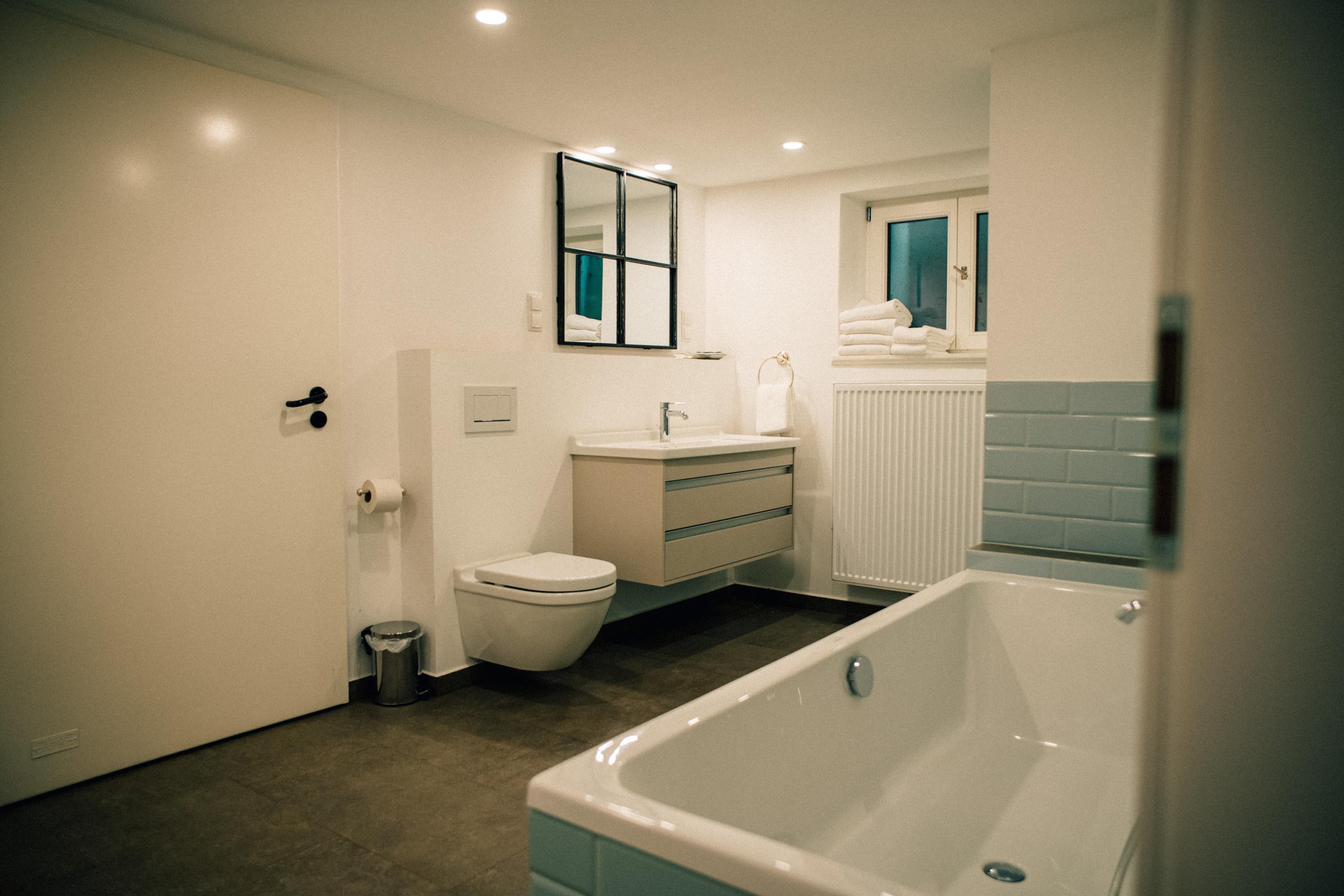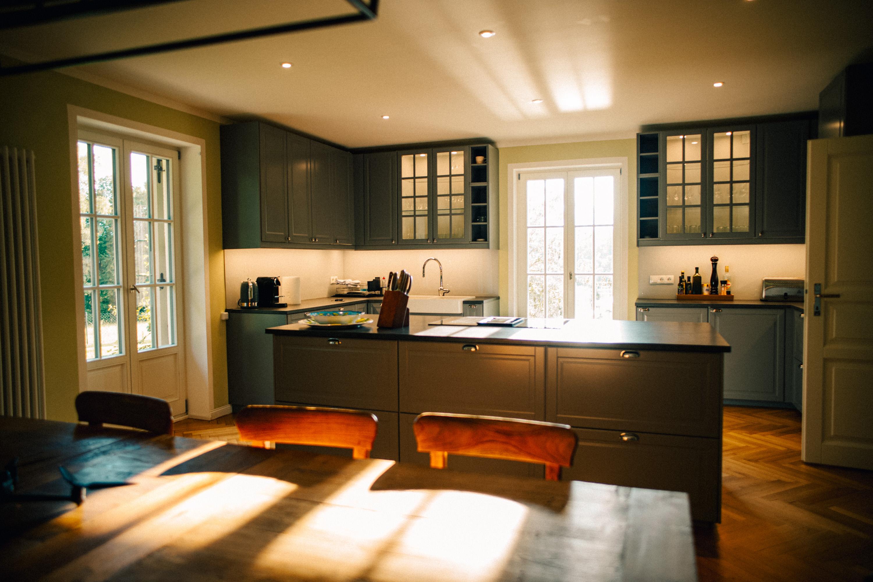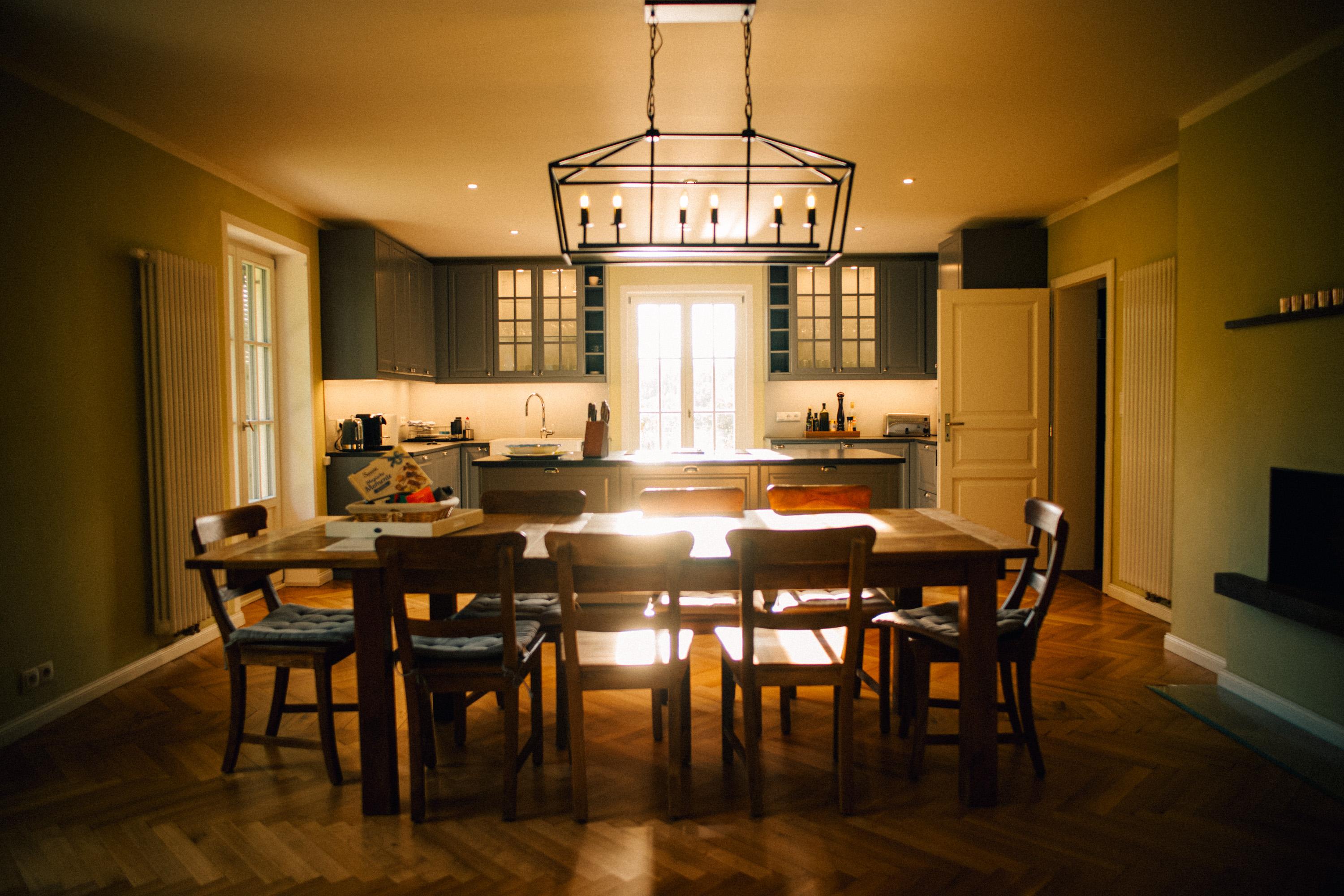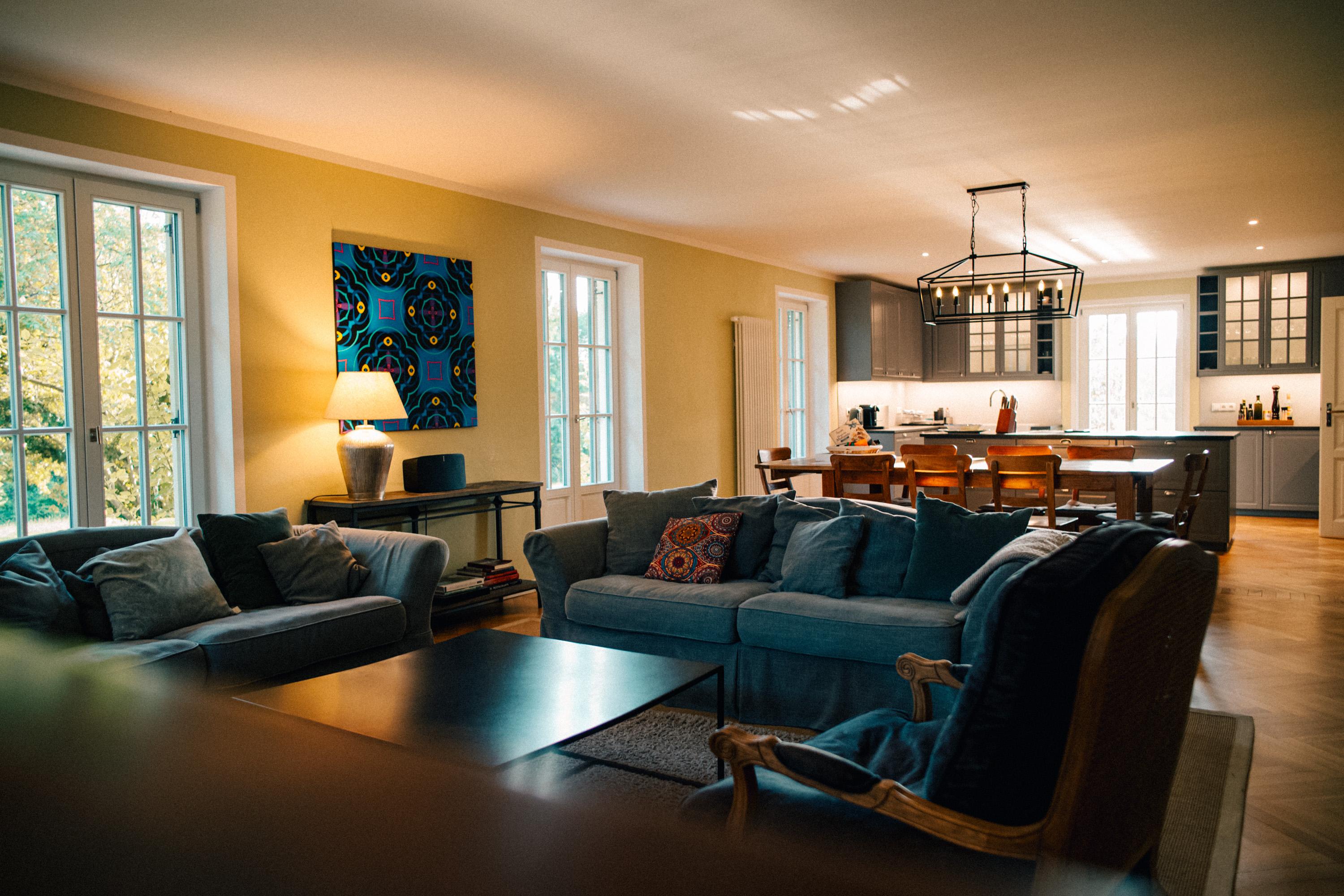 Das hochwertig ausgestattete Haupthaus erstreckt sich über 4 Etagen. Sowohl das Wohnzimmer, wie auch die Küche ist mit Top-Technik ausgestattet. Die Küche verfügt über zwei Öfen, einen Induktionsherd, eine vollautomatische Kaffeemaschine und eine Spülmaschine. Im ersten und zweiten Stock befinden sich 5 Schlafzimmer sowie 2 Bäder. Im Souterrain sind 2 weitere Schlafzimmer, ein Bad und ein zweites Wohnzimmer. Auf der Terrasse lässt sich bei einem gemütlichen Grillabend, der Tag ausklingen.