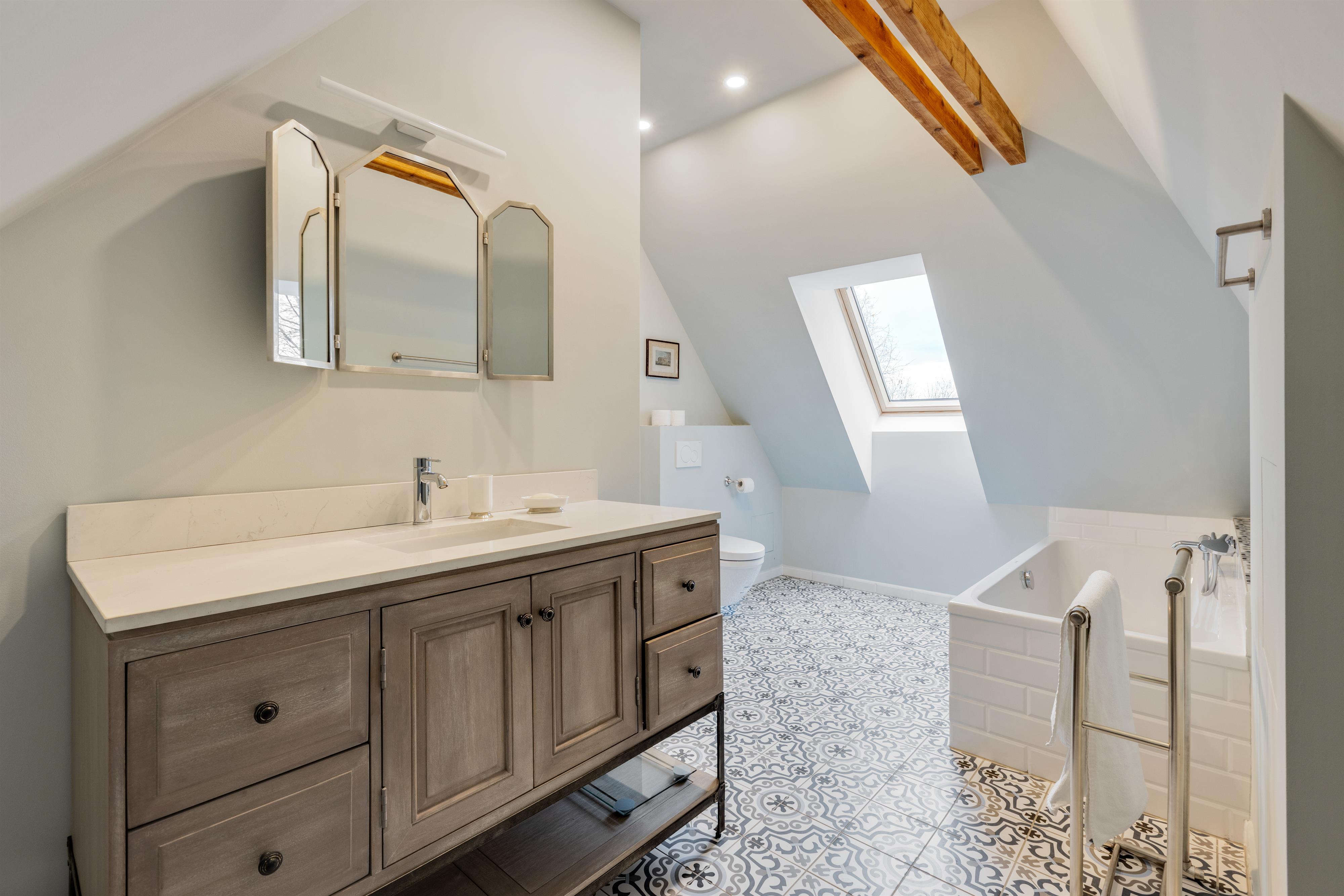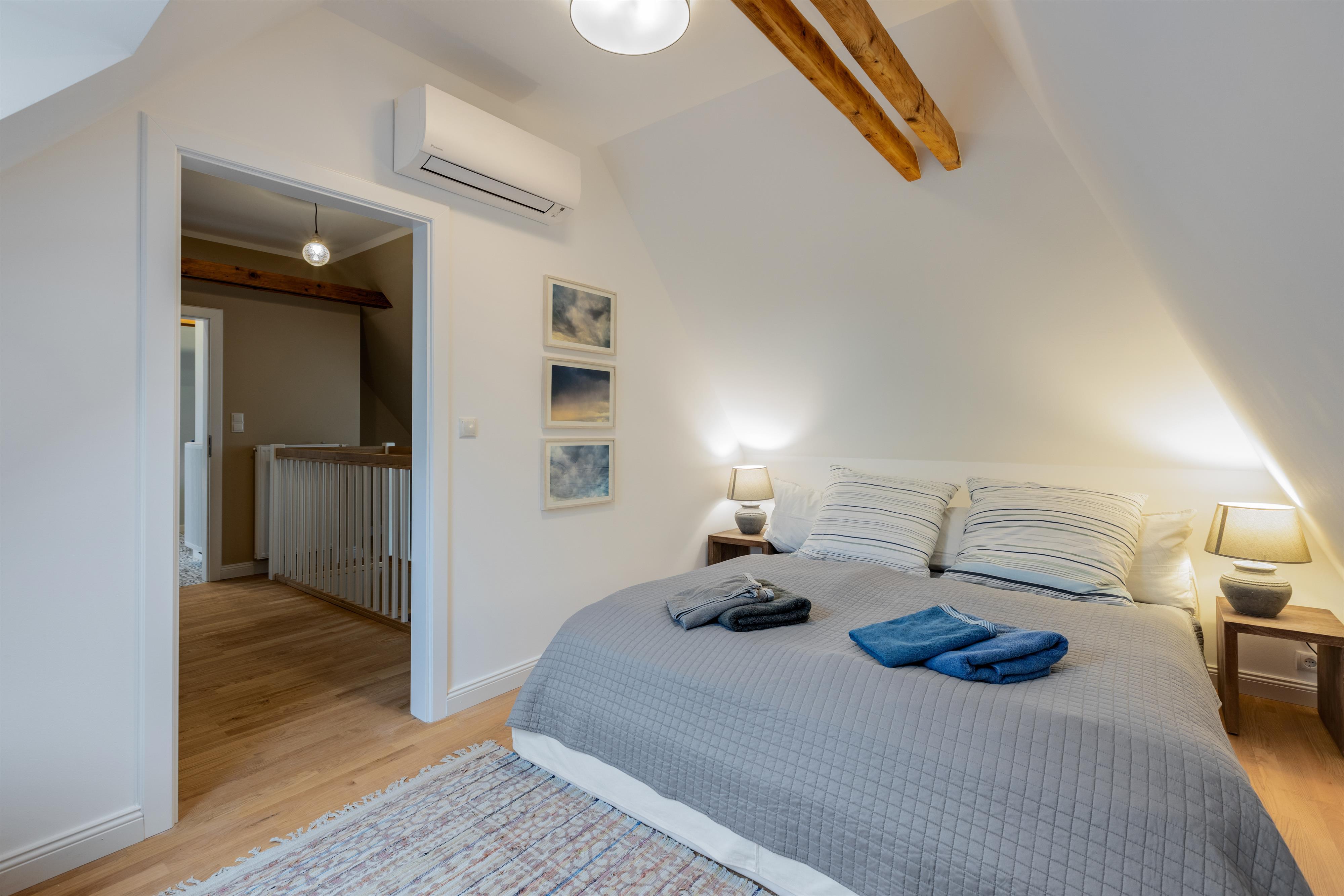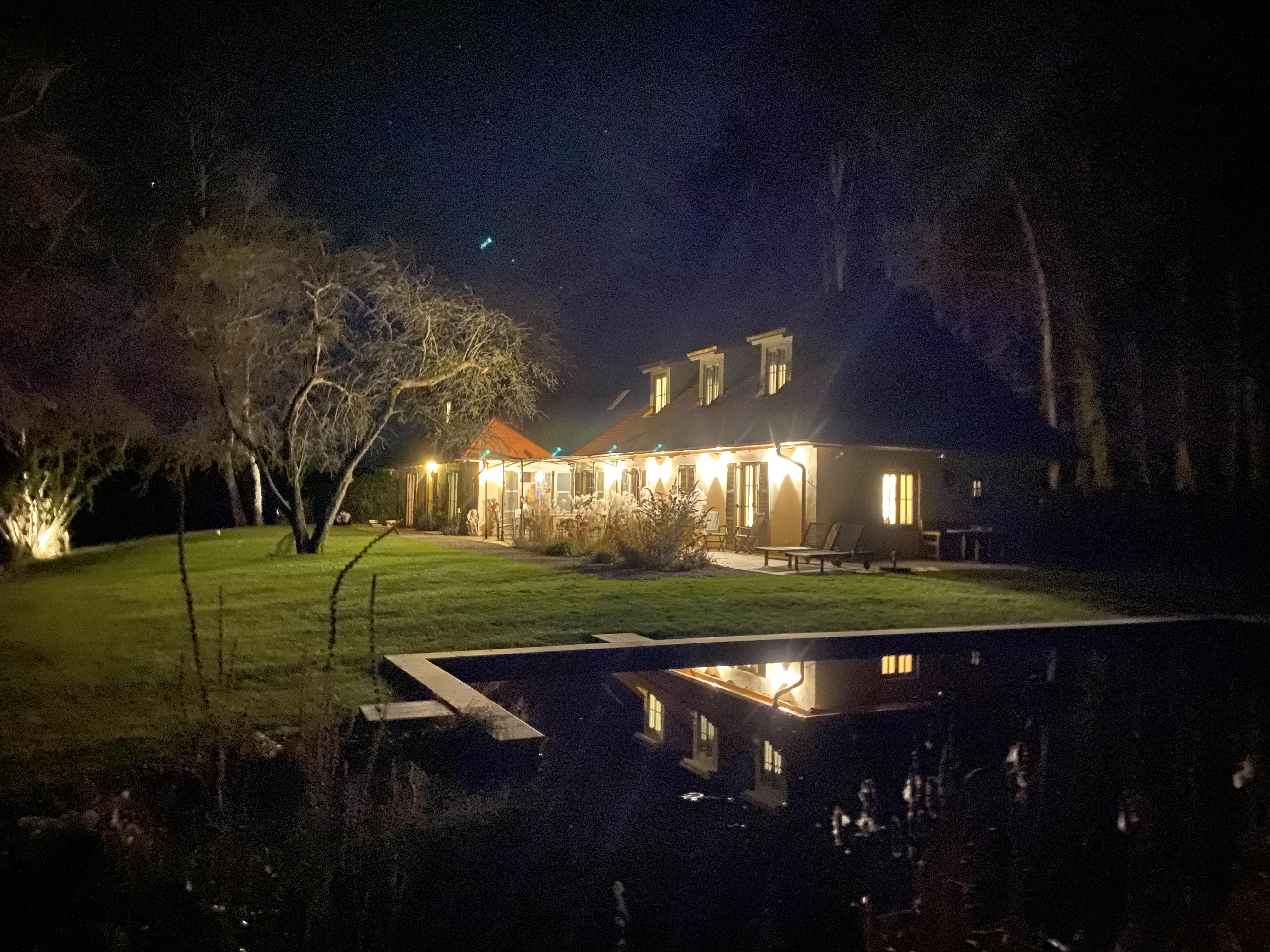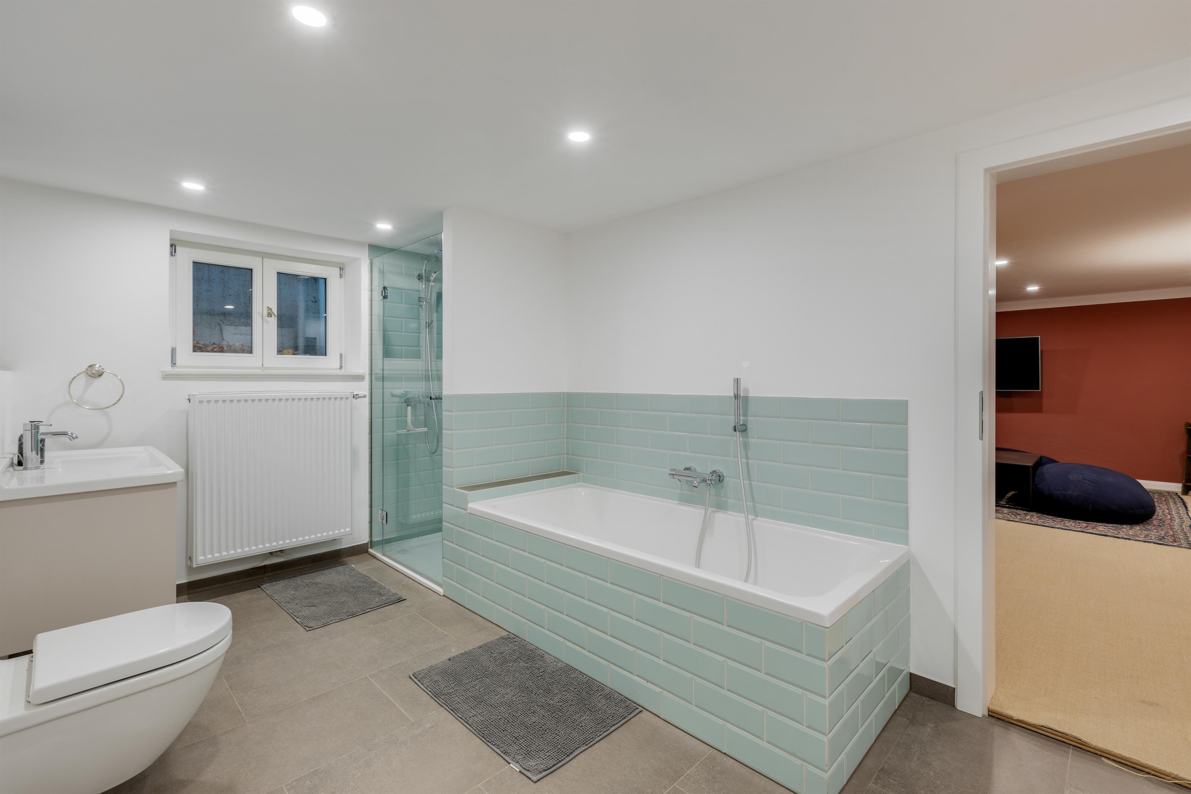 Das hochwertig ausgestattete Haupthaus erstreckt sich über 4 Etagen. Sowohl das Wohnzimmer, wie auch die Küche ist mit Top-Technik ausgestattet. Die Küche verfügt über zwei Öfen, einen Induktionsherd, eine vollautomatische Kaffeemaschine und eine Spülmaschine. Im ersten und zweiten Stock befinden sich 5 Schlafzimmer sowie 2 Bäder. Im Souterrain sind 2 weitere Schlafzimmer, ein Bad und ein zweites Wohnzimmer. Auf der Terrasse lässt sich bei einem gemütlichen Grillabend, der Tag ausklingen.