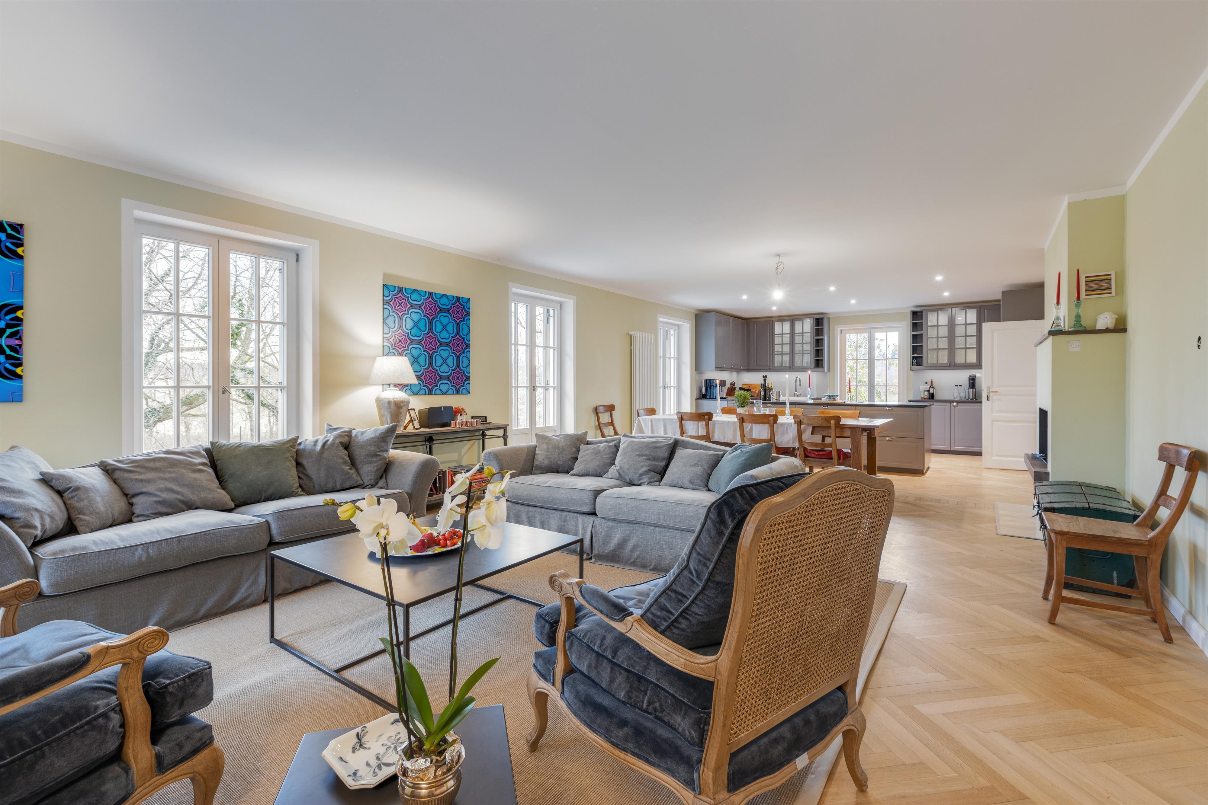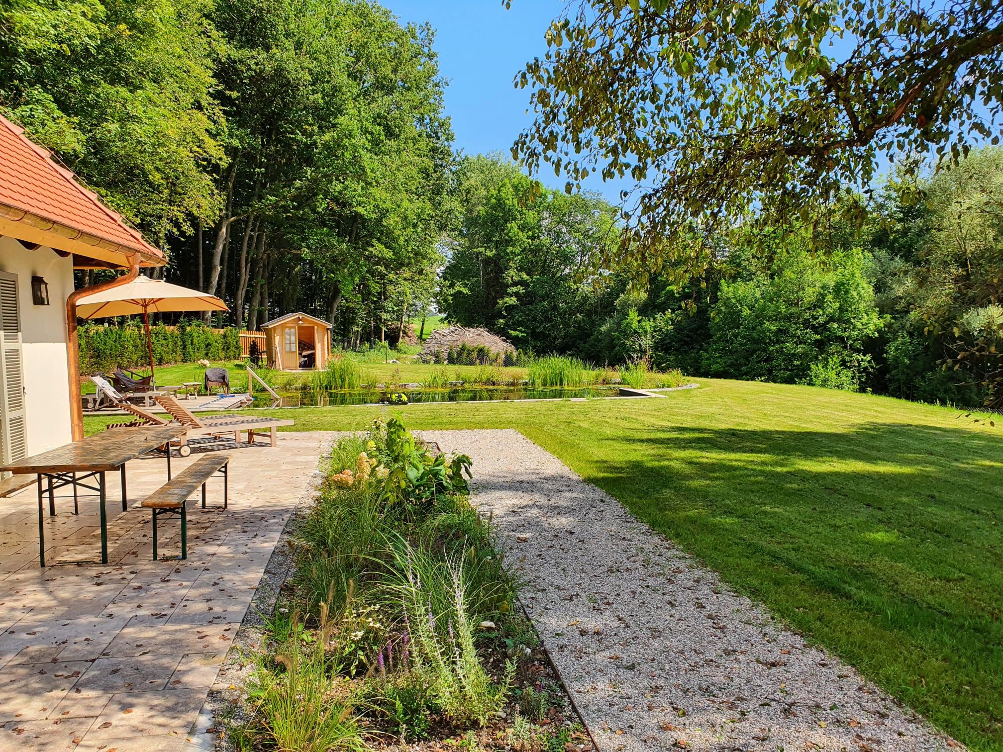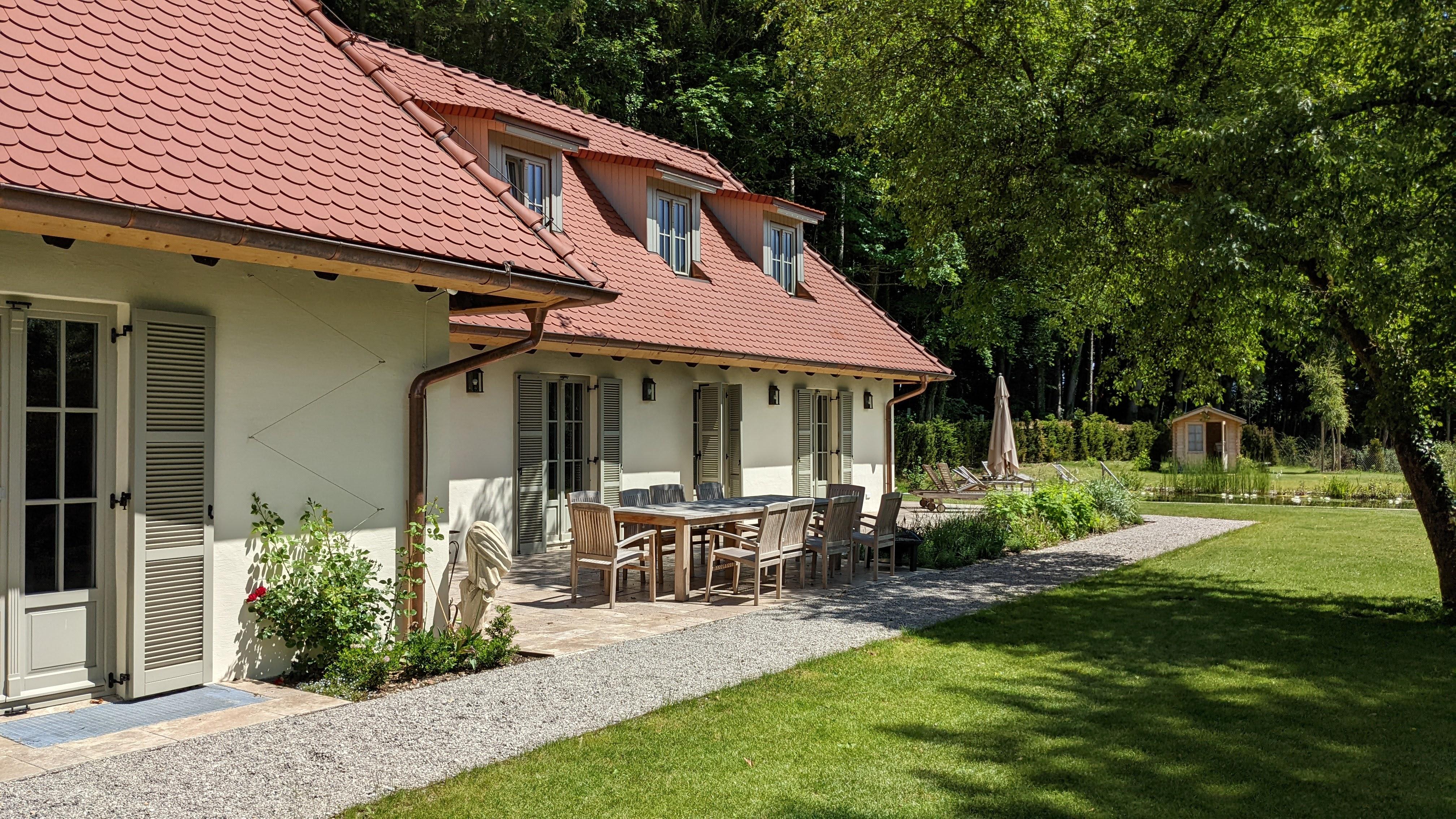 Die Villa Riedhof ist eine 2021 generalsanierte Villa und besteht aus einem großen, luxuriös eingerichteten Haupthaus mit sieben Schlafzimmern sowie einer stilvollen und voll ausgestatteten Einliegerwohnung. Beide Einheiten haben Zugang zur Terrasse mit getrennten Grill- und Sitzmöglichkeiten sowie einem beheizten Naturpool (Mai bis September) und weitläufigen Garten. Das Anwesen ist mitten in der Natur und trotzdem nah an vielen Attraktionen. Unter anderem befindet sich die Villa neben dem exklusiven Golfclub Riedhof München, welcher über einen 18-Loch-Platz verfügt und auch Indoor Golf anbietet. Der Starnberger See ist gleich um die Ecke, Badespaß ist also garantiert. In unmittelbarer Nähe liegen in Wolfratshausen, viele urige Biergärten und die Isar, auf der im Sommer Floßfahrten angeboten werden. Mit der S-Bahn erreicht man von Wolfratshausen aus schnell und komfortabel das Münchner Zentrum.