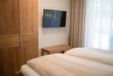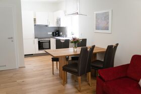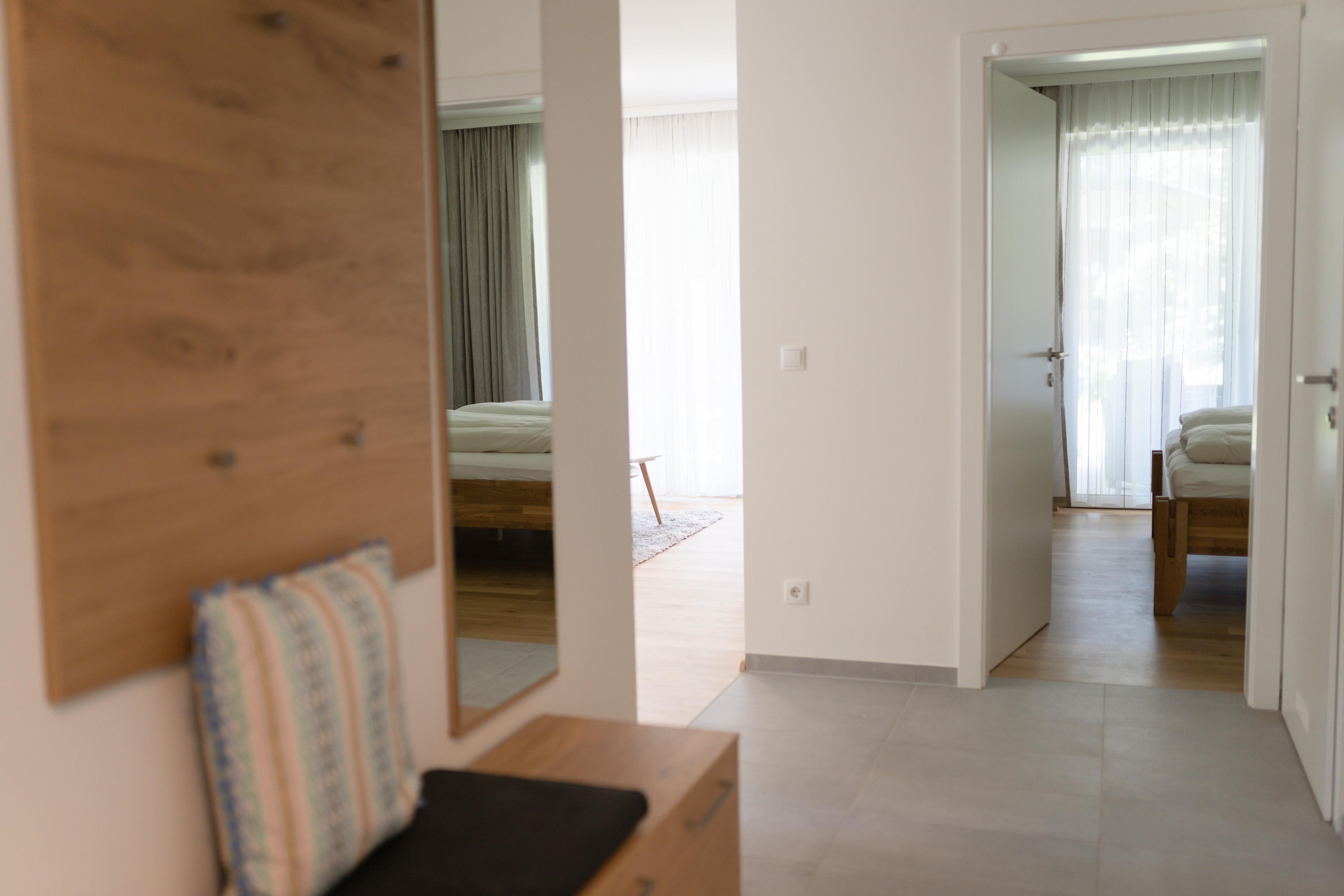 Das Apartment befindet sich im Erdgeschoss und hat eine eigene großzügige Gartenfläche dabei. Ausstattung: 1 Badezimmer mit Dusche, separates WC, 1 Schlafzimmer, 1 Wohnküche mit Küchenzeile, Essbereich, Terrasse, Vorraum, Abstellraum Schlafbereich: 1 Doppelbett, 1 Ausziehcouch im Wohnbereich Küchenbereich: Kaffeemaschine, Wasserkocher, Küchenutensilien, Spülmaschine, Küchenherd, Backofen, Kühlschrank, Reinigungsutensilien, Geschirrtücher Heizung und Klimatisierung: Zentralheizung Außenbereich: überdachte Terrasse, Grünfläche Unterhaltung: WLAN Internet, TV (Satellit) Bad: Haartrockner, Handtücher Wäscheständer Sonstiges: Rauchmelder, Staubsauger Parken: am gekennzeichneten Parkplatz direkt vor dem Haus kostenlos