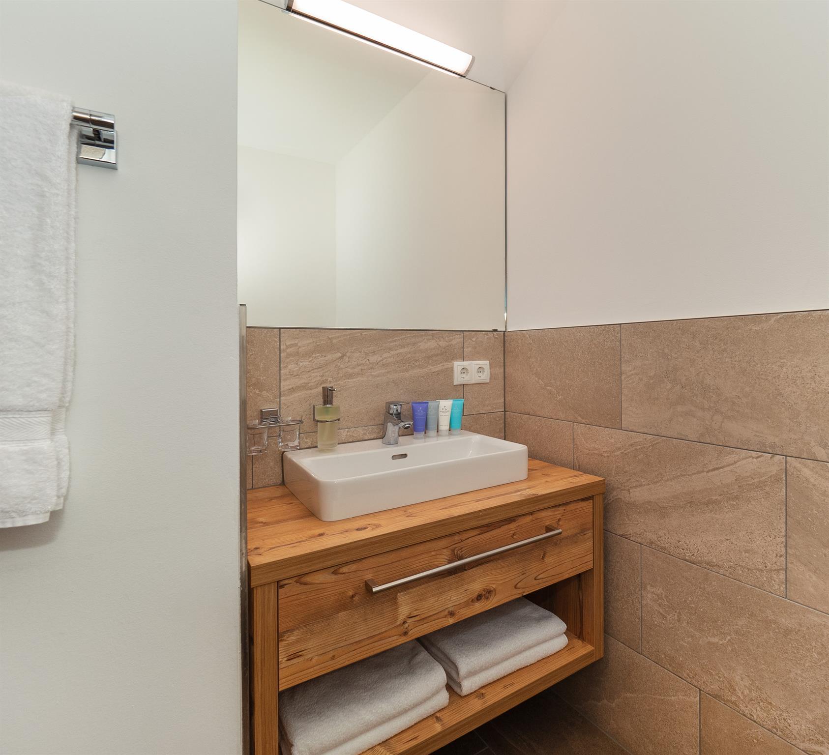 Die drei großzügigen, rustikalen Schlafzimmer im ersten Stock sind mit einem bequemen, teilbarem Boxspring-Doppelbett, einem geräumigen Kleiderschrank und einem Nachttischchen ausgestattet. Jedes unserer Schlafzimmer verfügt über ein eigenes modernes Badezimmer mit Waschbecken, Dusche oder Badewanne, WC, Haarföhn und einem Handtuchtrockner.