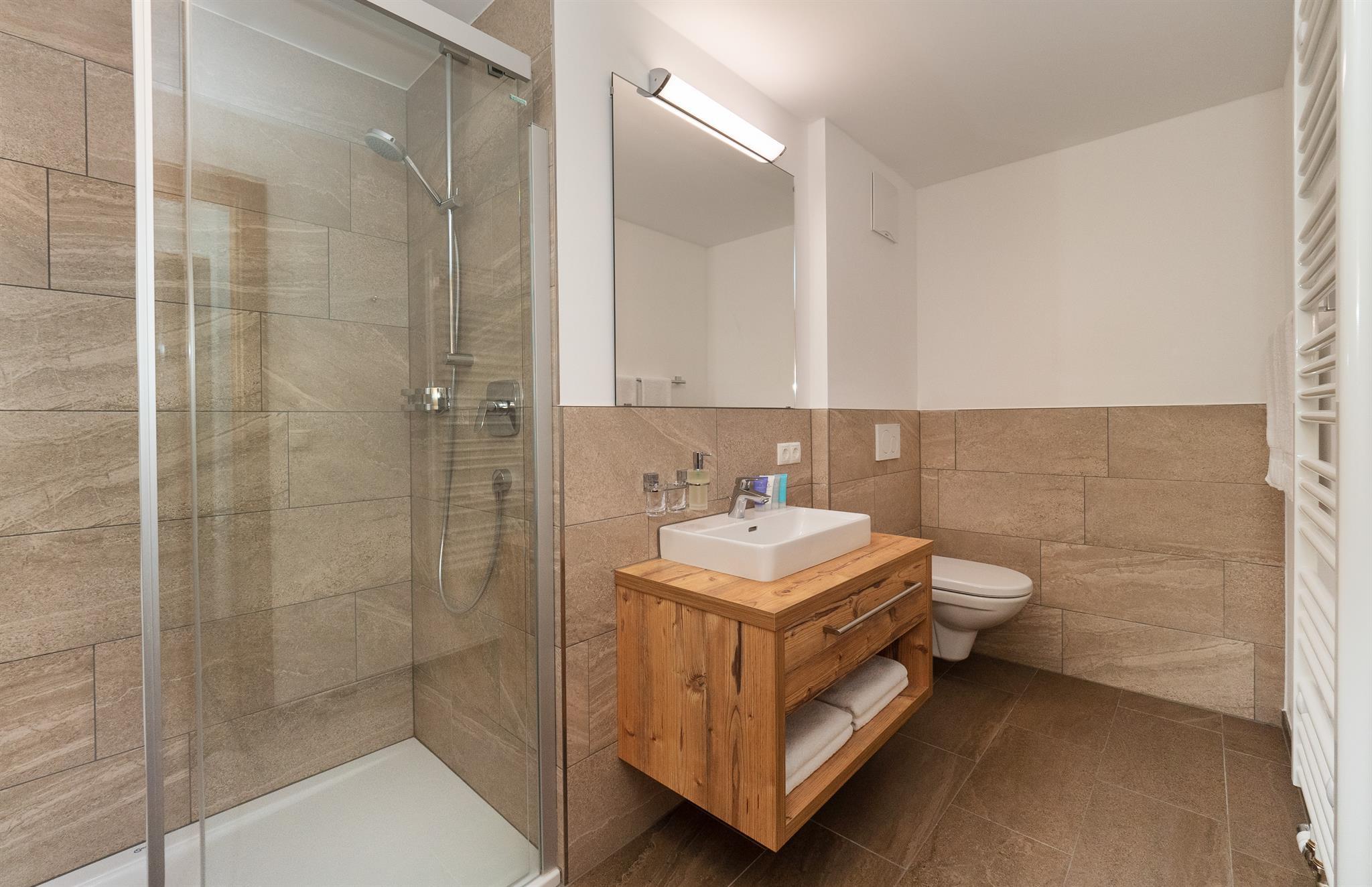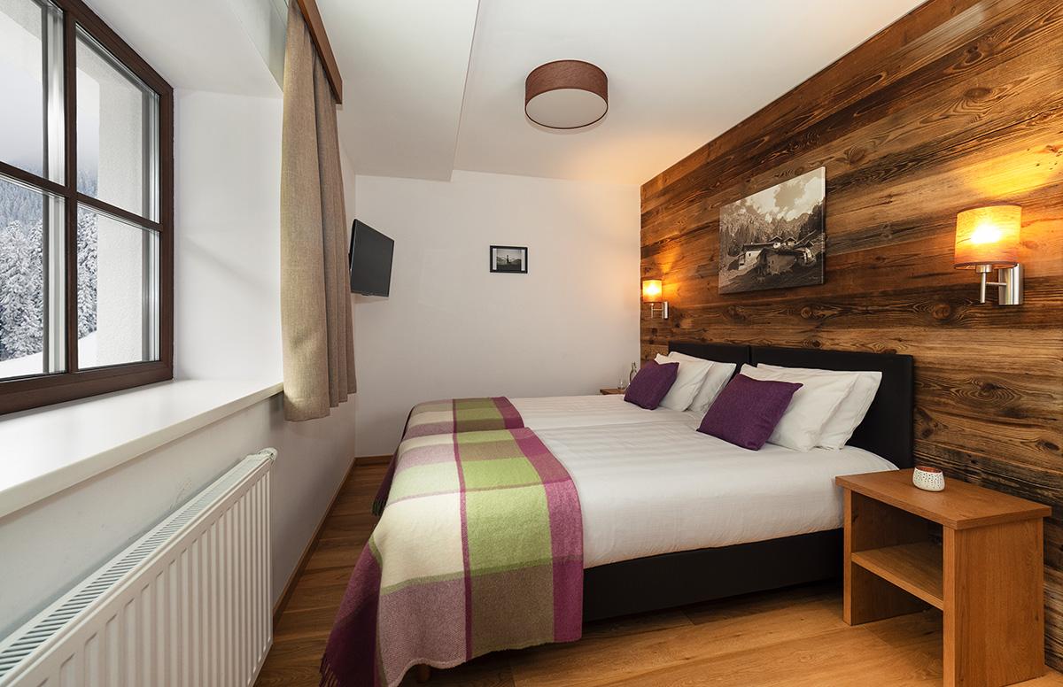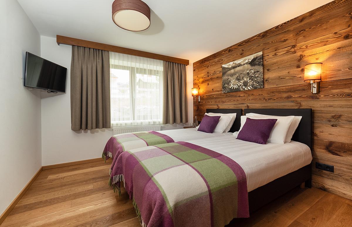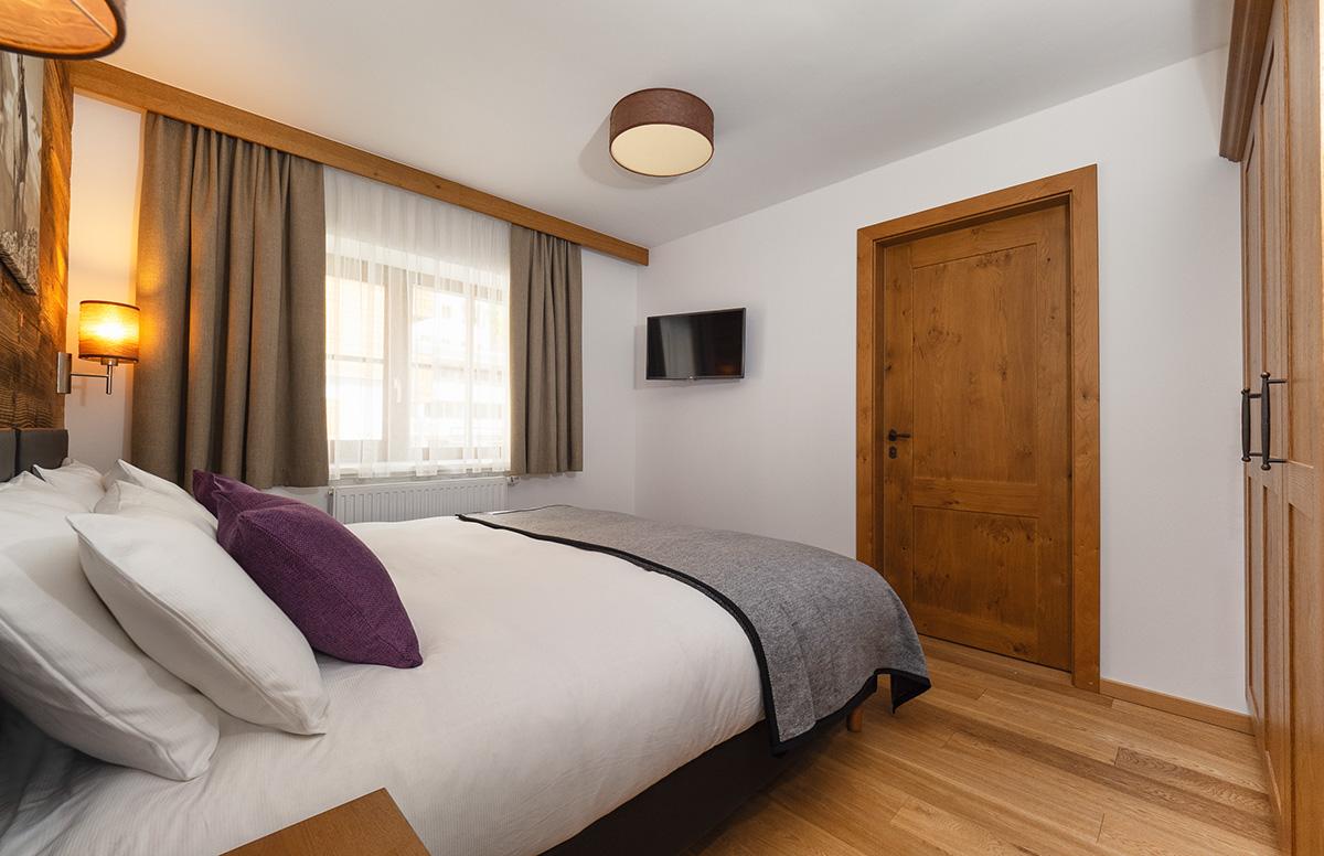 Das Chalet Viridi bietet Platz für bis zu 4 Personen auf einer Wohnfläche von 75m². Die zwei großzügigen, rustikalen Schlafzimmer sind mit einem bequemen, teilbaren Boxspring-Doppelbett, einem geräumigen Kleiderschrank und einem Nachttischchen ausgestattet. Jedes Schlafzimmer verfügt über ein eigenes modernes Badezimmer mit Waschbecken, Dusche oder Badewanne, WC, Haarföhn und einem Handtuchtrockner.