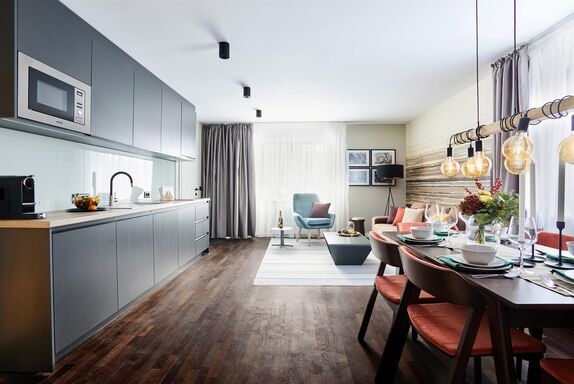 Im Apartment Wood erlebst du die Liebe zum Detail und erfreust dich an den kleinen Dingen des Lebens. Bestaune unser erfrischendes Design und nimm dir daran Beispiel, dass man durchaus aus der Reihe tanzen darf. Kunterbunte stille Örtchen, farbenfrohe Tapeten aus Kupferdrähten und prunkvolles Interior machen dieses Apartment zu etwas ganz besonderem. Individuell, genau so wie du, wenn du deine Zeit im das Valdo verbringst.