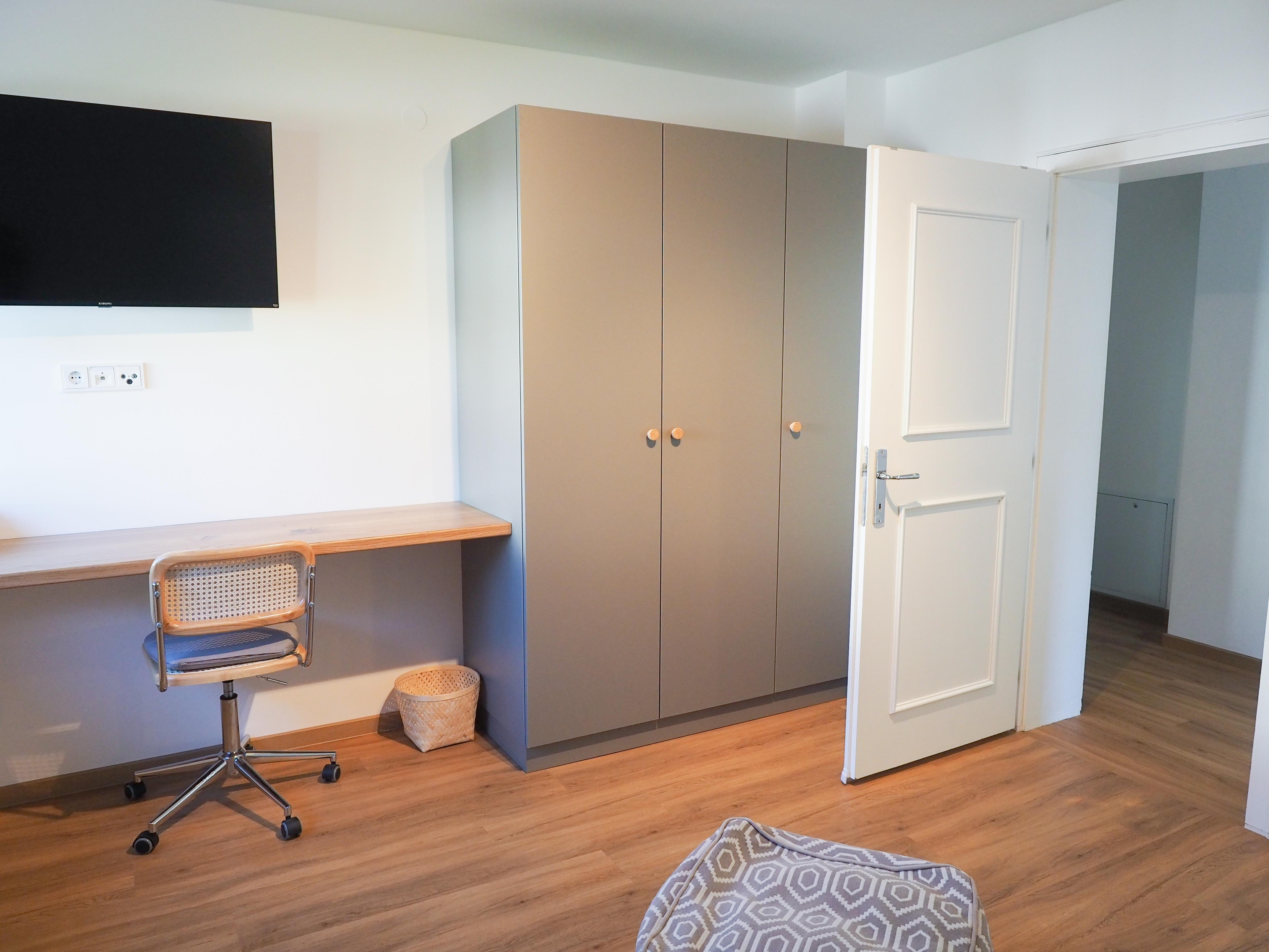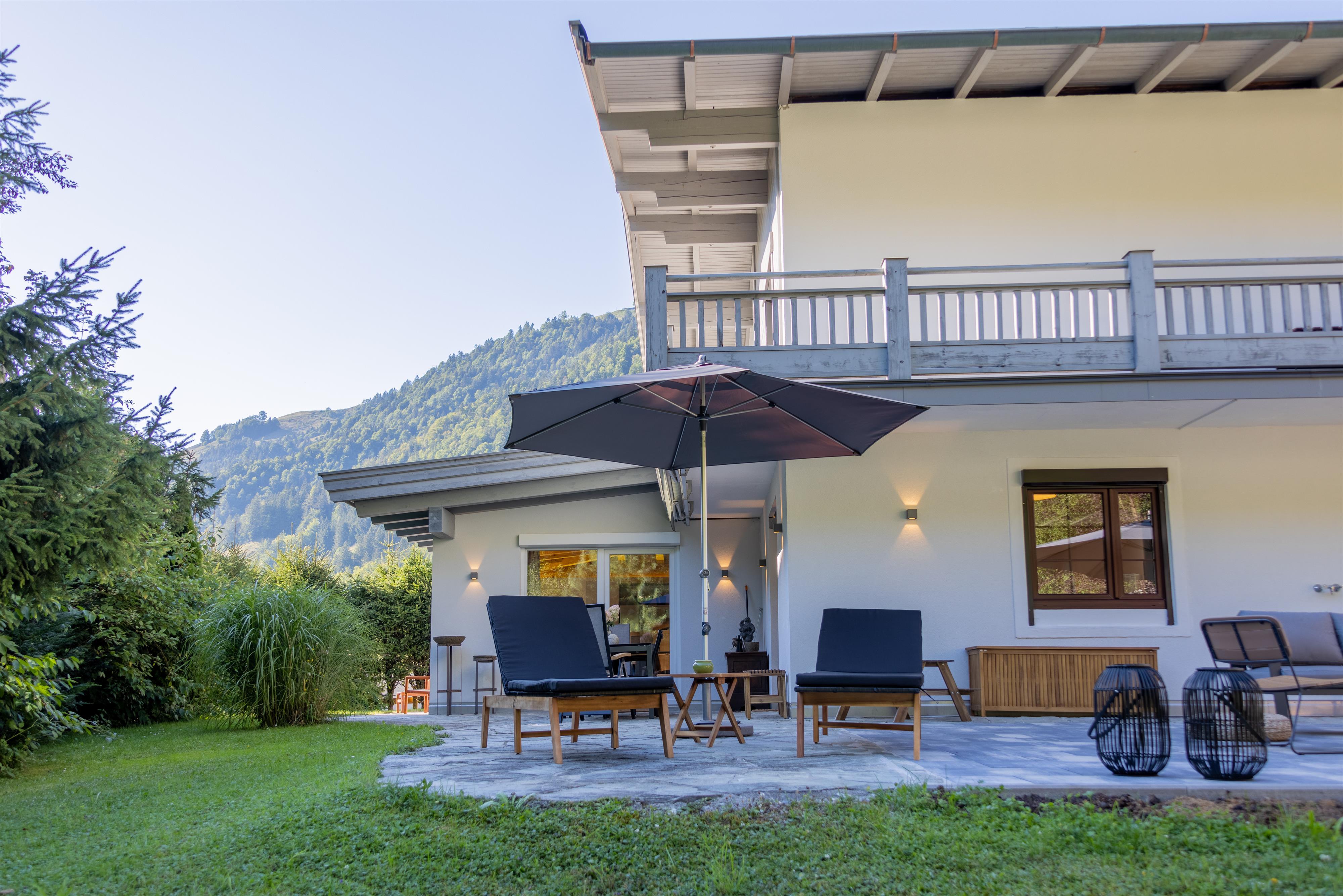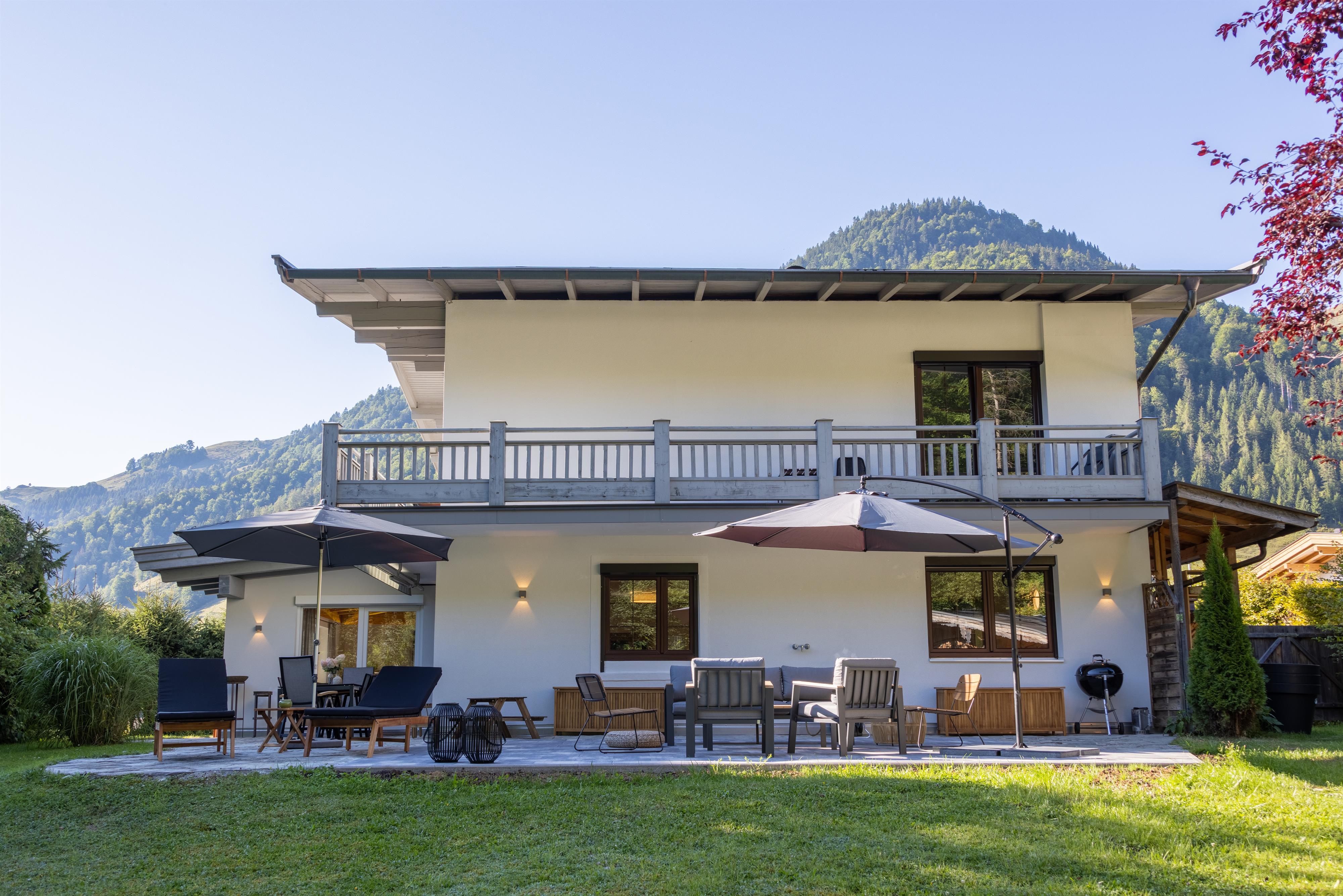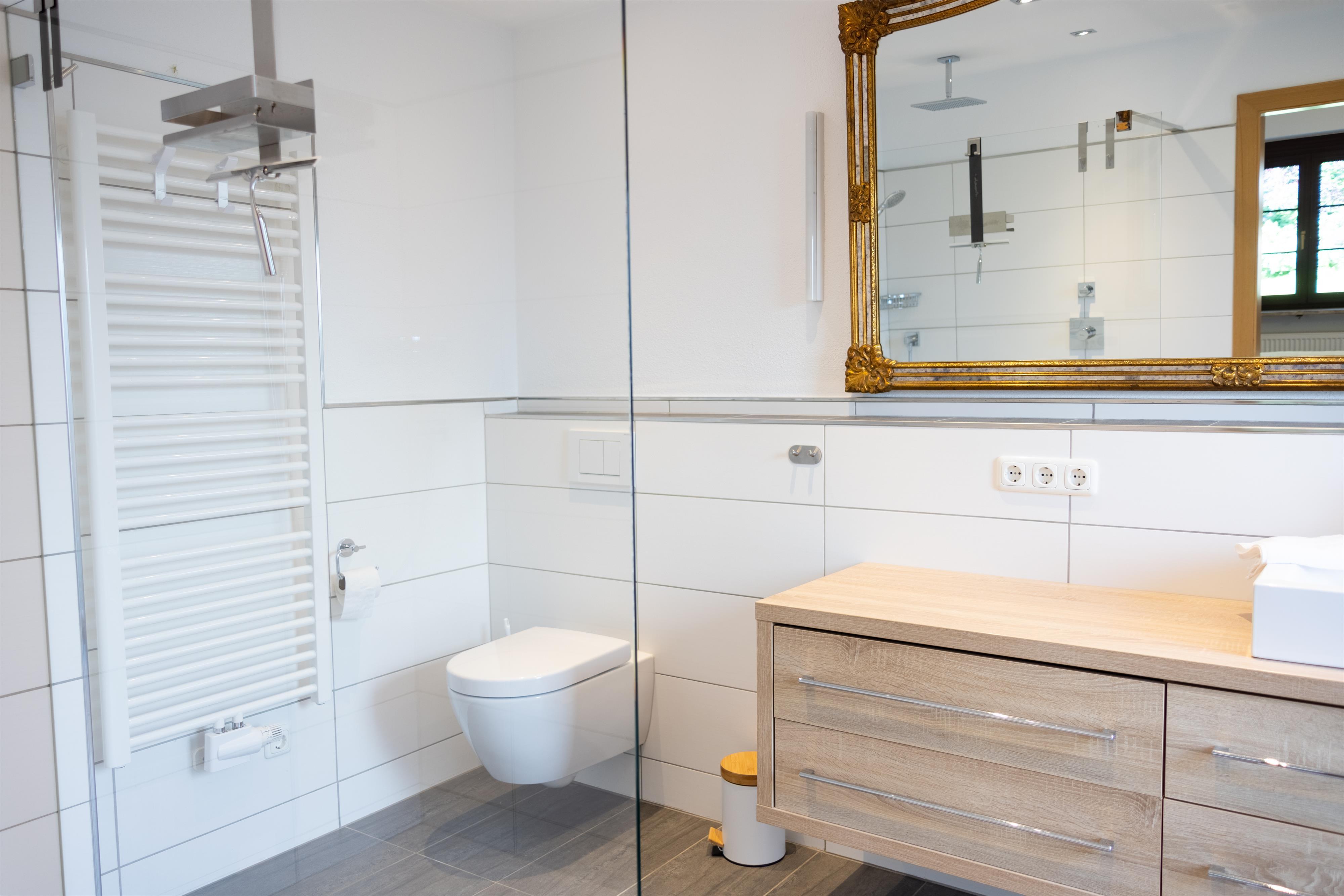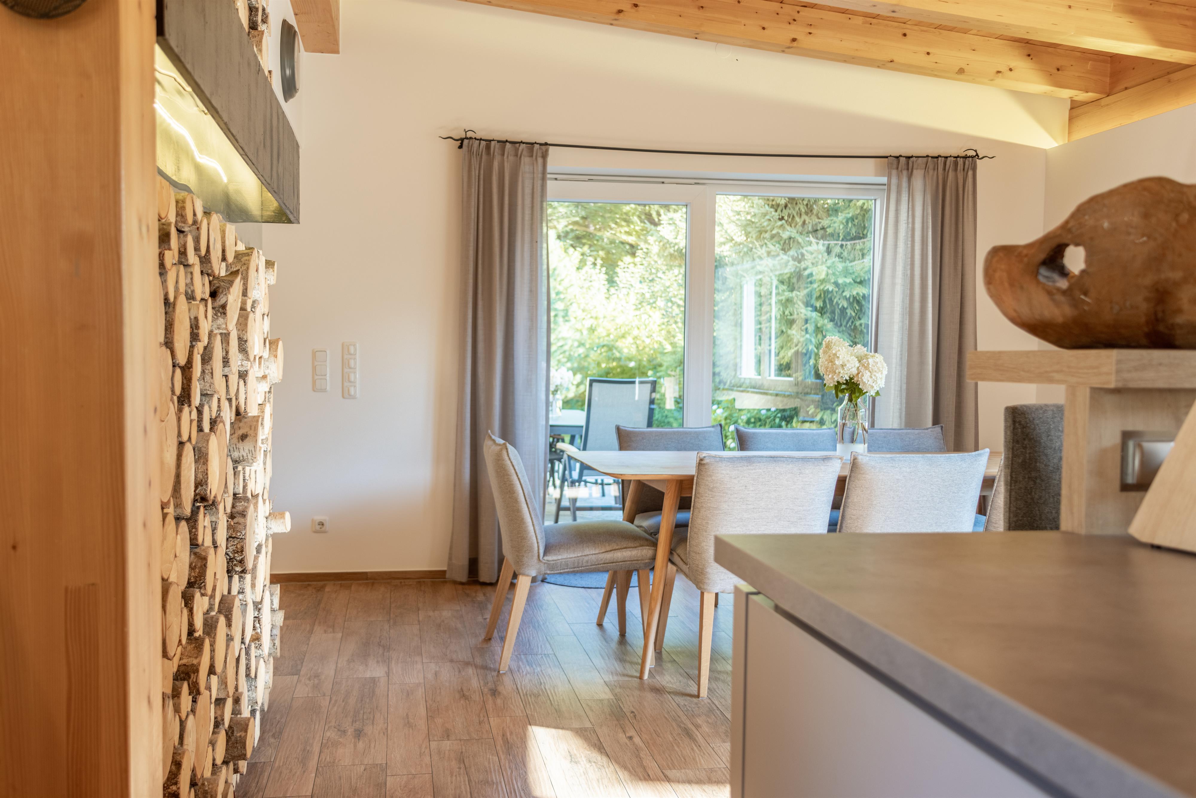 Der Eingangsbereich mit Gäste-WC führt in den großzügigen Wohnbereich, sowie in das Obergeschoss mit 4 Zimmern. Insgesamt verfügt das Haus über 5 Schlafzimmer und 4 Badezimmer. Vom Wohnzimmer und der Küche hast Du einen direkten Zugang auf die Terrasse mit diversen Sitz- und Liegemöglichkeiten samt Holzkohlegrill. Umrandet wird das Haus von einer weitläufigen Grünanlage, die zum Spielen und Entspannen einlädt. Direkt auf dem Grundstück befinden sich 4 kostenfreie Parkplätze und eine Garage, die als Abstellmöglichkeit für diverses Equipment (z.B. Fahrräder oder Ski) genutzt werden kann.