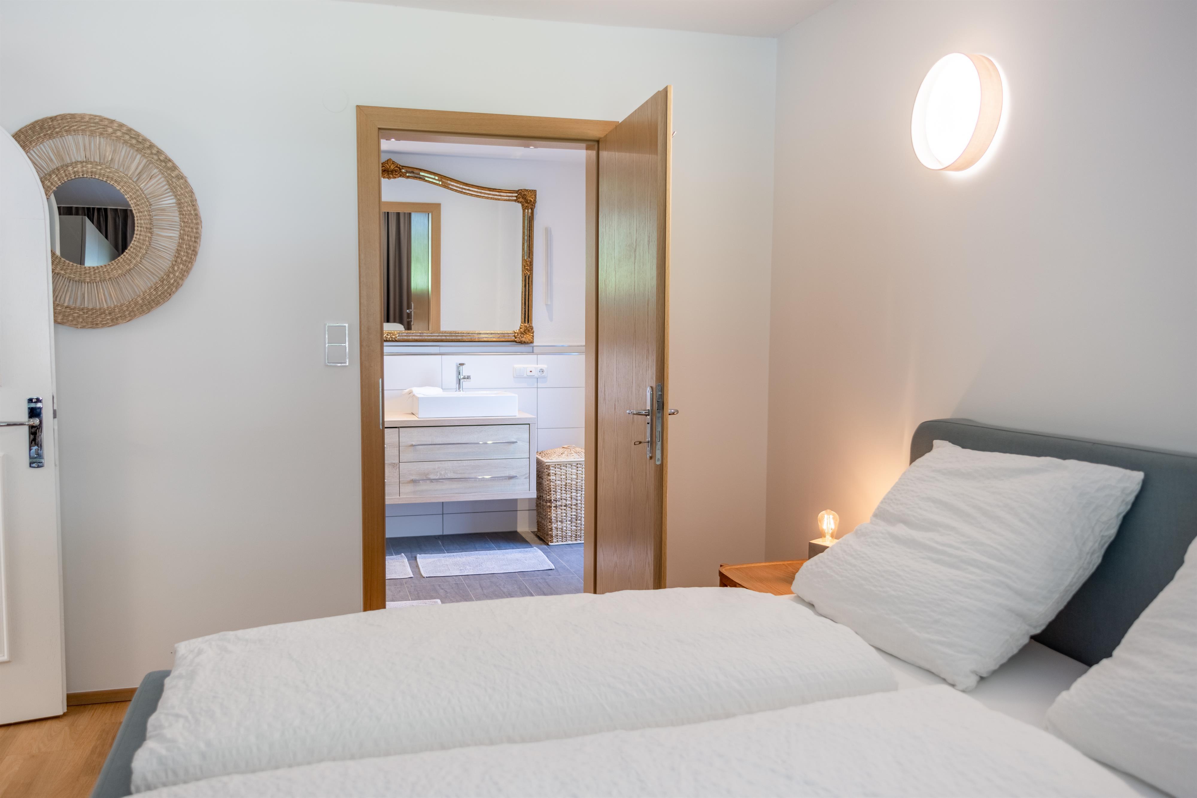 1 Schlafzimmer mit Doppelbett (1,80 x 2,00) und eigenem Bad