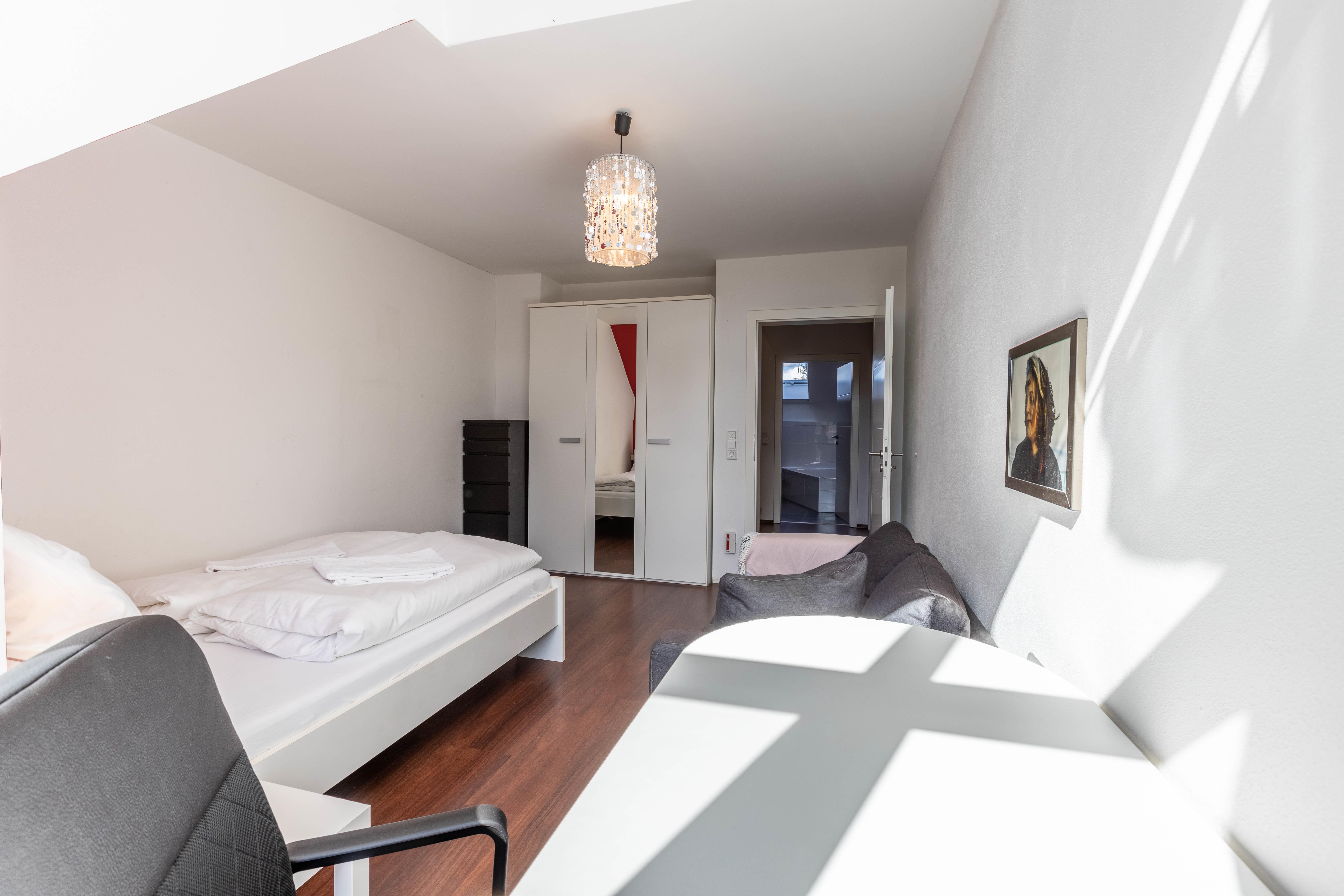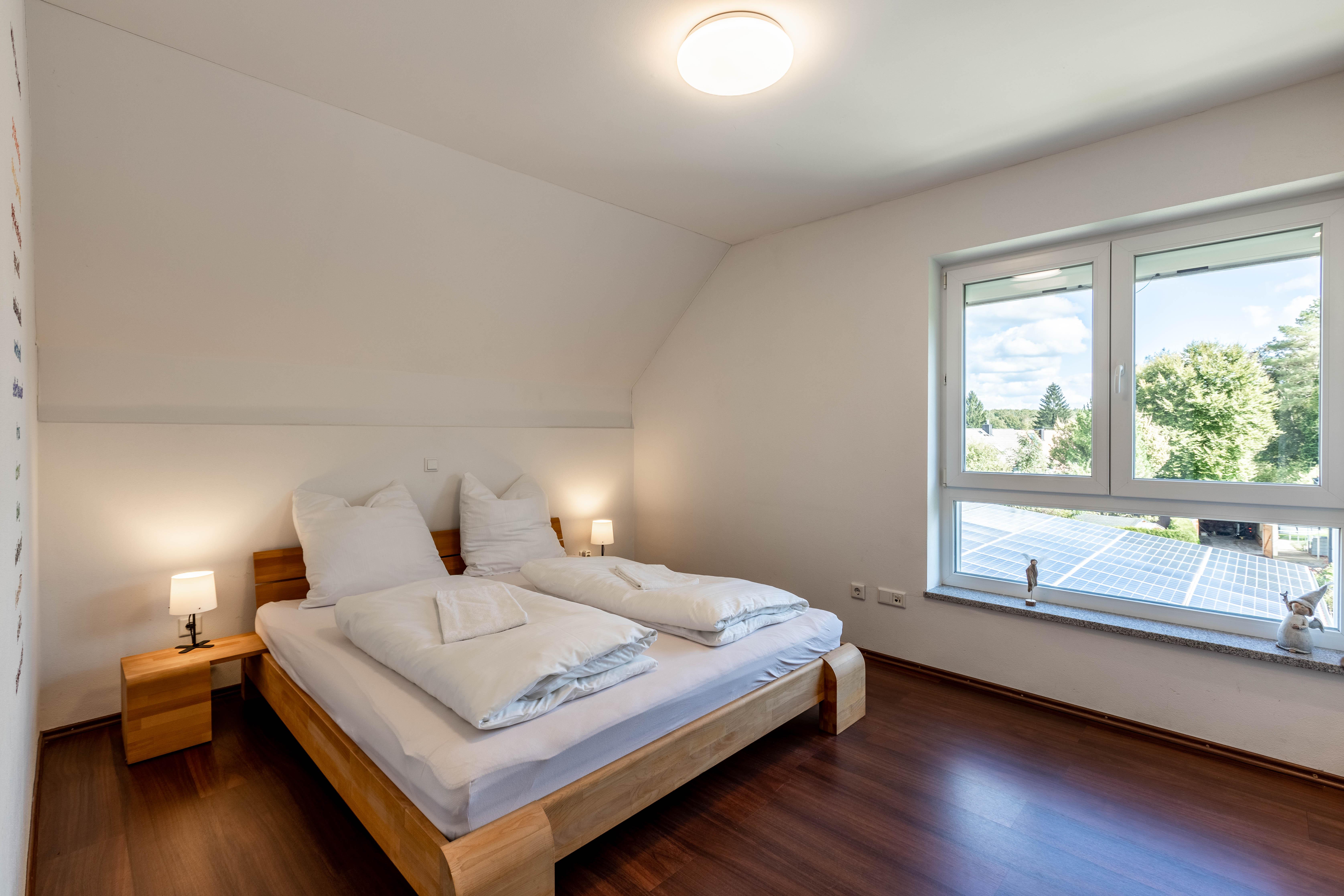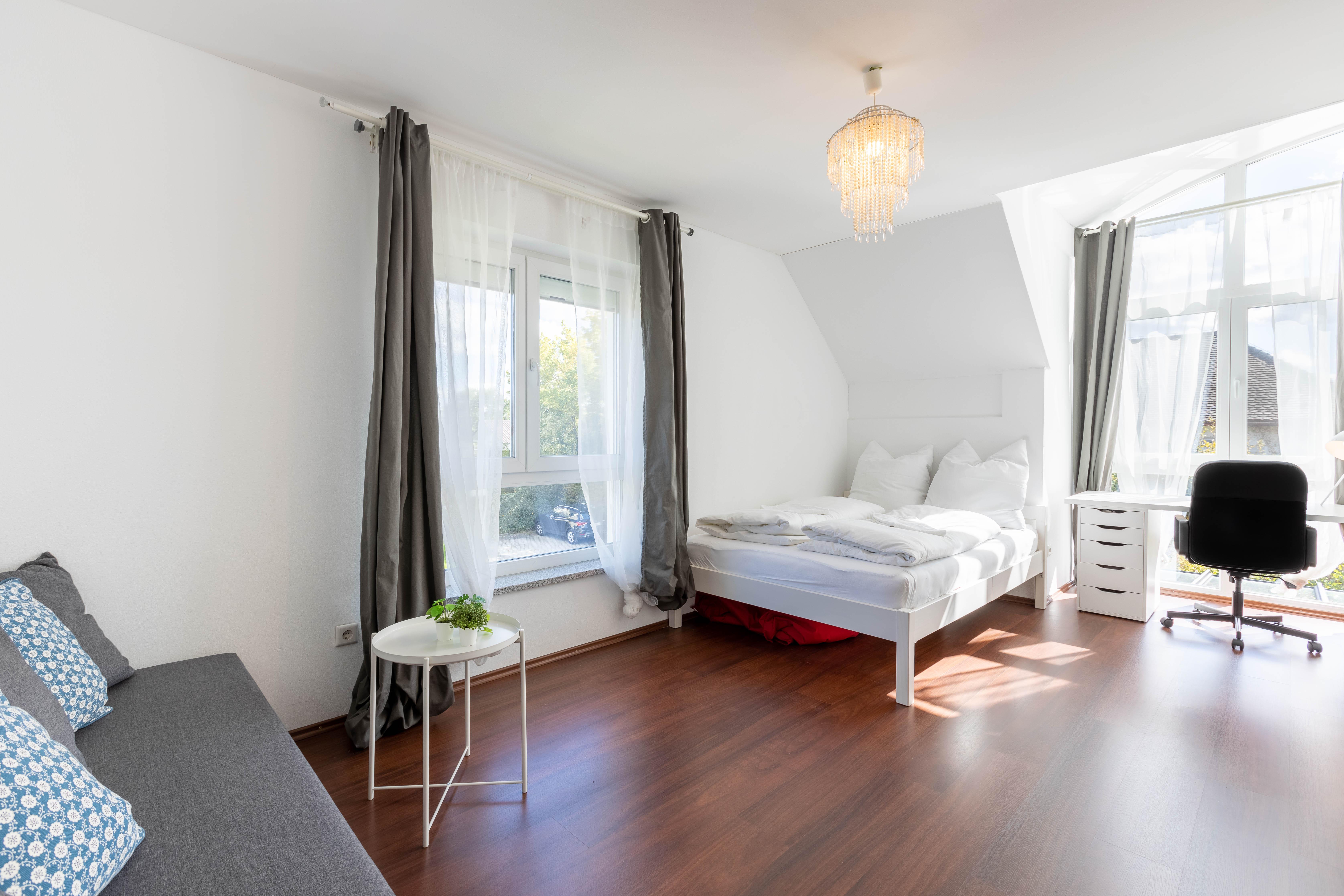 Willkommen in der Villa Grafrath! Das Haus mit riesiger Wohnküche inklusive Klimaanlage, 3 Schlafzimmern und Badezimmer ist circa 150 m2 groß. Außerdem gibt es einen Garten mit einer großzügigen überdachten Terrasse. Hier gibt es mehr als genug Platz für bis zu sechs Personen um eine ruhige Auszeit in der Nähe des Ammersees und Münchens zu genießen. Der Check-in erfolgt flexibel via Smart Lock.