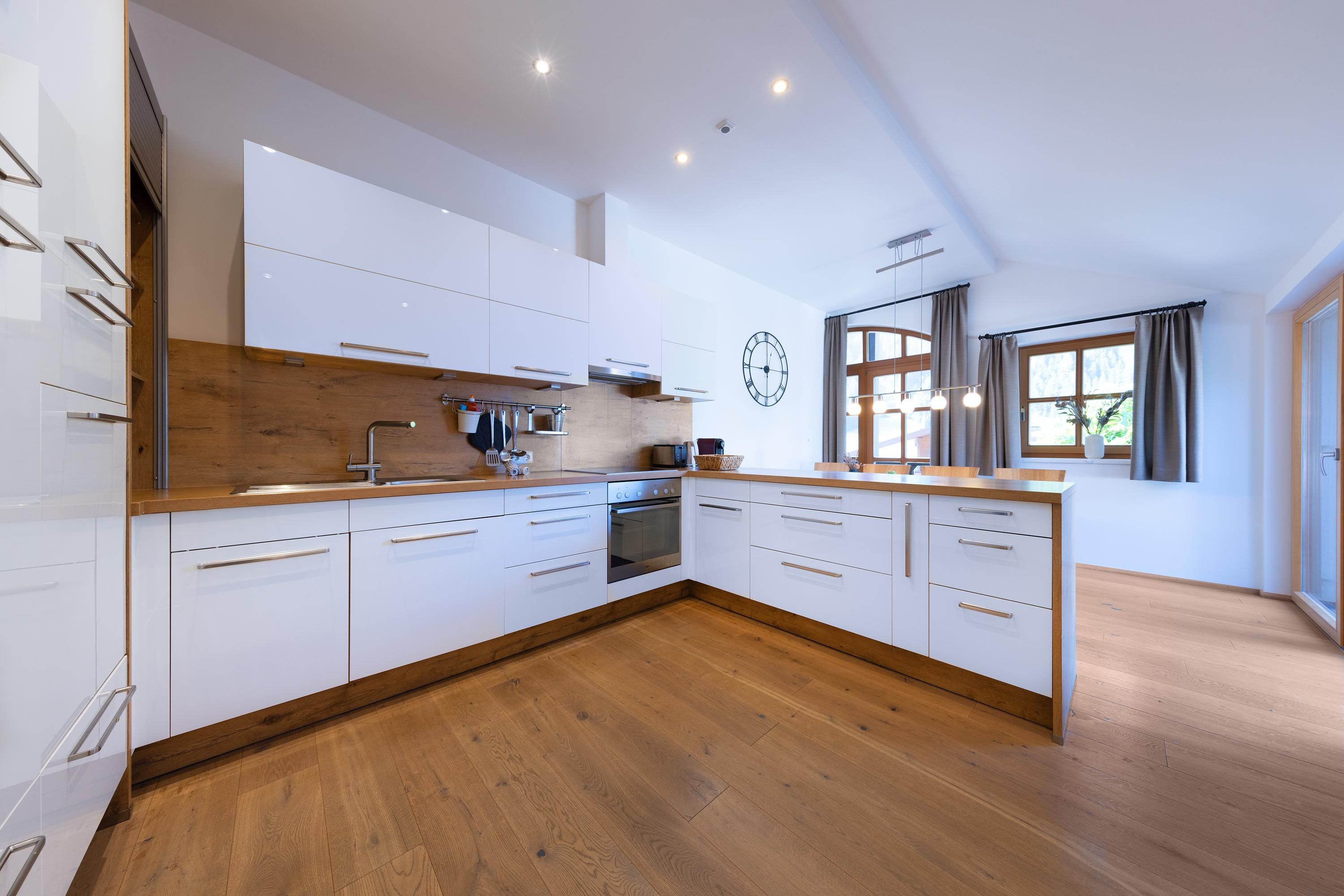 Die voll ausgestattete Küche bietet dir alles, was du für die Zubereitung von Mahlzeiten benötigst, inklusive Geschirrspülmaschine und Kaffee-Maschine. Das Badezimmer ist mit einer Badewanne und Dusche ausgestattet und es gibt ein separates WC.