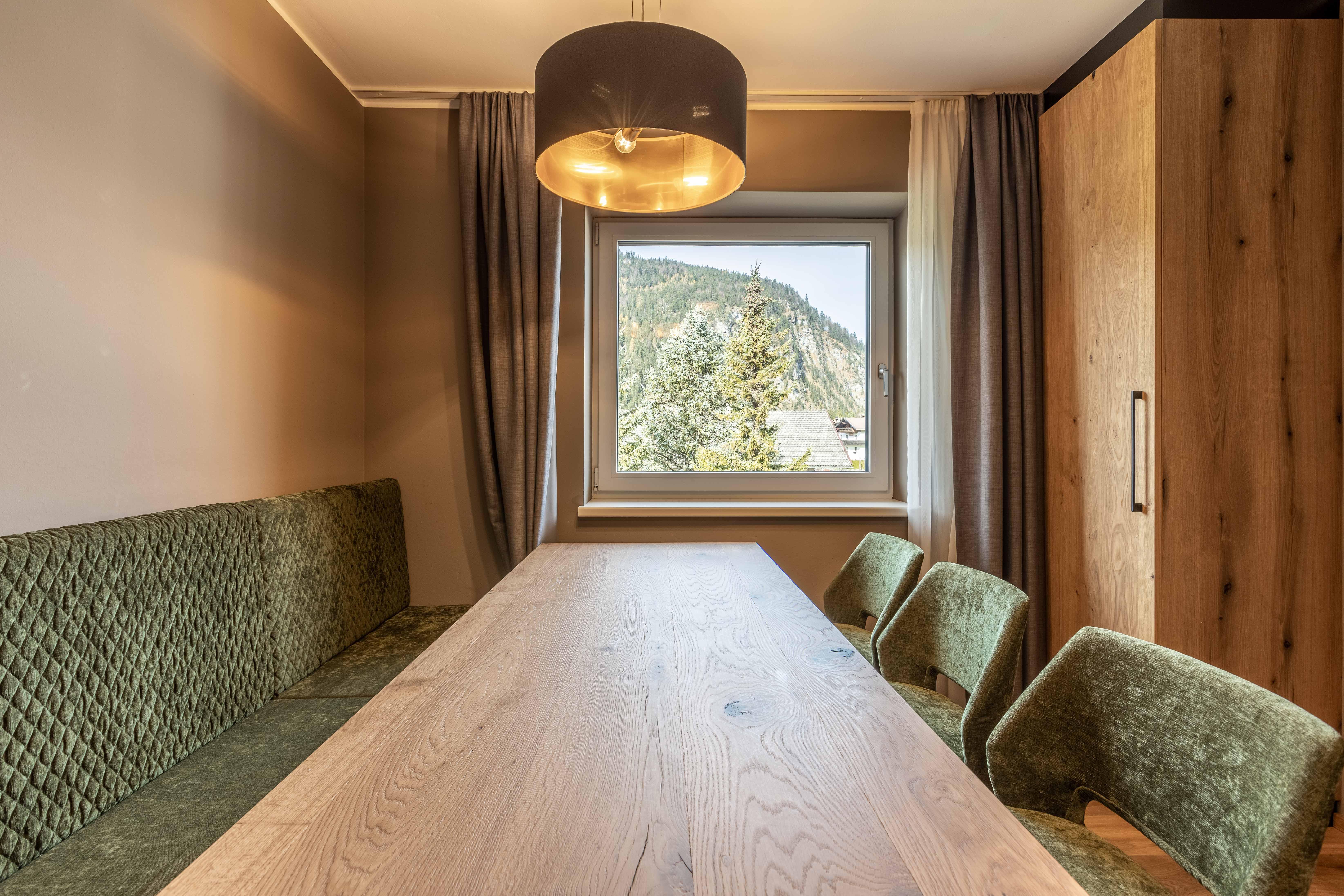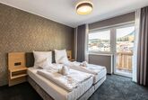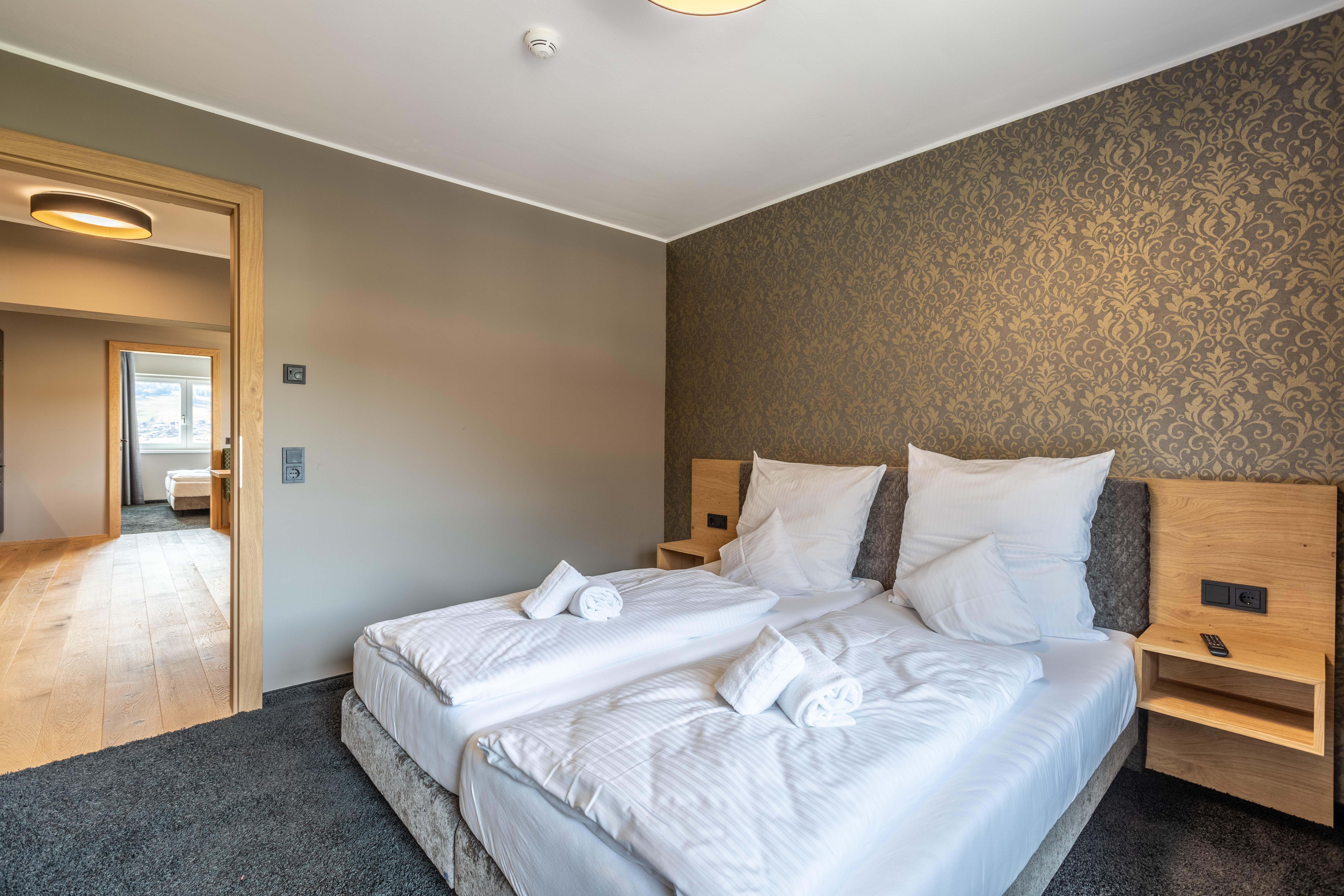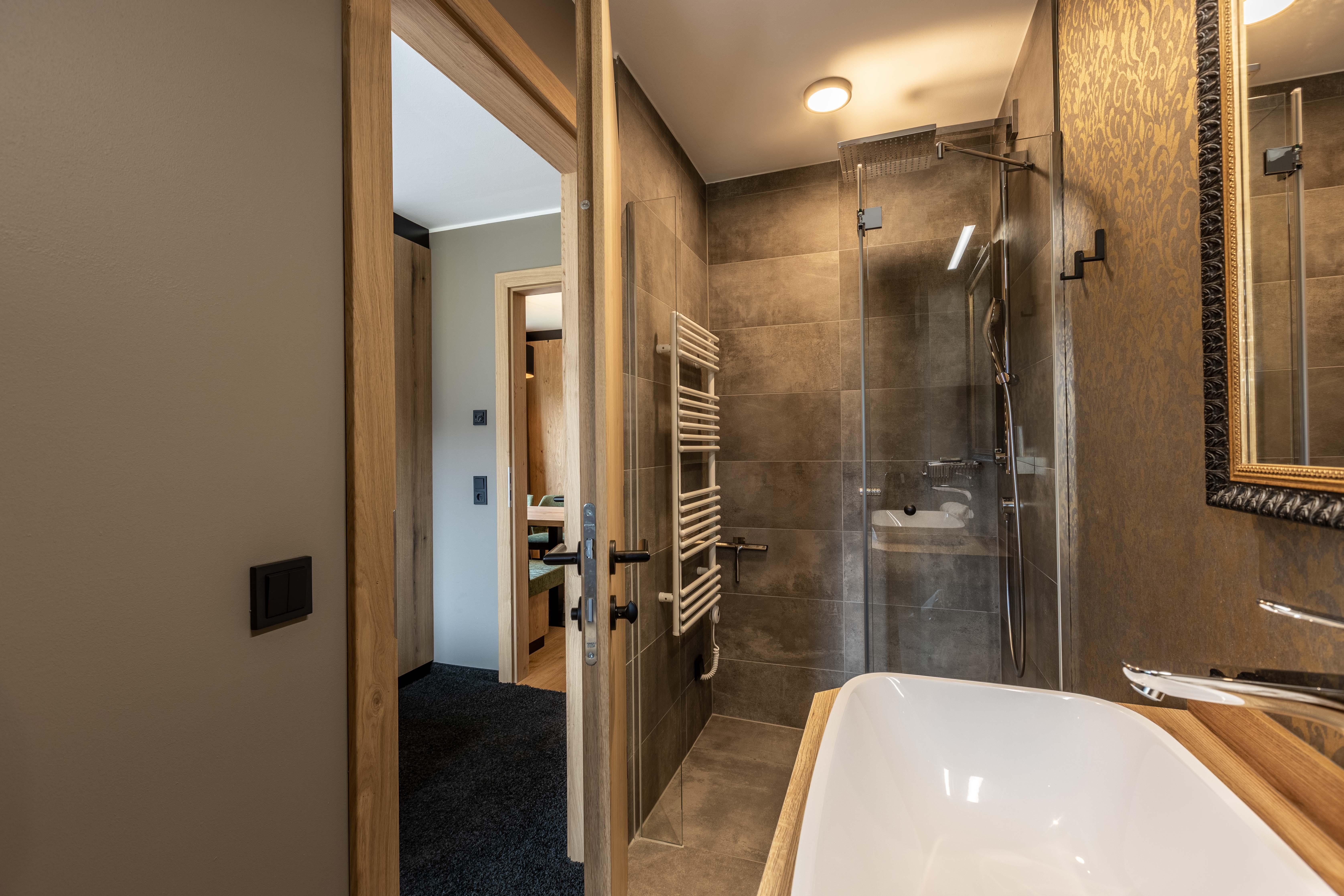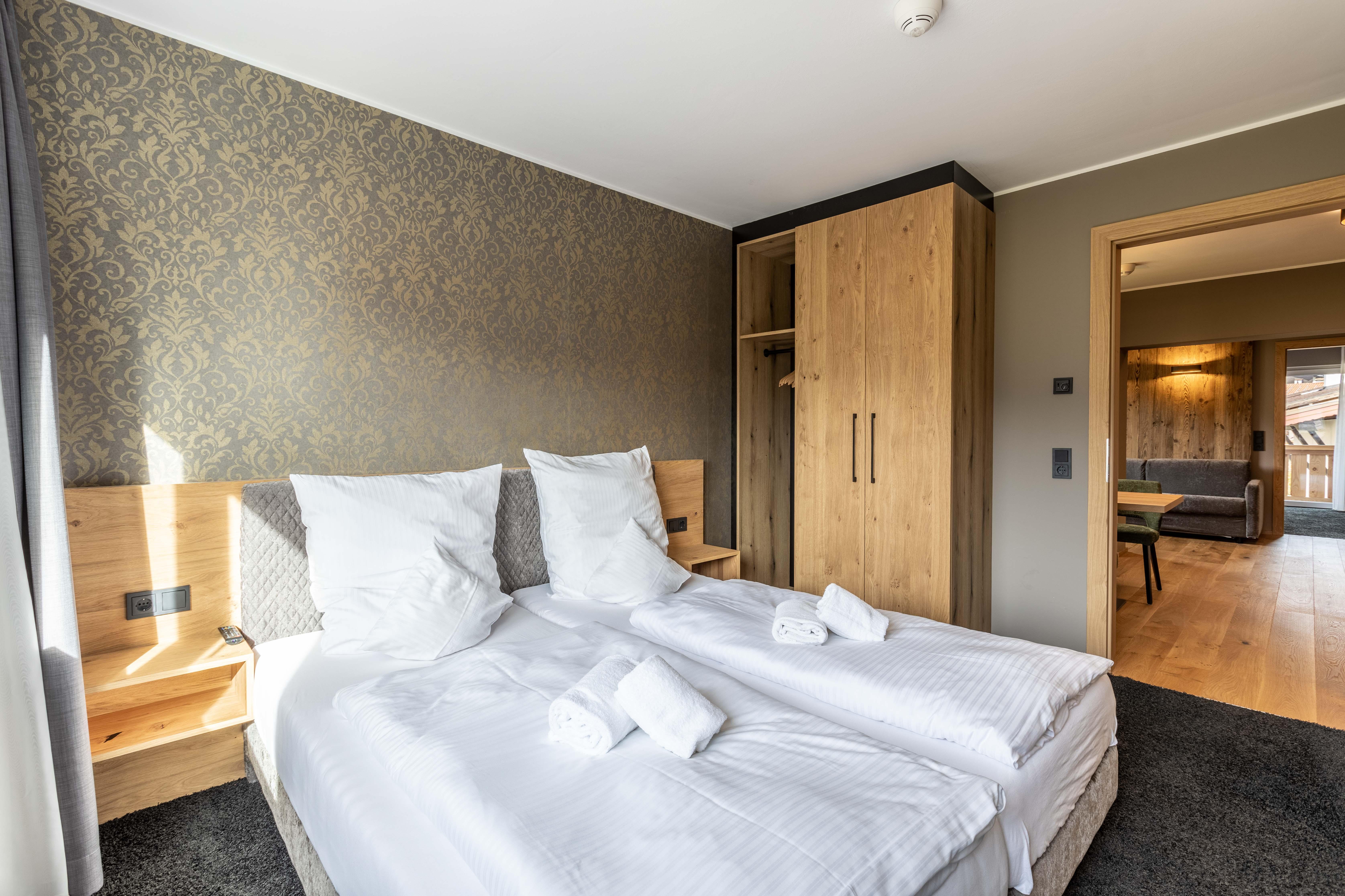 Das Apartment für 6 Personen bietet Wohnküche, 2 Schlafzimmer (Boxspringbetten, 1xeigenes Bad, 1x Balkonzugang), 2 Badezimmer und Balkon. Der Eingangsbereich, mit Garderobe, führt direkt in die Wohnküche, welche mit Küchengeräten, Kühl-Gefrierkombi sowie Nespresso Kaffeemaschine ausgestattet ist. Die Küche verfügt außerdem über Küchengeschirr. Der Esstisch bietet Platz, um ein selbstgekochtes Mahl zu genießen. Im Wohnbereich befindet sich TV, Kleiderschrank und Ausziehsofa. .