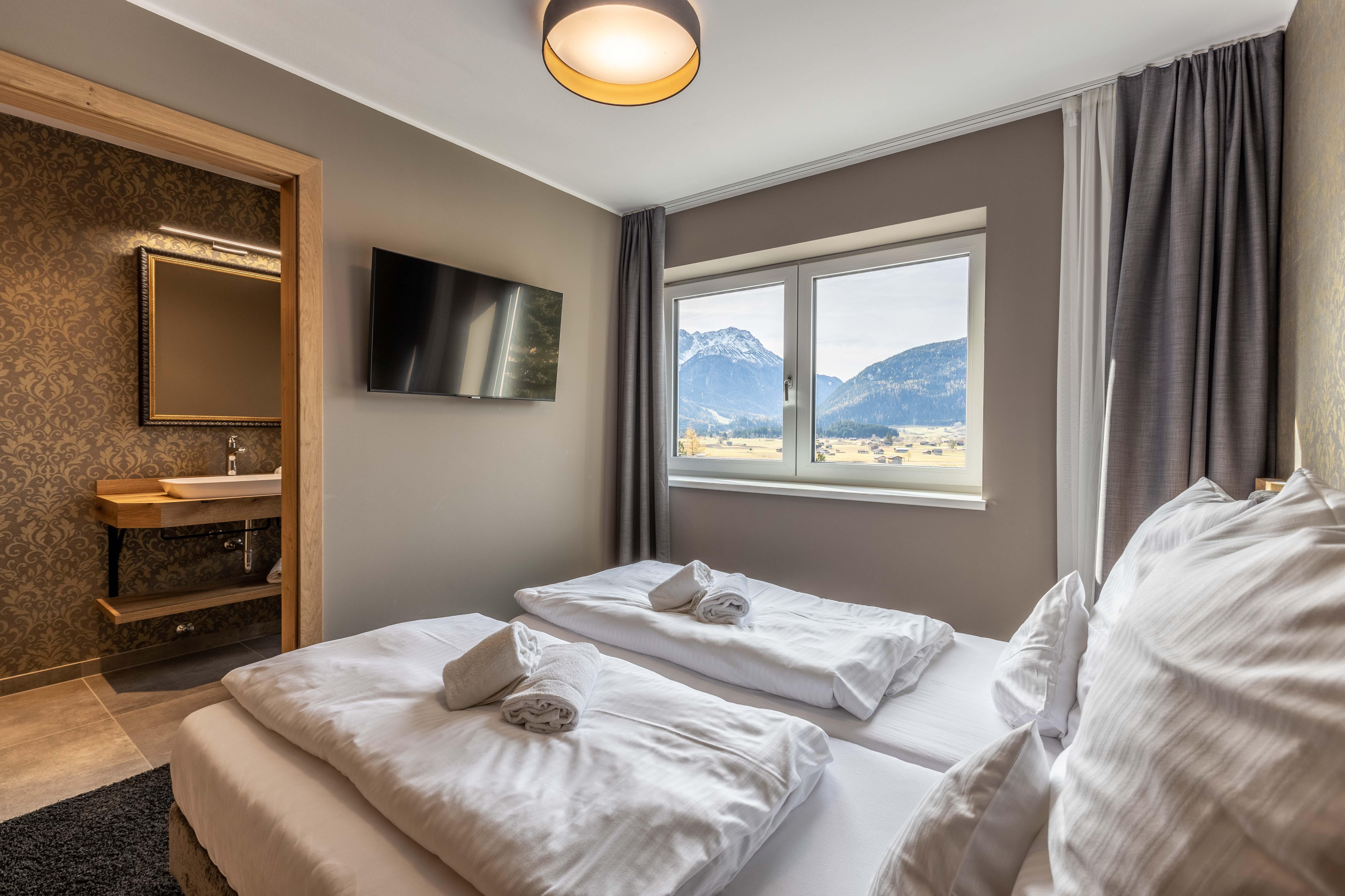 Zugspitz Residences liegt im Herzen von Ehrwald, direkt neben dem Golfplatz und in unmittelbarer Nähe des weit bekannten Ehrwalder Schigebiets. Dieser einzigartige, familienfreundliche Topspot garantiert ganzjährig Sport- und Freizeiterlebnisse der besonderen Art. Die bequem vom Haus aus zu erreichende Zugspitz Arena mit 56 Bergbahnen bietet auf 142 Pistenkilometern abwechslungsreiches Skivergnügen in allen Schwierigkeitsgraden! Des Weiteren sind eine problemlose Anbindung (Flughafen Innsbruck, 75 km - Flughafen München (DE), 147 km - Flughafen Salzburg, 196 km - Flughafen Zürich (CH), 200 km) und diverse Ausflugsziele (Bayrische Königsschlösser, Seefeld, Ötzi Dorf, Swarovski Kristallwelten, Innsbruck uvm.) gegeben. Parkmöglichkeiten sind rund um die Residenz vorhanden. Für Körper und Seele besteht im Erdgeschoß ein exklusiver Wellnessbereich mit Indoor-Infinity-Pool, finnischer Sauna, Bio-Sauna sowie Infrarotkabine, Regenerationsdusche und einem Ruheraum für totale Entspannung. Der Außenbereich animiert im Sommer zum Relaxen in der Sonne und im Winter ist dort Erfrischung nach einem ausgiebigen Saunagang möglich.