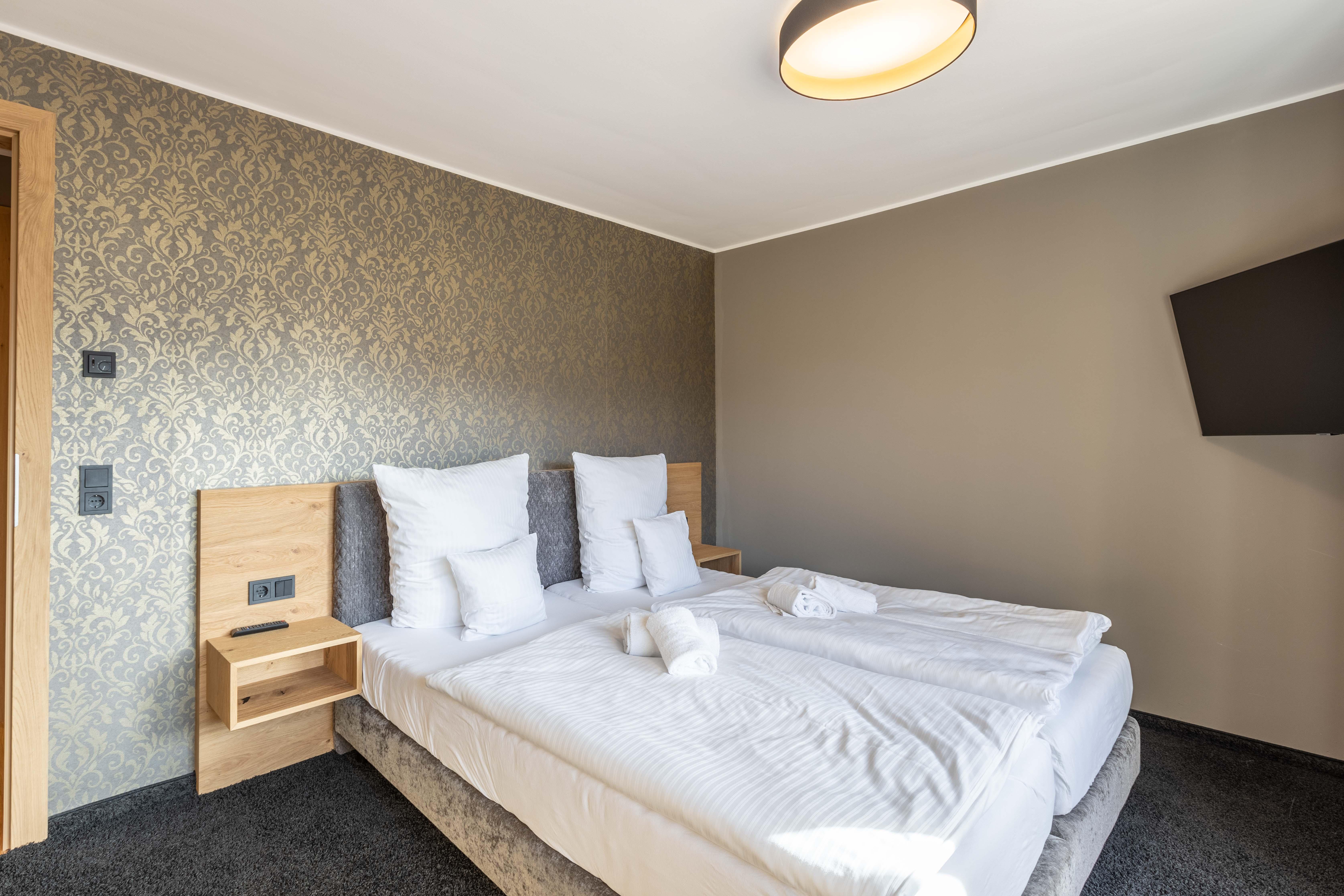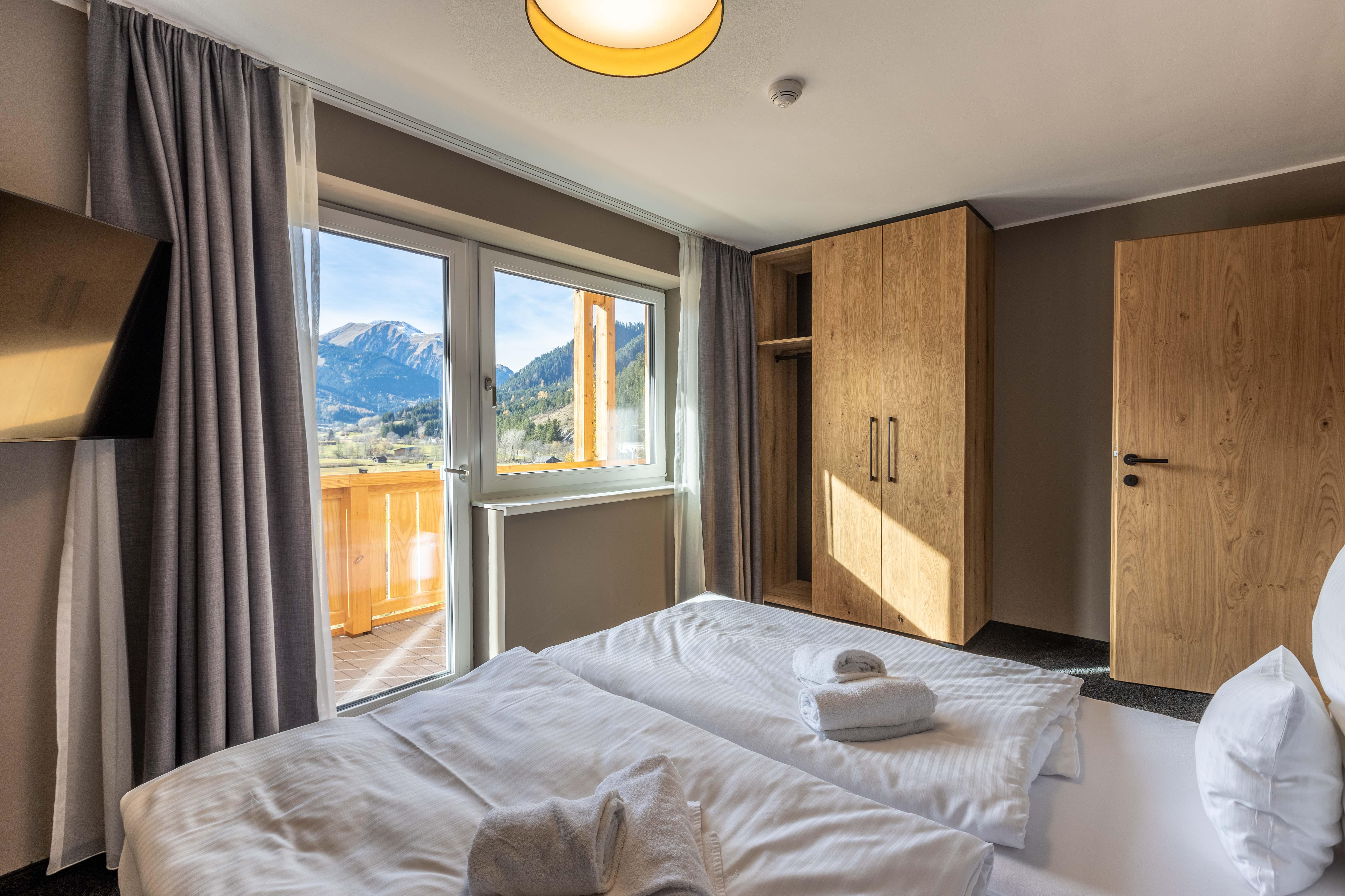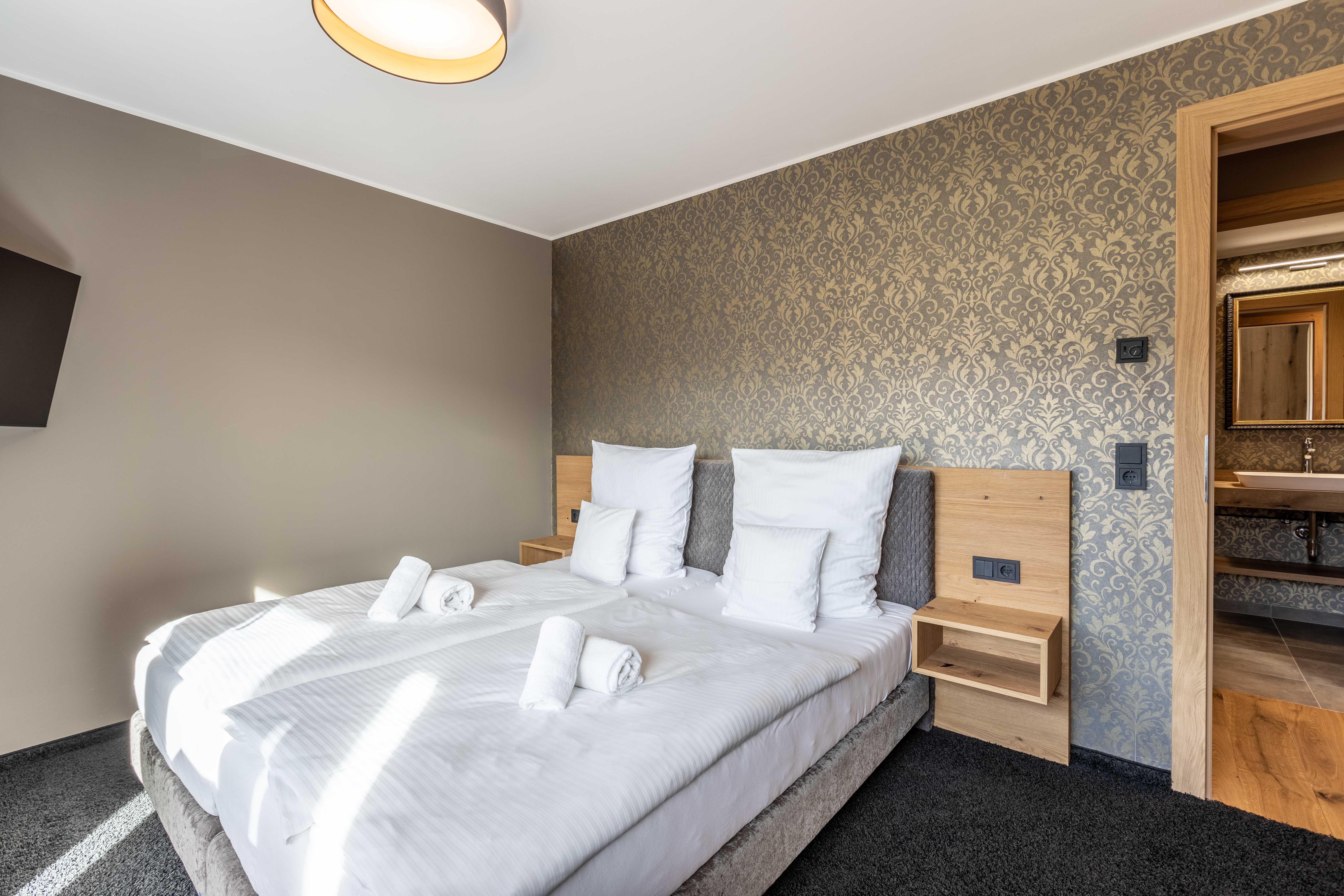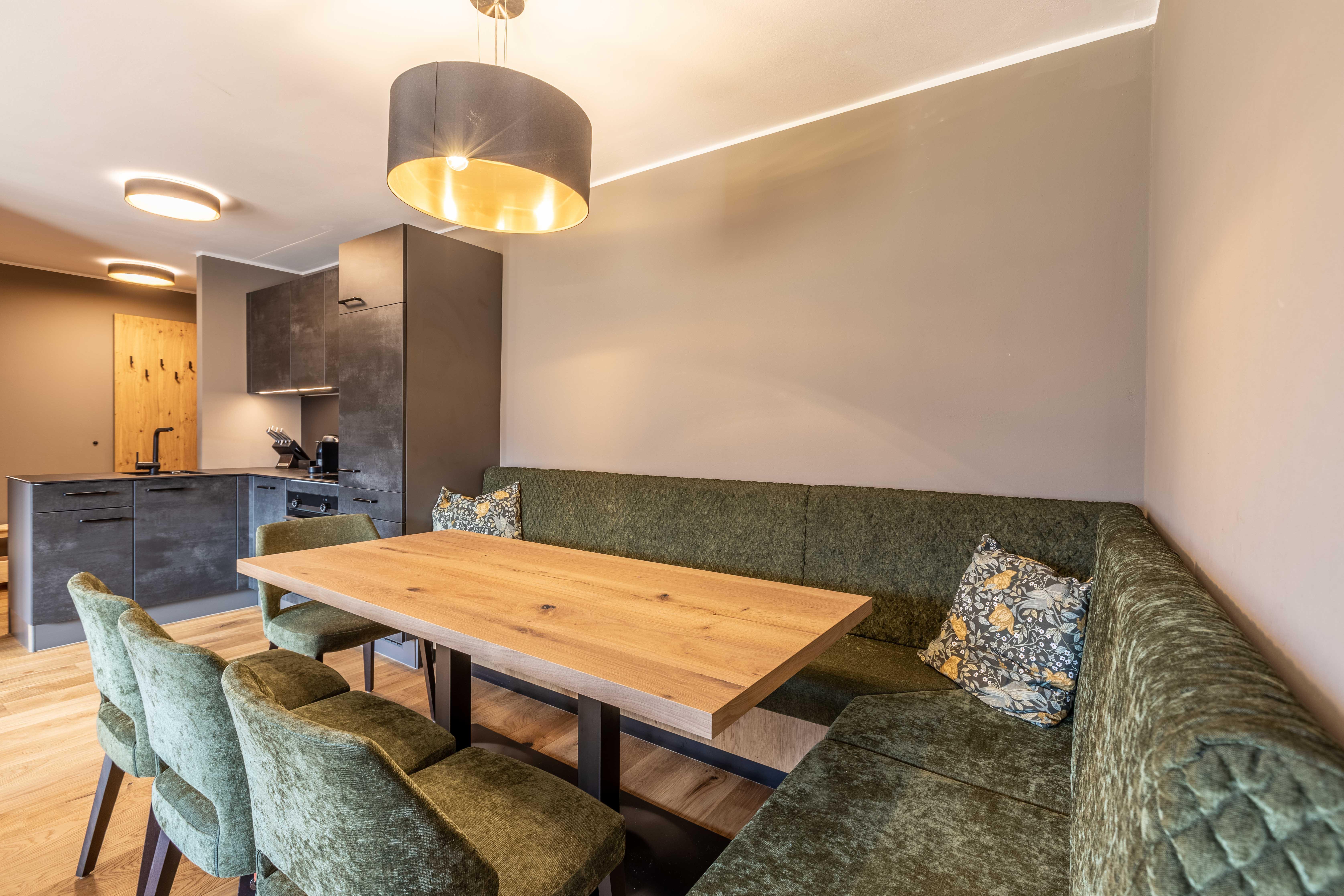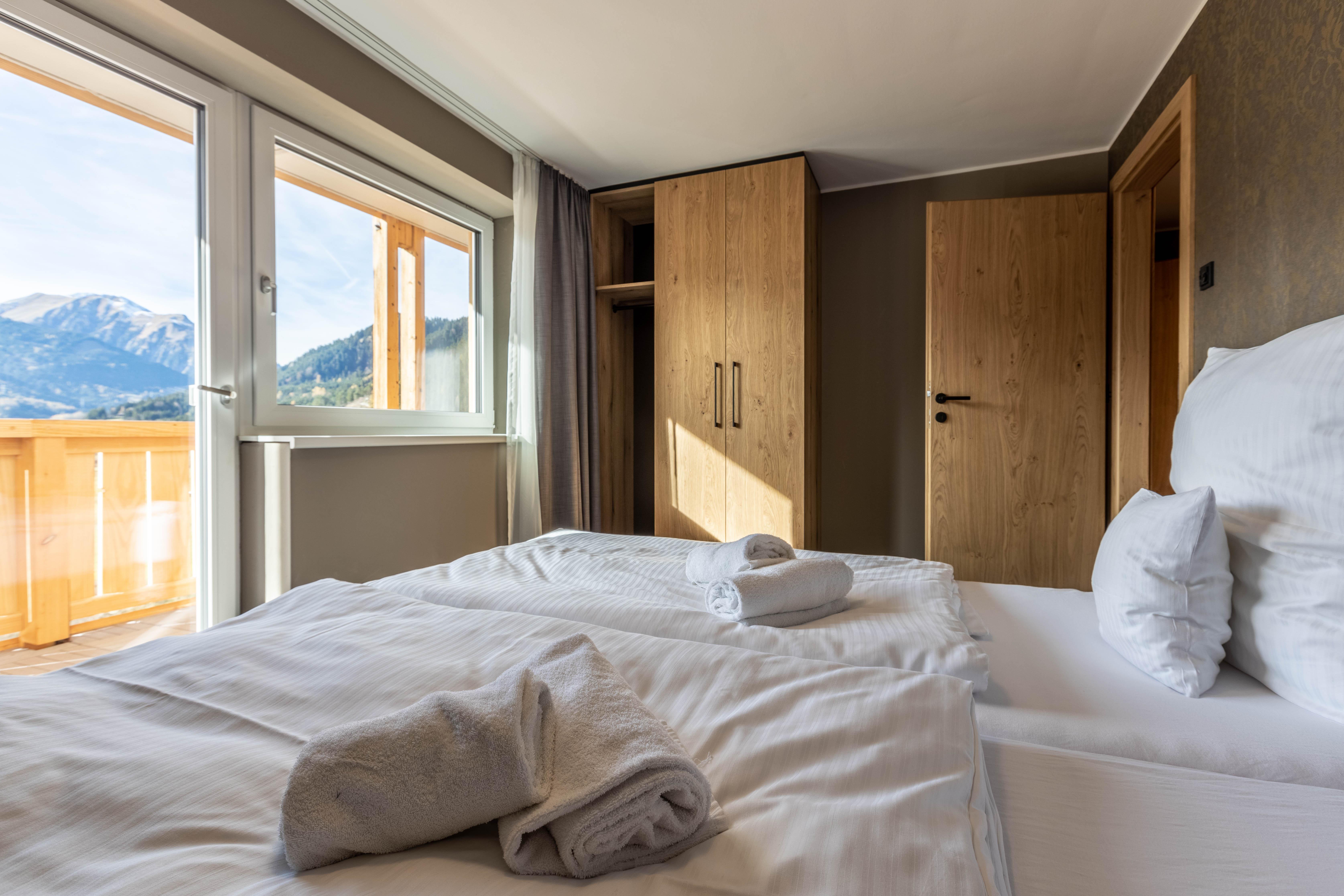 Das Apartment für 8 Personen bietet 2 Schlafzimmer (jeweils Boxspringbett und Balkonzugang), 2 Wohn/Esszimmern (jeweils Ausziehcouch) und 2 Bäder (je ein zusätzliches separates WC) und Balkon. Der Eingangsbereich, mit Garderobe, führt direkt in die Wohnküche (Balkonzugang), welche mit Esstisch, TV, Kleiderschrank und einem Ausziehsofa ausgestattet ist. Die Küche ist mit Küchengeräten, Kühl-Gefrierkombi sowie Nespresso Kaffeemaschine ausgestattet und verfügt außerdem über Küchengeschirr.