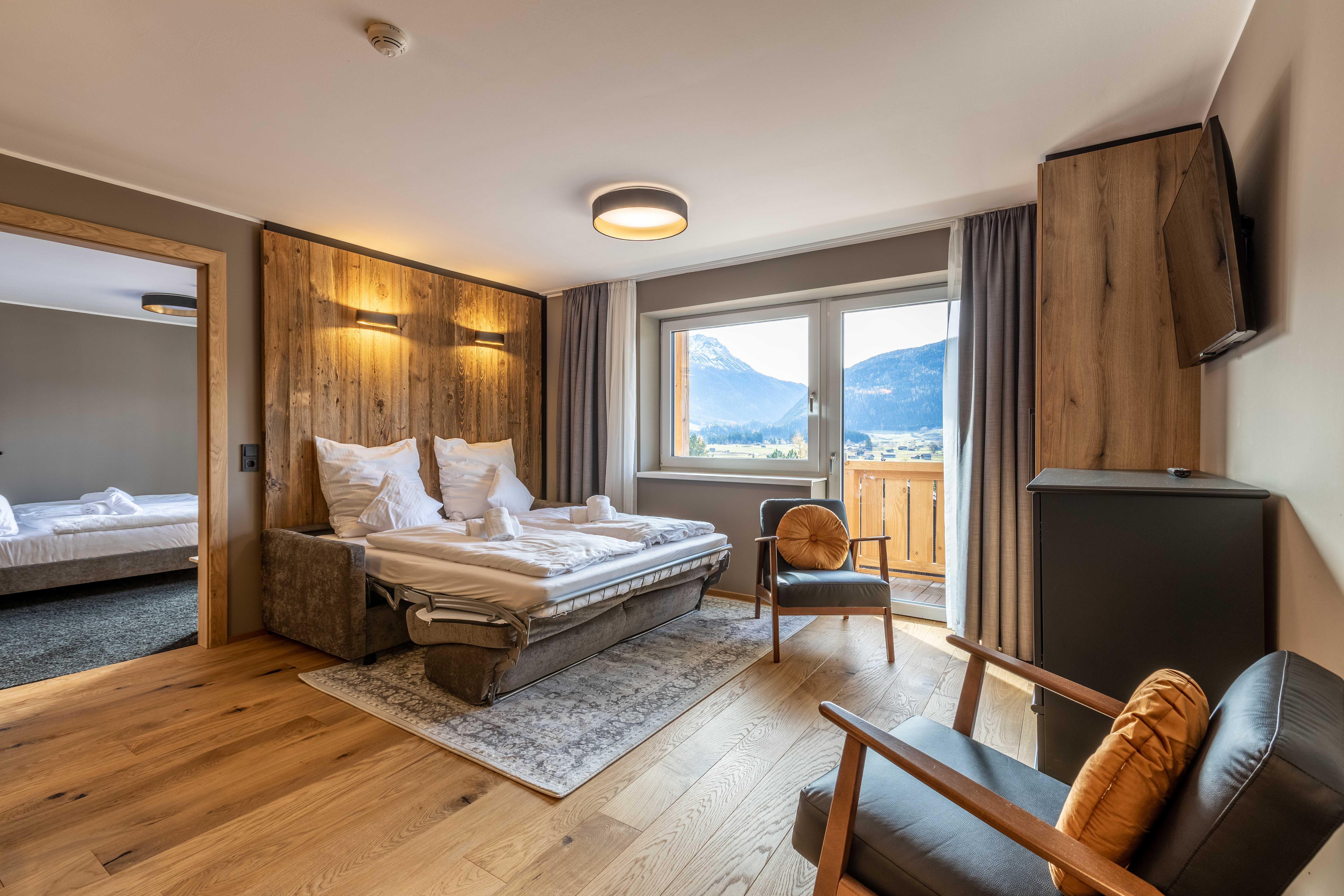 Zugspitz Residences liegt im Herzen von Ehrwald, direkt neben dem Golfplatz und in unmittelbarer Nähe des weit bekannten Ehrwalder Schigebiets. Dieser einzigartige, familienfreundliche Topspot garantiert ganzjährig Sport- und Freizeiterlebnisse der besonderen Art. Die bequem vom Haus aus zu erreichende Zugspitz Arena mit 56 Bergbahnen bietet auf 142 Pistenkilometern abwechslungsreiches Skivergnügen in allen Schwierigkeitsgraden! Des Weiteren sind eine problemlose Anbindung (Flughafen Innsbruck, 75 km - Flughafen München (DE), 147 km - Flughafen Salzburg, 196 km - Flughafen Zürich (CH), 200 km) und diverse Ausflugsziele (Bayrische Königsschlösser, Seefeld, Ötzi Dorf, Swarovski Kristallwelten, Innsbruck uvm.) gegeben. Parkmöglichkeiten sind rund um die Residenz vorhanden. Für Körper und Seele besteht im Erdgeschoß ein exklusiver Wellnessbereich mit Indoor-Infinity-Pool, finnischer Sauna, Bio-Sauna sowie Infrarotkabine, Regenerationsdusche und einem Ruheraum für totale Entspannung. Der Außenbereich animiert im Sommer zum Relaxen in der Sonne und im Winter ist dort Erfrischung nach einem ausgiebigen Saunagang möglich.