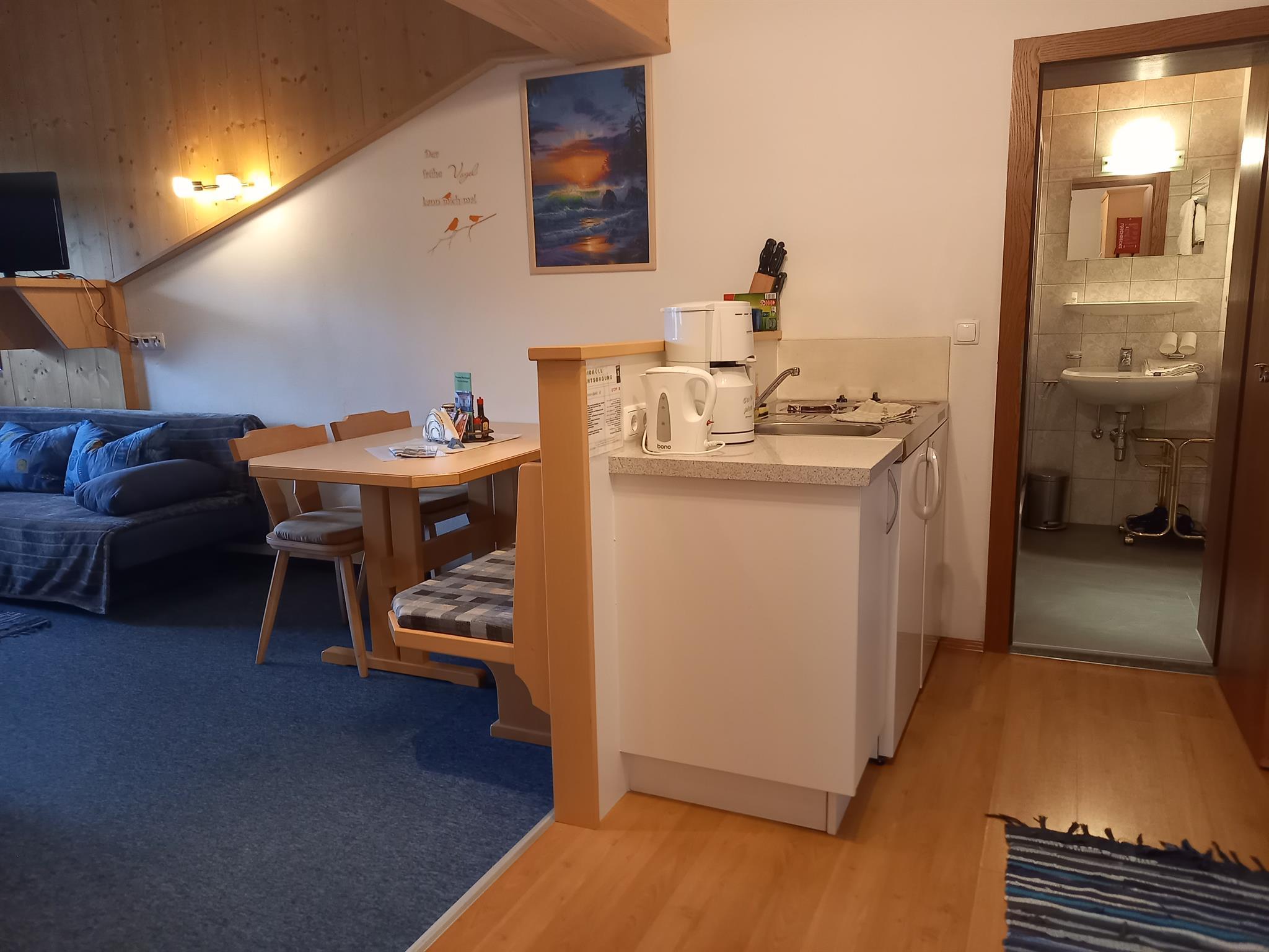 geräumige Einraum-Ferienwohnung für bis zu 3 Personen mit Platz für ein Kinderbett bzw. Schlafcouch