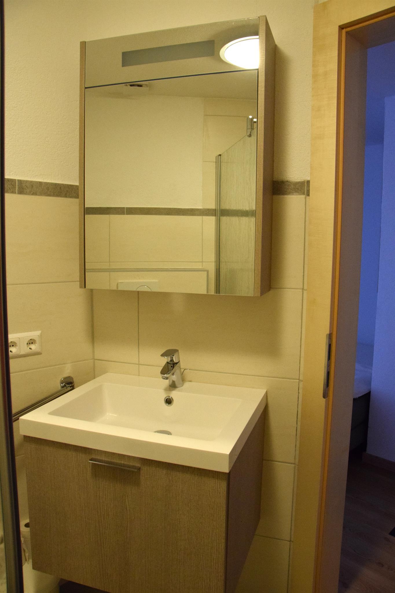 Badezimmer mit großer Dusche, Waschbecken +Wc.