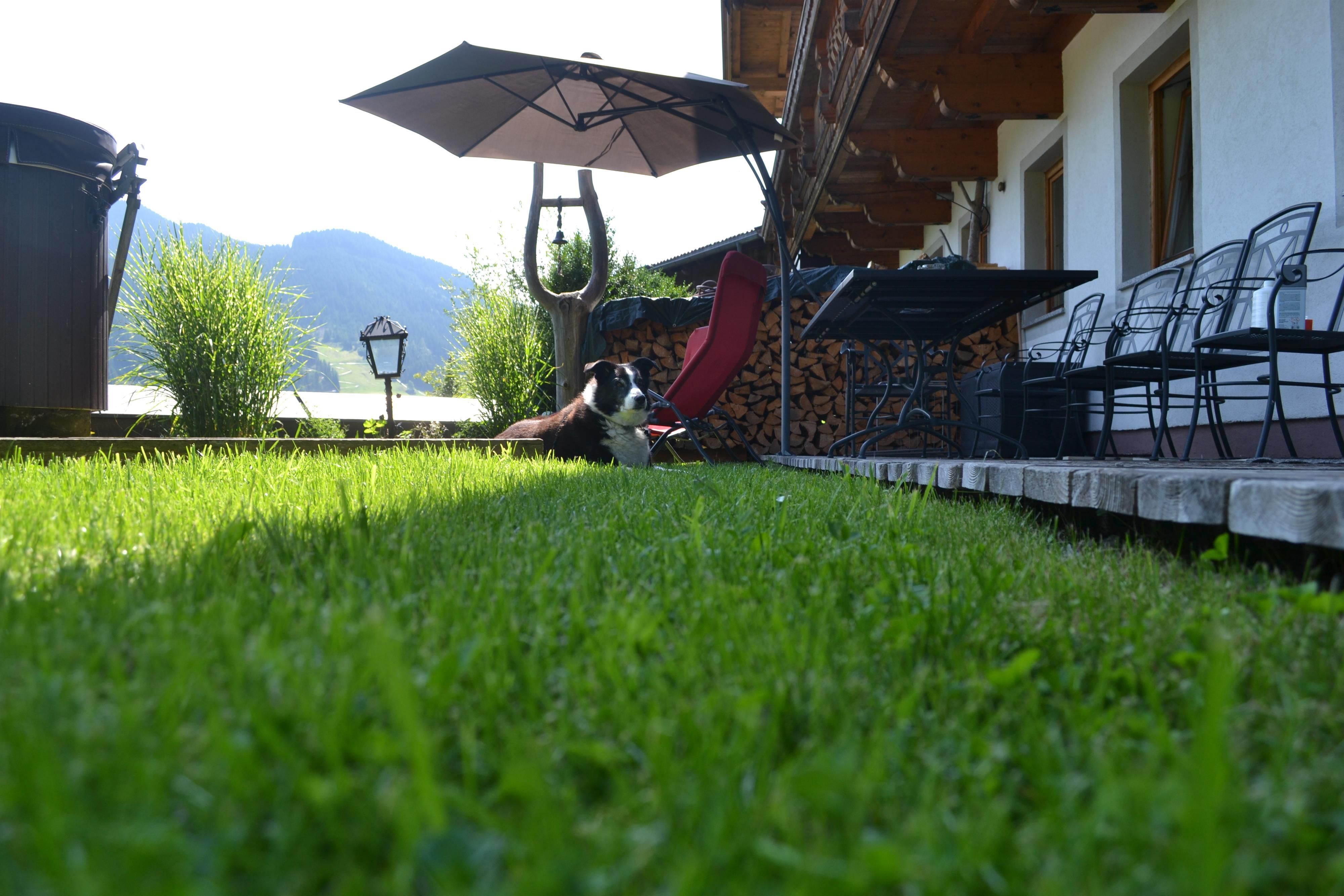 Die in ländlicher Gegend gelegene, sonnige Ferienwohnung mit Küche, Dusche und WC sowie einem Wohn-/Schlafraum mit Boxspringbett aus Zirbenholz, befindet sich im Untergeschoss unseres 3-stöckigen Hauses. Die Wohnung hat einen Parkplatz sowie separaten Eingang. Das Freigelände mit Terrasse bzw. Rasenfläche mit Blick in die Kitzbüheler Alpen ist allen Seiten eingezäunt, damit sich auch ihr Vierbeiner gefahrlos bewegen kann.