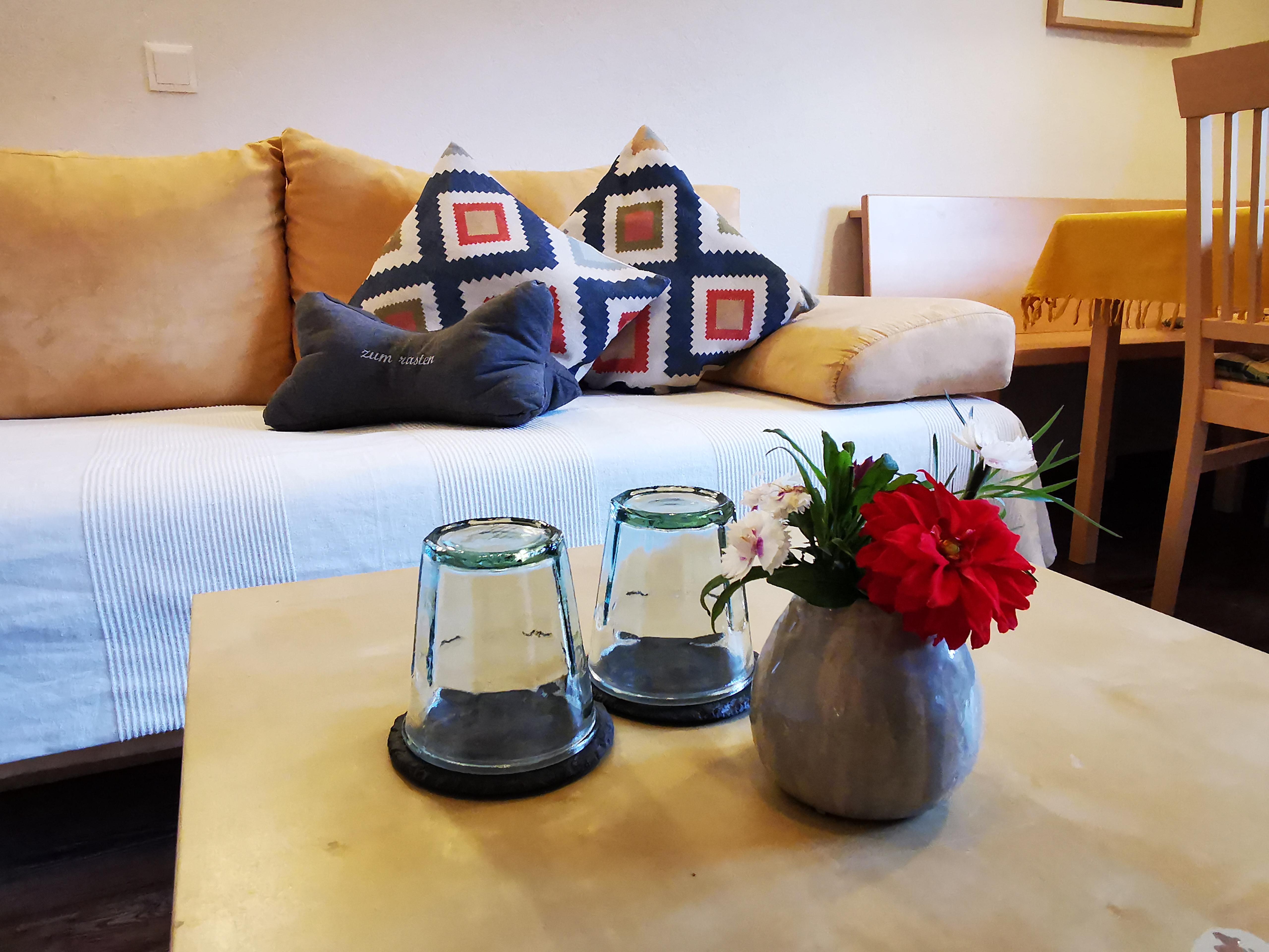 Die Appartements sind gemütlich eingerichtet jeweils mit einem Schlafraum und einer Schlafcouch im Wohnraum, Kochnische und Bad. Holzfußboden, eine Sitzecke sowie ein Couch, TV und Telefon machen dem Wohnraum zum zweiten Zuhause.