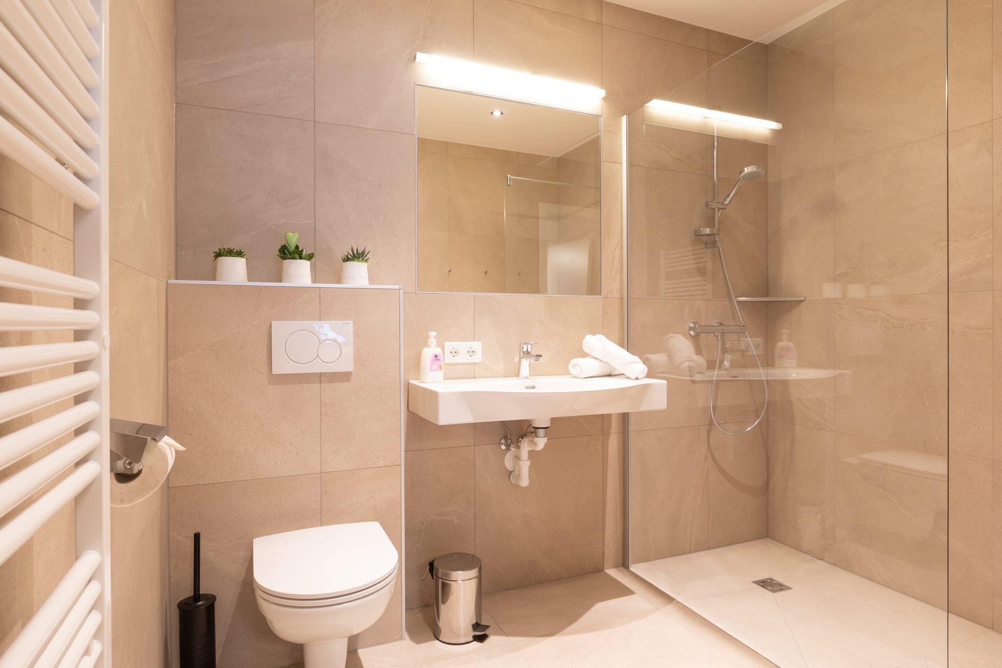 Die neuen Appartements befinden sich im Parterre, in dem 3 - 5 Personen auf ca. 45 m² Wohnfläche Platz finden und verfügen über ein Badezimmer. Die Küche ist voll ausgestattet und bietet einen einladenden Wohn- und Essbereich mit großem Esstisch und Schlafsofa. Bettwäsche und Handtücher sind inklusive.