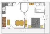 Das neu renovierte Appartement für 1 bis 4 Personen ist mit Küche, Wohnzimmer mit Sofa und Esstisch, 1 Schlafzimmer und 1 Badezimmer ausgestattet. Das Badezimmer ist mit Dusche/WC.