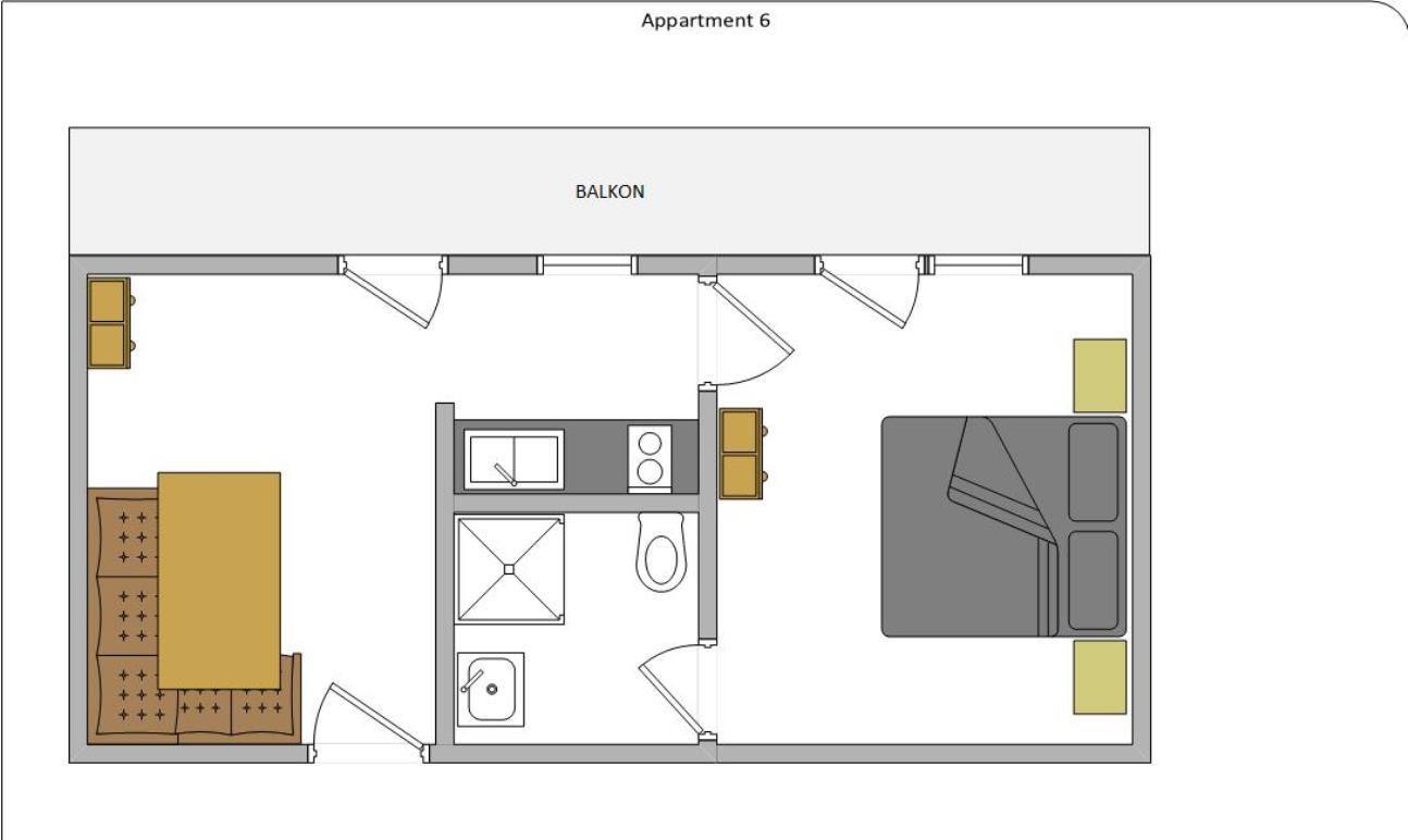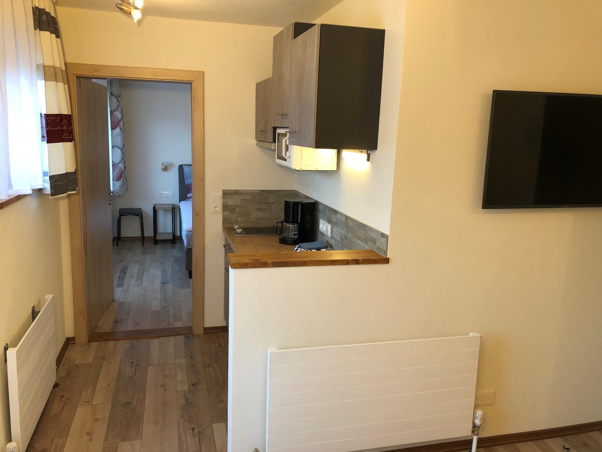 Das neu renovierte Appartement für 1 bis 2 Personen ist mit Küche, Schlafzimmer und Badezimmer ausgestattet.