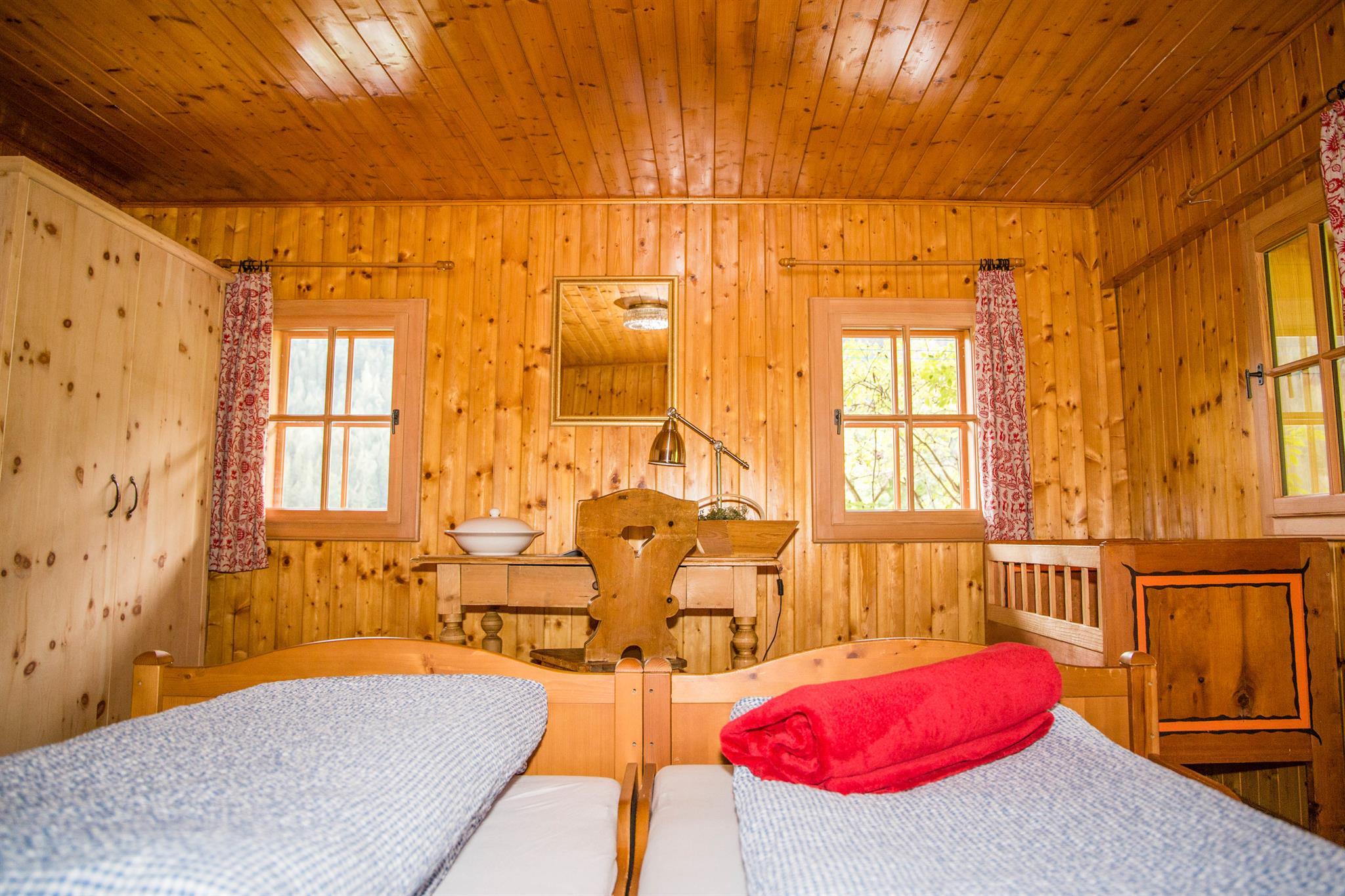 Der Tradlhof liegt auf 1.225m Seehöhe, er bietet 3 Schlafzimmer, 2 mit Doppelbett und ein Zimmer mit 2 Stockbetten. Die Zirbenmöbel verbreiten einen angenehmen Duft im Haus. Ein Kinderbett sowie ein weiteres Doppelbett im Gang im 1 Stock runden die Schalfbereiche ab. Eine vollausgestattete Küche mit Holzherd, sowie das Highlight die alte Stube mit Kachelofen machen Ihren aufenthalt für Sie zu einem unvergesslichen Erlebnis. Ein Sommer oder Winter wie damals. Es befinden sich 2 Wc`s im Haus. Das Bad ist mit Dusche & Waschmachine ausgestattet. Im alten Stall finden Sie neben einer Werkbank auch Platz für Ihre Skier, je nach Jahreszeit ein Grill, Tische und Liegestühle oder Schneeschuhe und Schlitten für die Gaudi im Schnee.