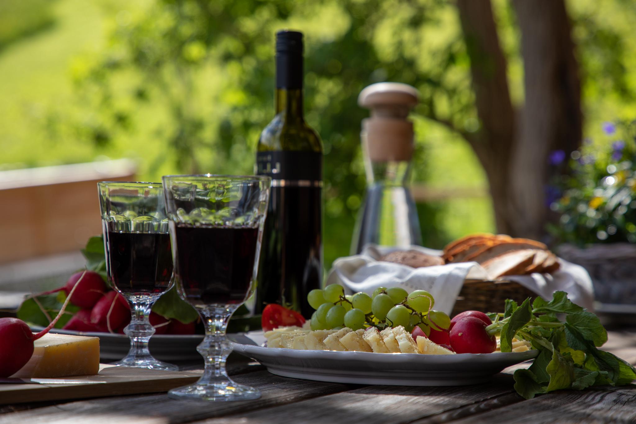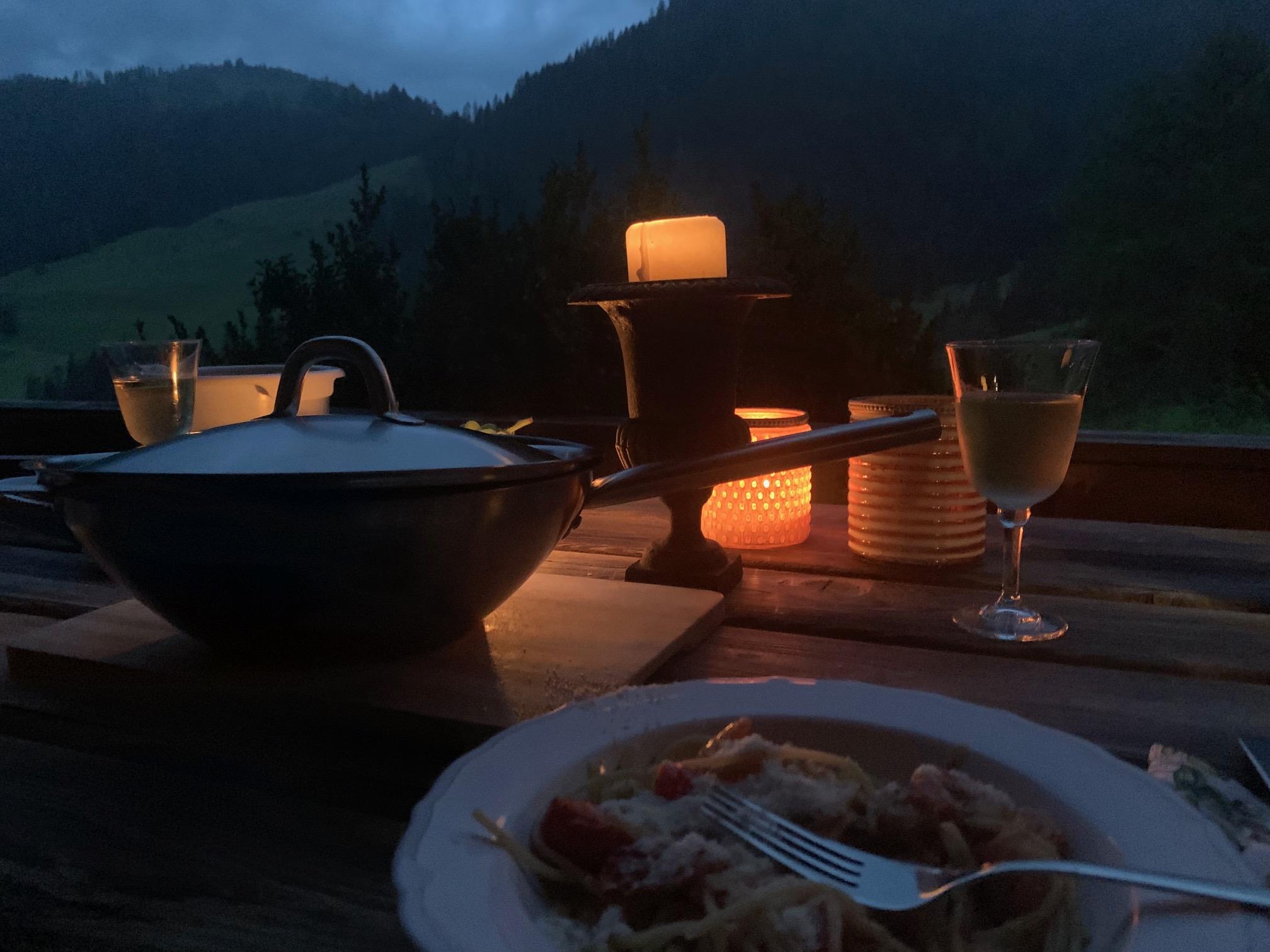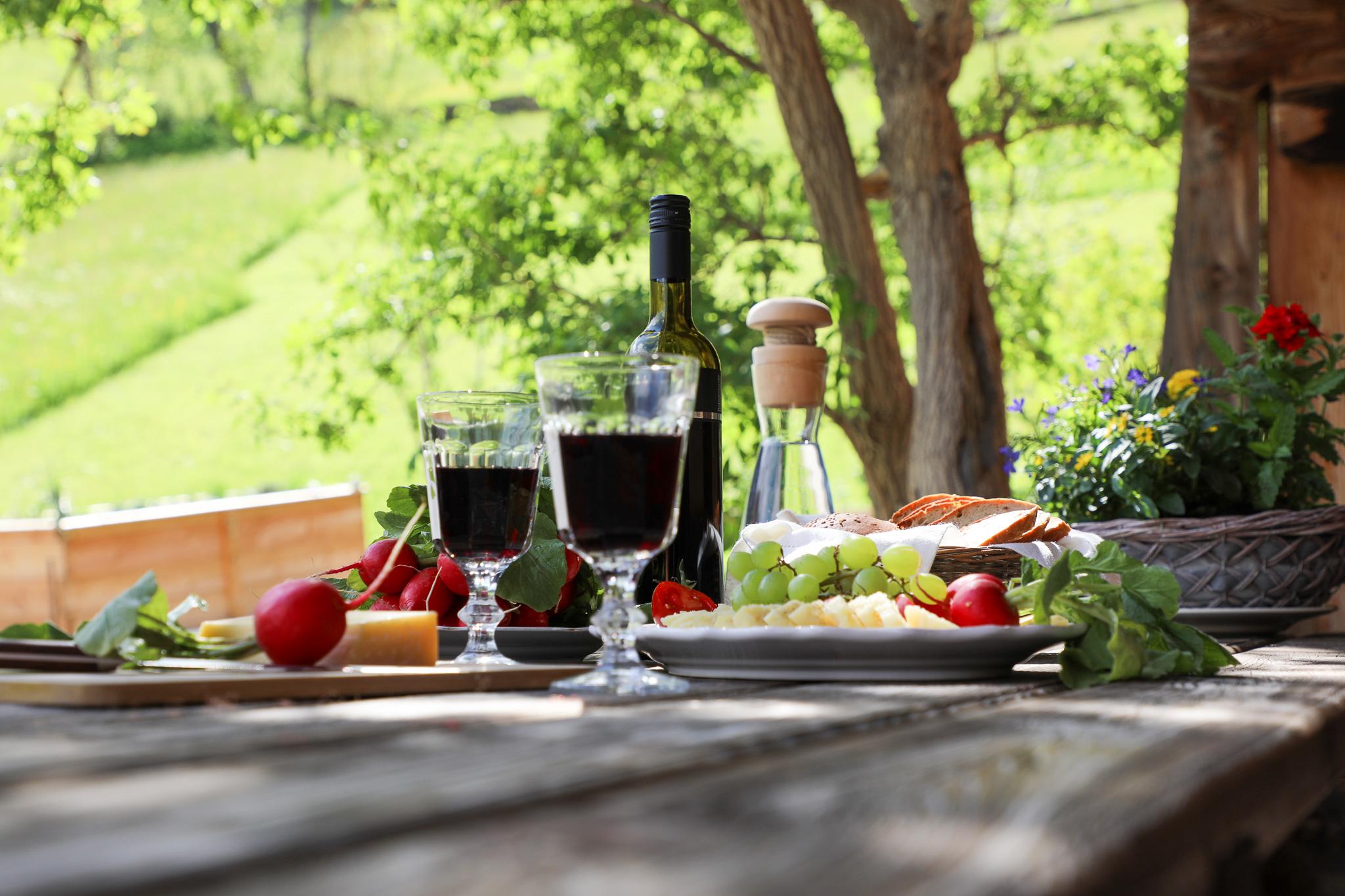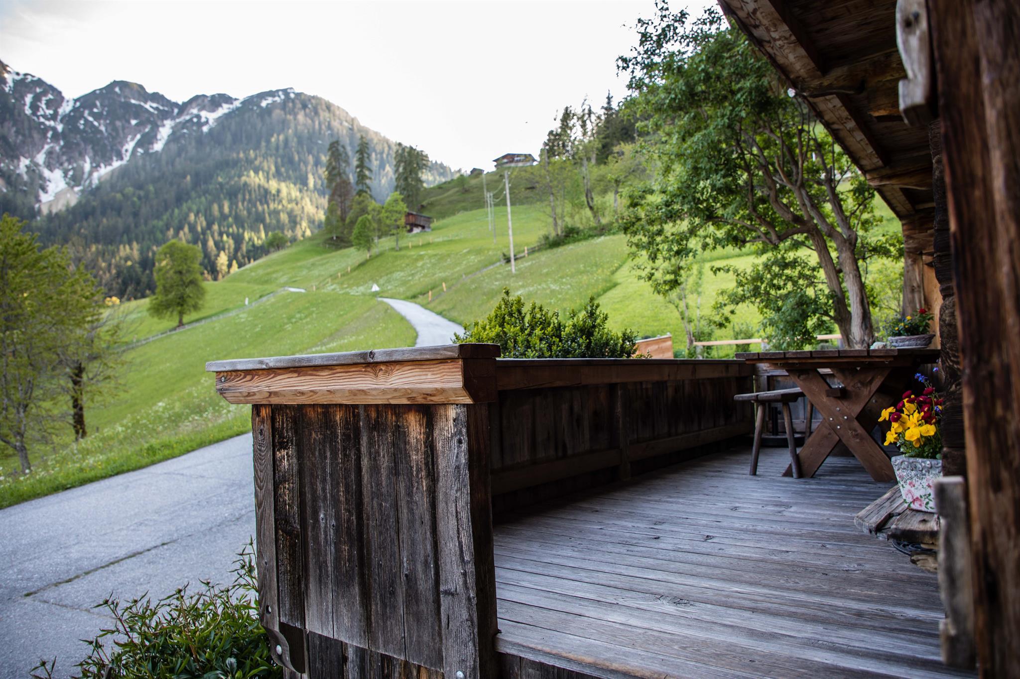 Die Holzterrasse lädt zum Frühstücken bzw. Sterne schauen ein.
