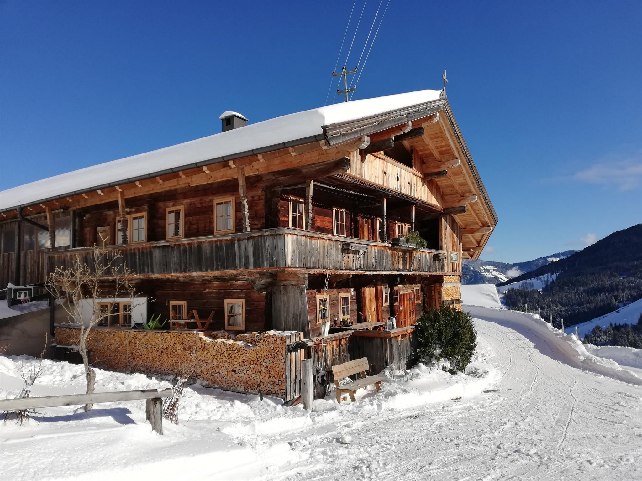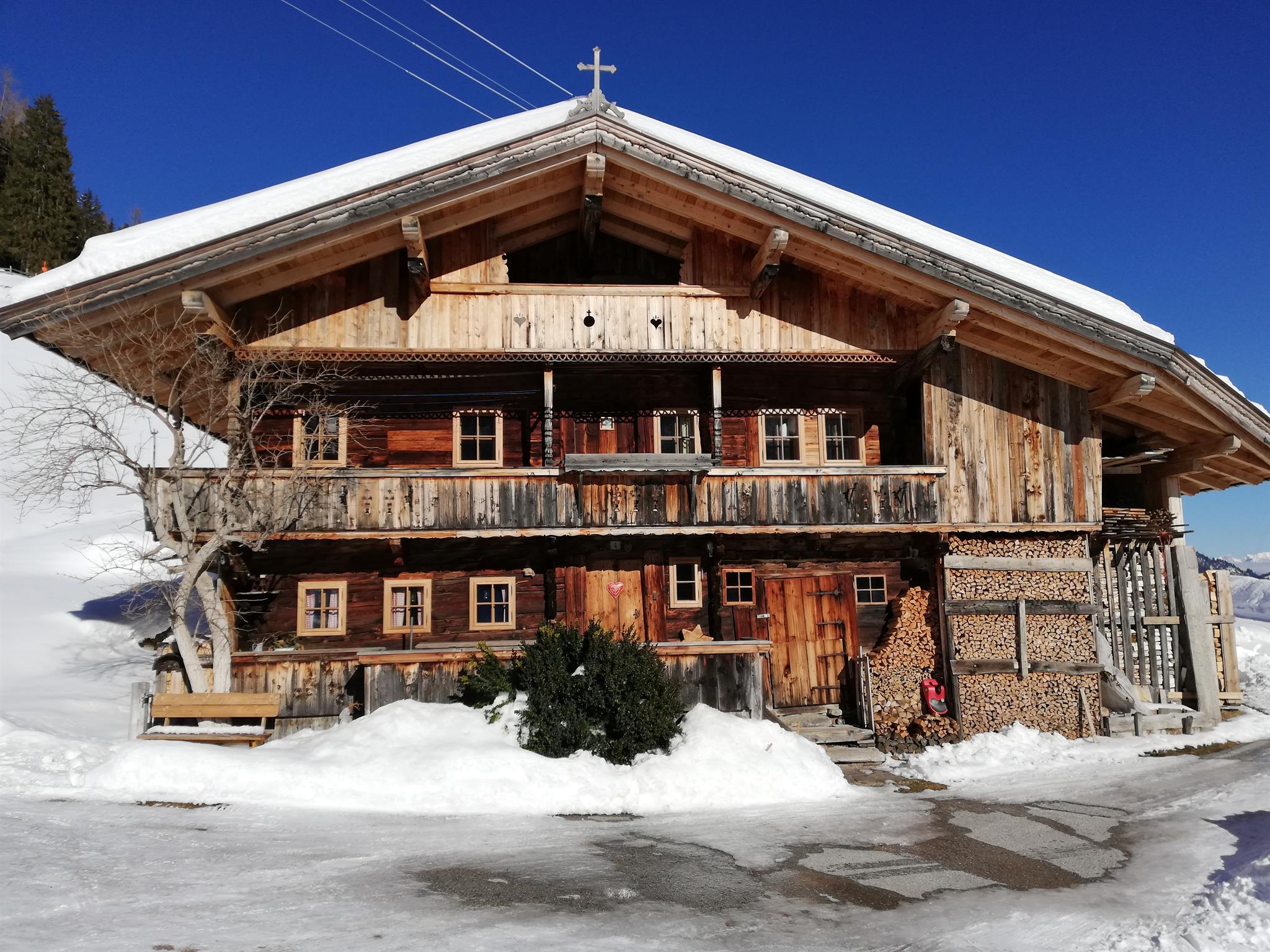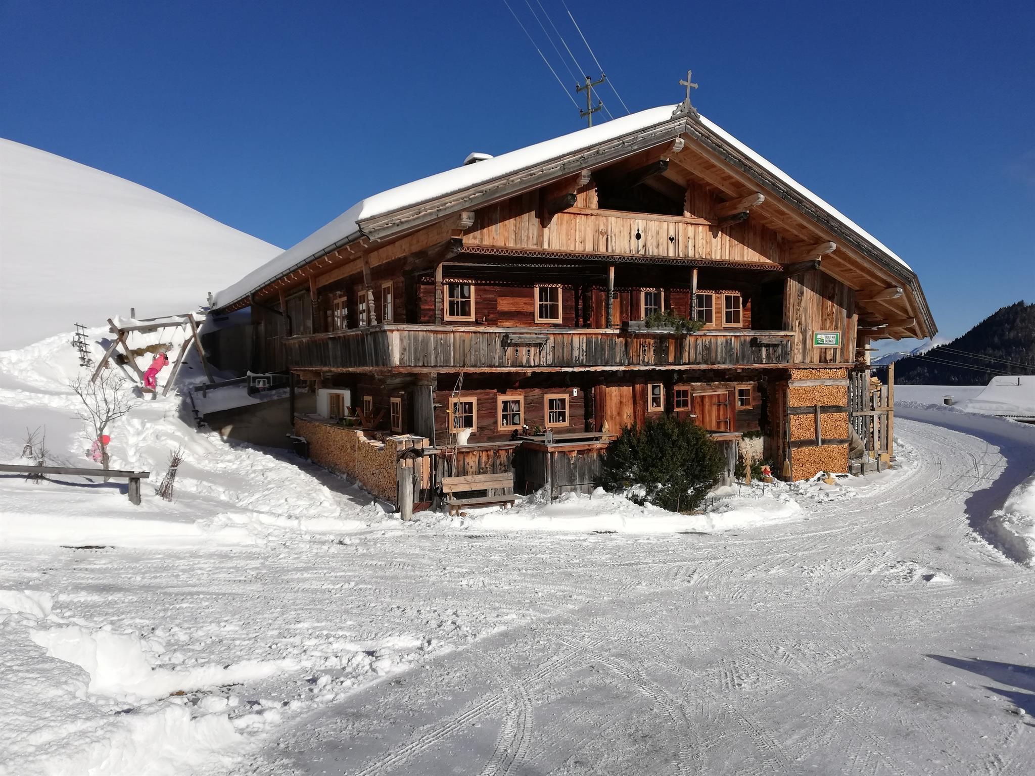 Herzlich willkommen am Tradlhof in 1.225m Seehöhe. Ankommen & entspannen ist unser Kredo. Sie sollen sich in unserem 400 Jahre alten Hof von Beginn an wohlfühlen. Der Tradlhof ist sehr gut ausgestattet, im Haus befinden sich eine kpl ausgestattet Küche, Bad mit Dusche & WC, Waschmaschine sowie Fussbodenheizung und extra WC. In der gemütlichen alten Stube ist ein Kachelofen, eine Liegefläche sowie ein großer Tisch. Gläser & Geschirr ist ausreichnender Zahl vorhanden. In den Schlafzimmern ist Erholung angesagt, mit der frischen Bergluft schlafen und träumen Sie sich in die Erholung. Kaffee & 1 Packung Tee sind im Mietpreis inbegriffen. Eine Holzterrasse vor und eine Steinterrasse neben dem Haus stehen zur Verfügung. Der Spielplatz mit Schaukel, Sandkiste und Hängematte begeistert Klein & Groß. Diverse Untensillien je nach Jahreszeit wie, Sonnenstühle, Schlitten, Rutschteller Wanderstöcke & viele Spiele stehen zur Verfügung.