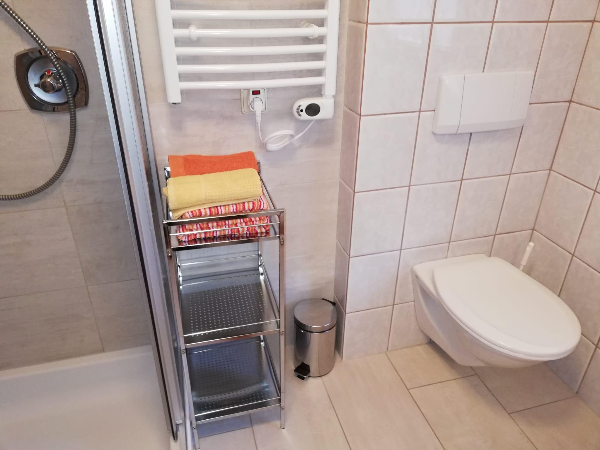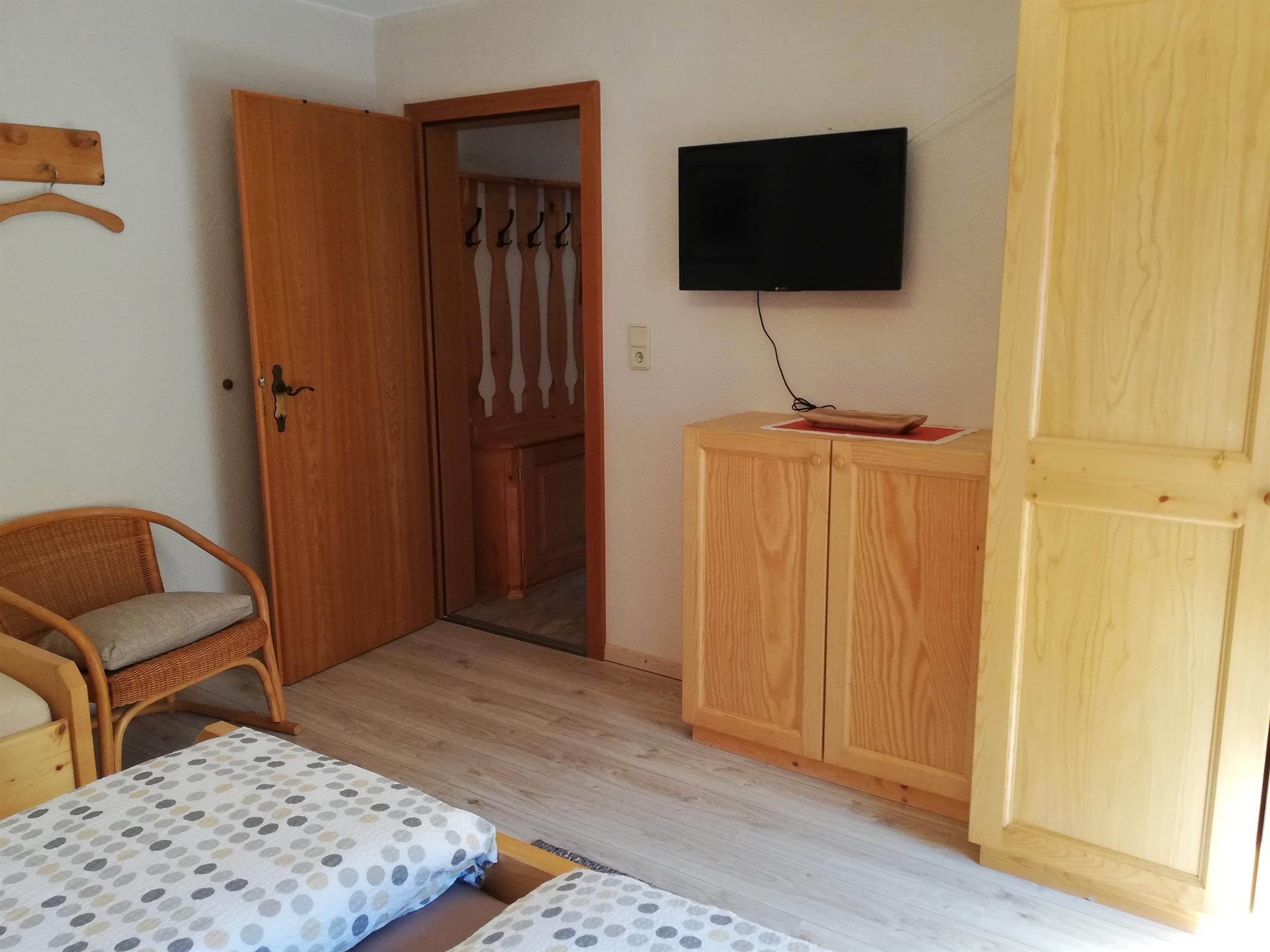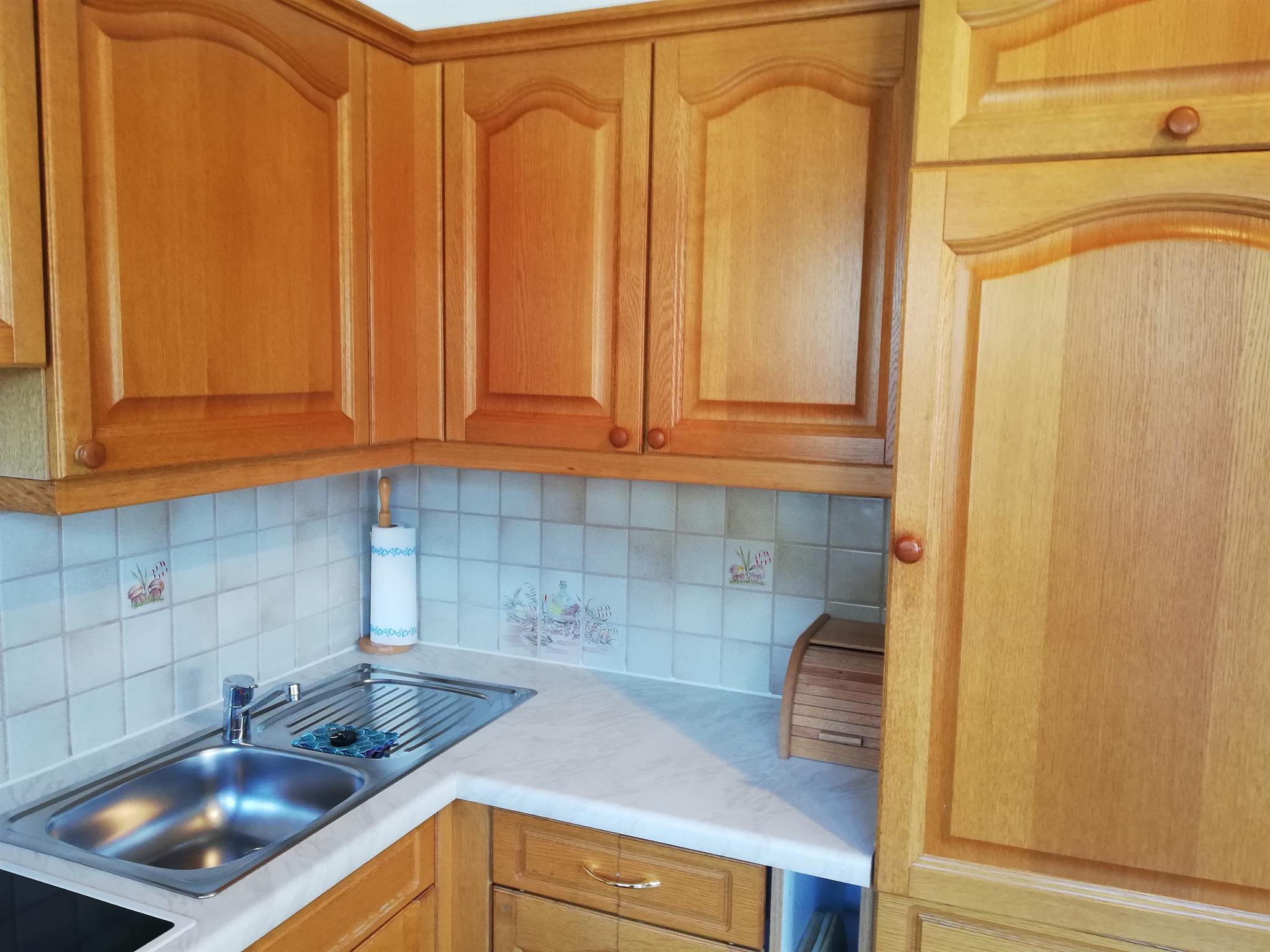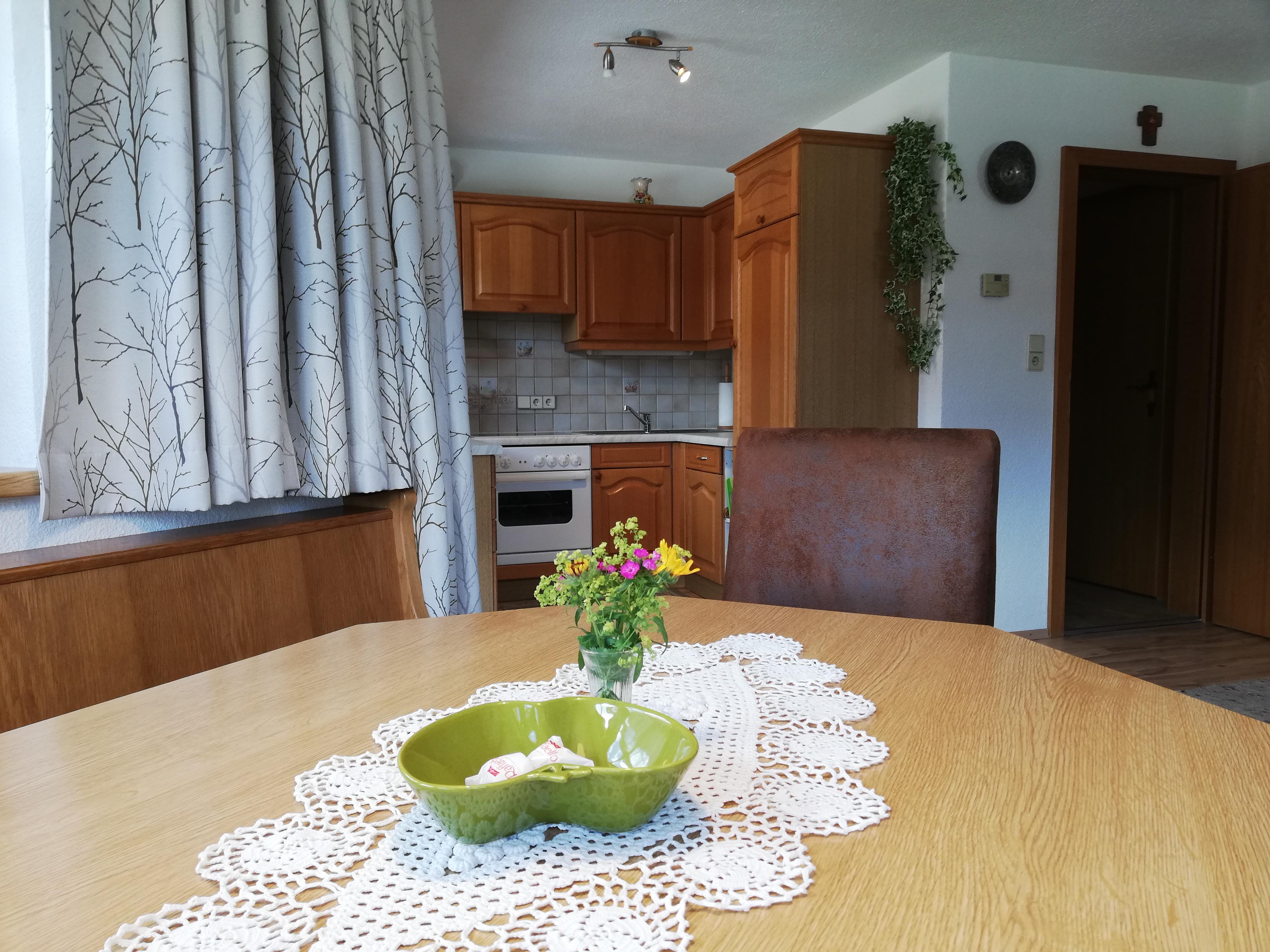 50 m², komplett eingerichtete Wohnküche mit Kochecke , gemütlicher Erker mit Essbereich, Einbauliege, SAT- Flach-TV und Radio/CD-Spieler, Schlafzimmer ( 3 Betten) ( Vollholzmöbel, allergikergeeignete Bettwäsche, Baby- Reisebett gratis auf Anfrage, Dusche/WC mit Haarfön, Hand- u. Duschtücher, Kosmetikspiegel, Vorraum , Garderobe, möblierter u. überdachter Balkon.