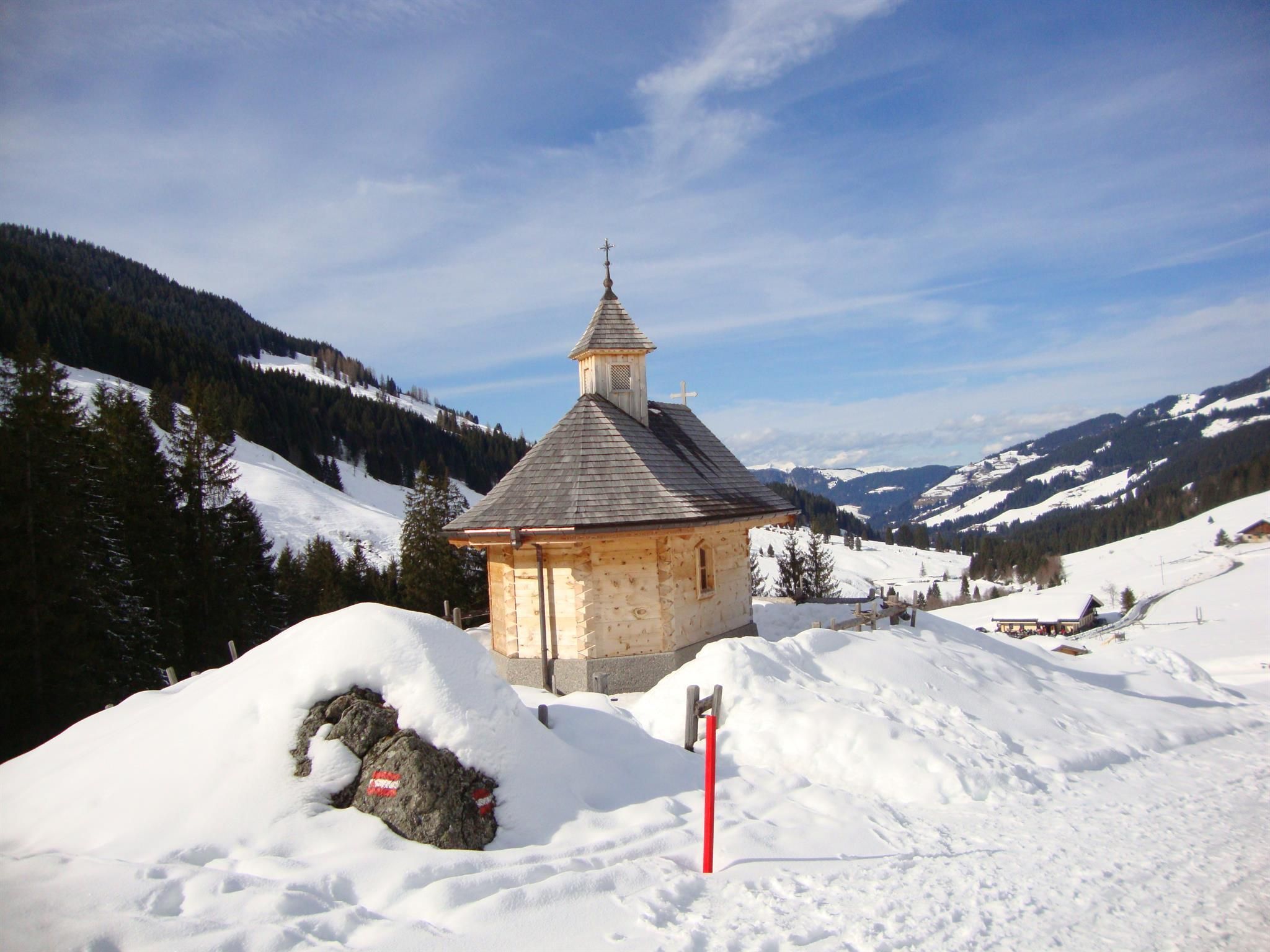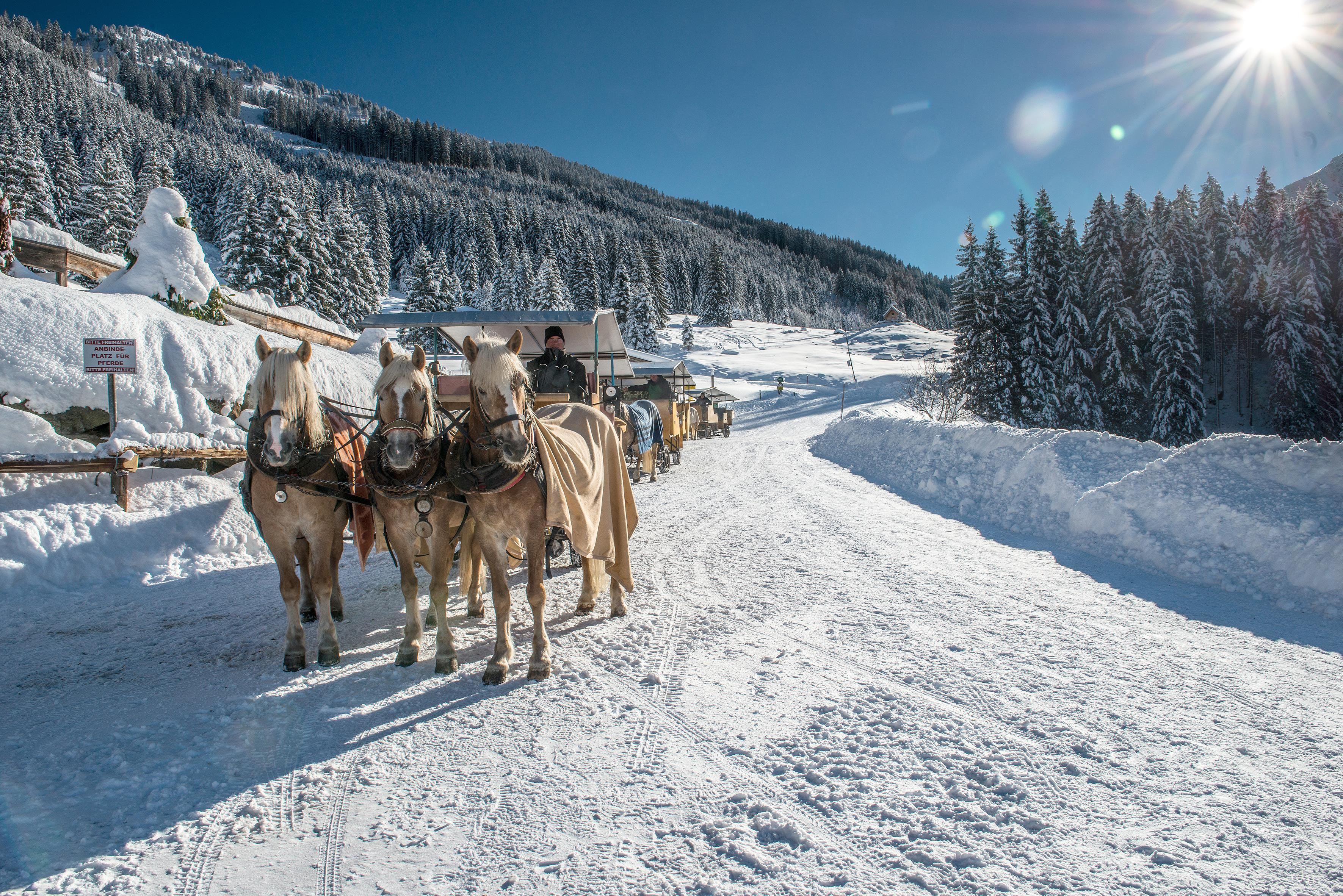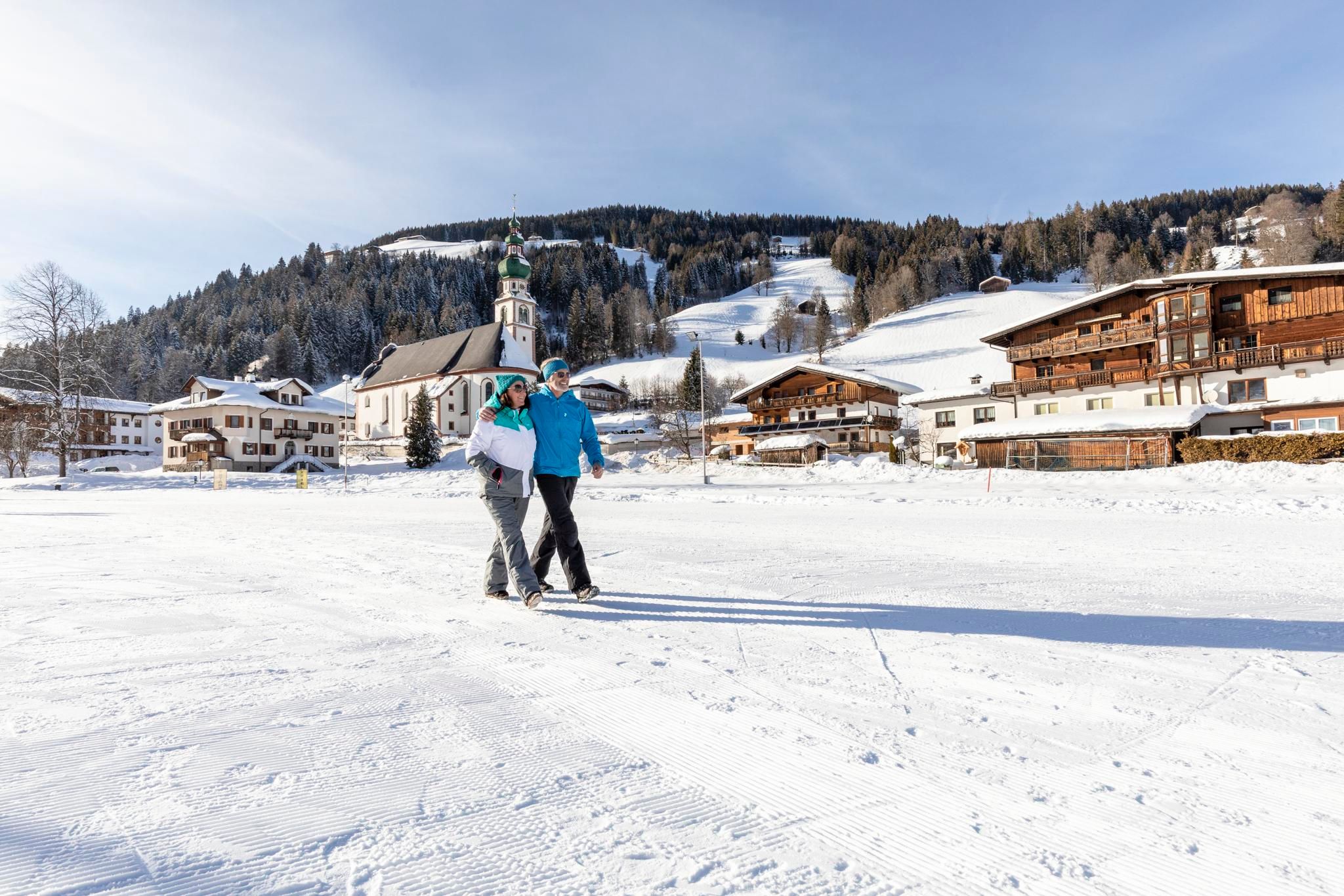 Geführte Schneeschuh-/Winterwanderung, Langlaufloipen, Skibus, Nightliner, Eislaufen, Eisstockschießen.