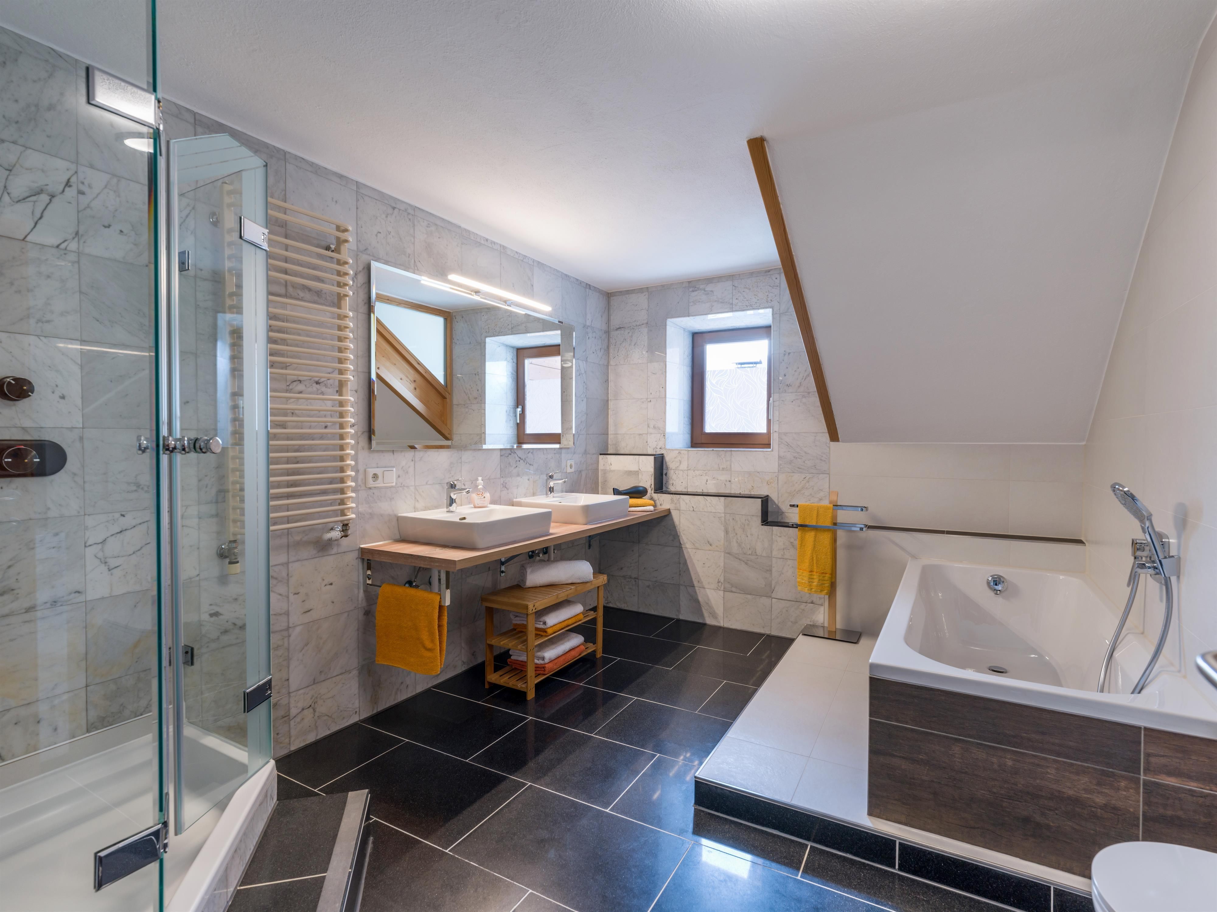 Wilkommen in der Charmanten weitläufigen Ferienwohnung Neuheim Grande auf großzügigen 114 m², mit großem Wohnzimmer und herrlichem Blick auf Wiesen und Berge. Küche mit allem was man braucht und großem Tisch zum gemütlichen zusammen sein. Sehr großes Bad mit Dusche, Badewanne, Doppelwaschbecken, Waschmaschine. Eine extra Toilette ( im Eingangsbereich). 2 Schlafzimmer mit je einem Doppelbett und einem Einzelbett. Bei Bedarf Babybett und Zusatzbett.