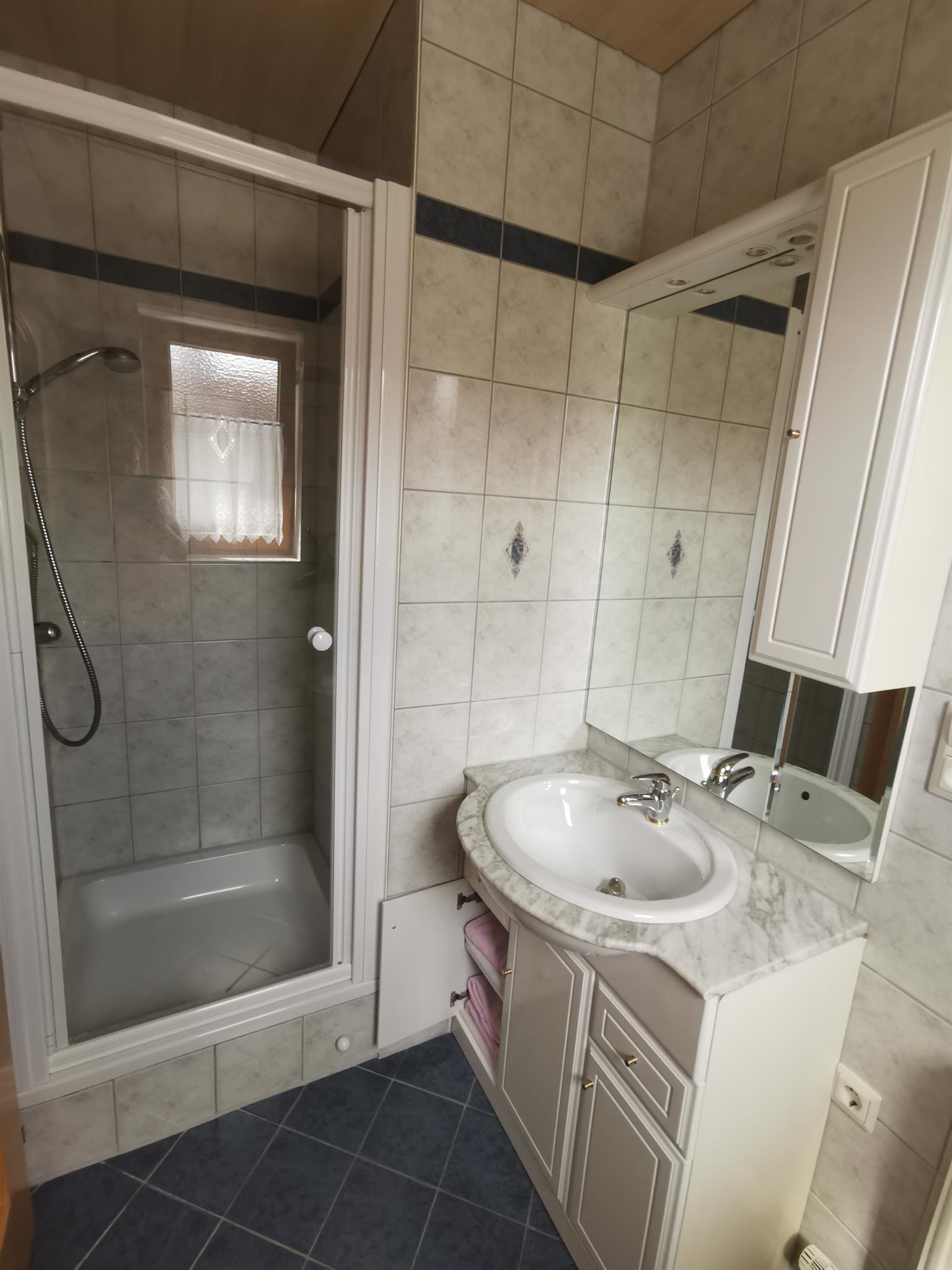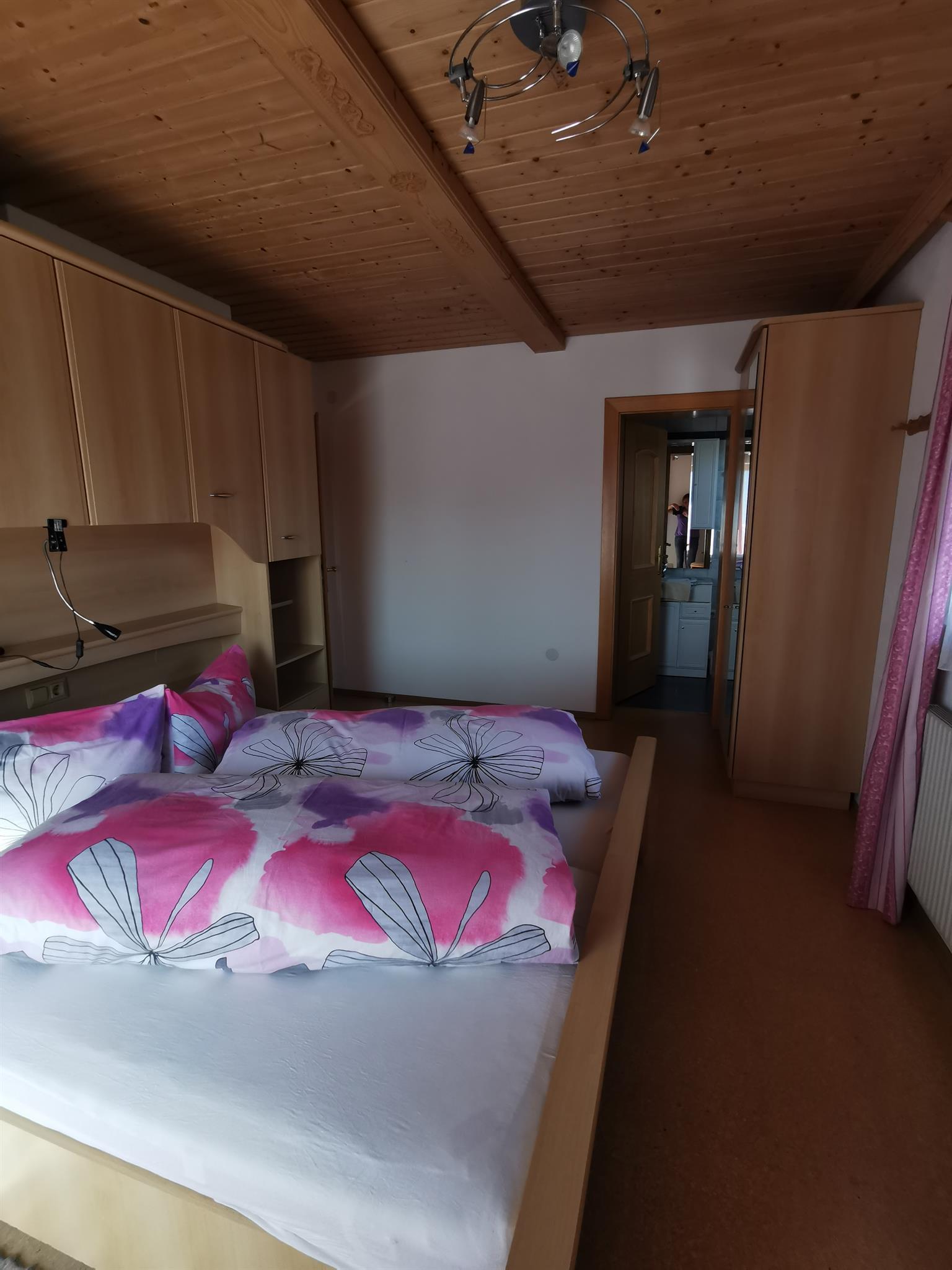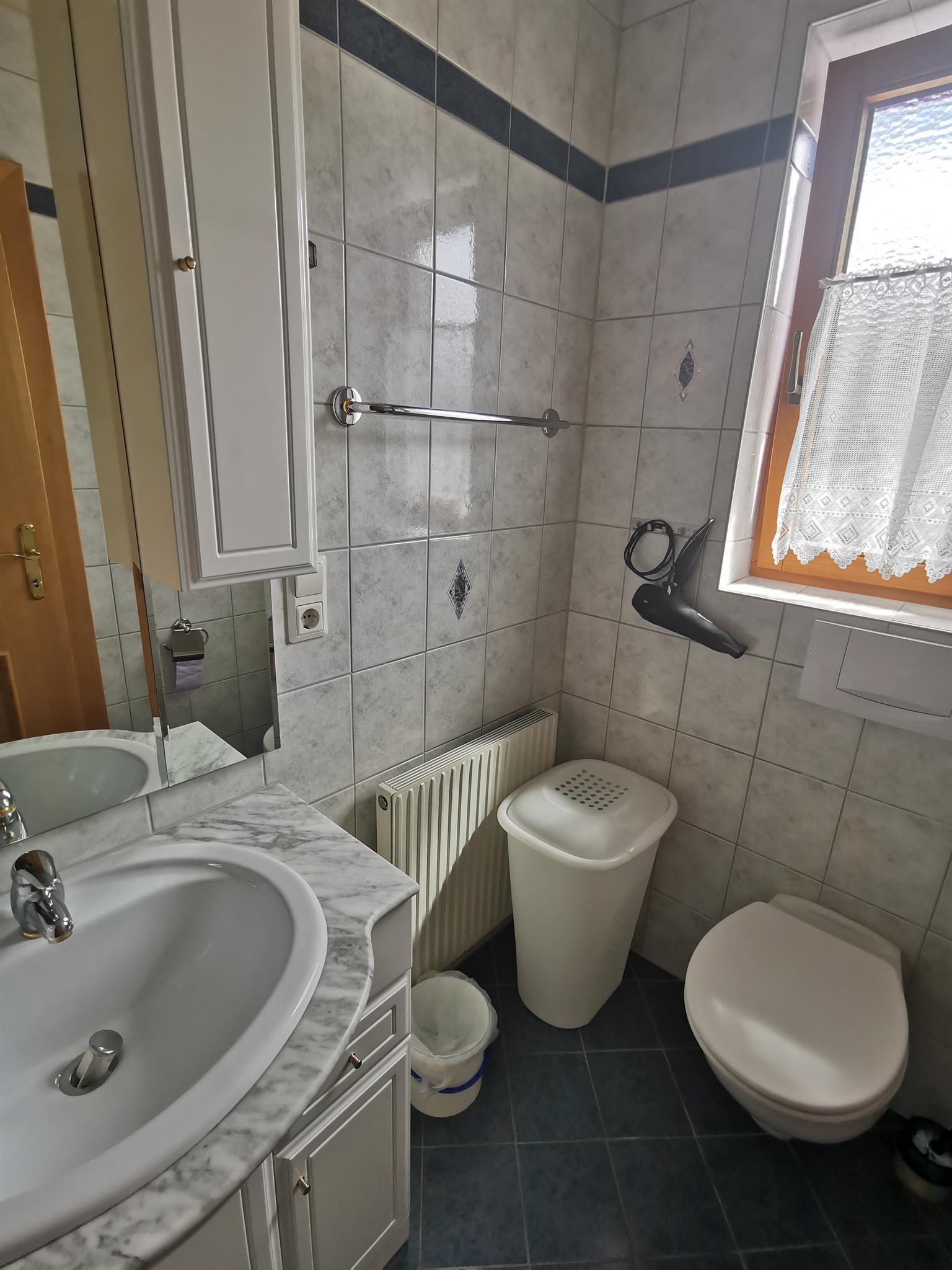 Unser Kuschelappartement ist ideal für zwei Personen. Die Ferienwohnung liegt im 1. Stock mit Balkon (Süd und Westseite). Es stehen Balkonstühle und Sonnenschirm bereit. Sie bietet einen Wohnraum mit Kochnische, Doppelzimmer (Bettwäsche vorhanden) sowie Dusche (Handtücher liegen bereit) und WC. Die Kochnische beinhaltet Koch- und Küchengeschirr, Gläser, Herd mit Backofen und vier Herdplatten, Kühlschrank, Kaffeemaschine, Wasserkocher und Eierkocher. Der Wohnraumteil ist mit einem Esstisch, Couch und Wohnwand eingerichtet (SAT-TV und Radio mit CD vorhanden). Der kleine Schwedenofen bereitet so manches wohlige Gefühl (Holz wird zur Verfügung gestellt).