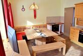 Das Appartement ist im Erdgeschoß und ist die Größte von allen Wohnungen. Die Wohnung verfügt über 4 Schlafräume, 1 Gang, 1 Küche mit Esstisch, 1 Vorratsraum, 1 großes Wohnzimmer, und 3 Bäder. 1. Bad mit WC und Dusche, 2. Bad mit WC und Badewanne, 3. Bad nur Dusche. Von der voll ausgestatteten Küche gelangt man direkt in den großen Garten mit Gartenlaube und Grillmöglichkeit.