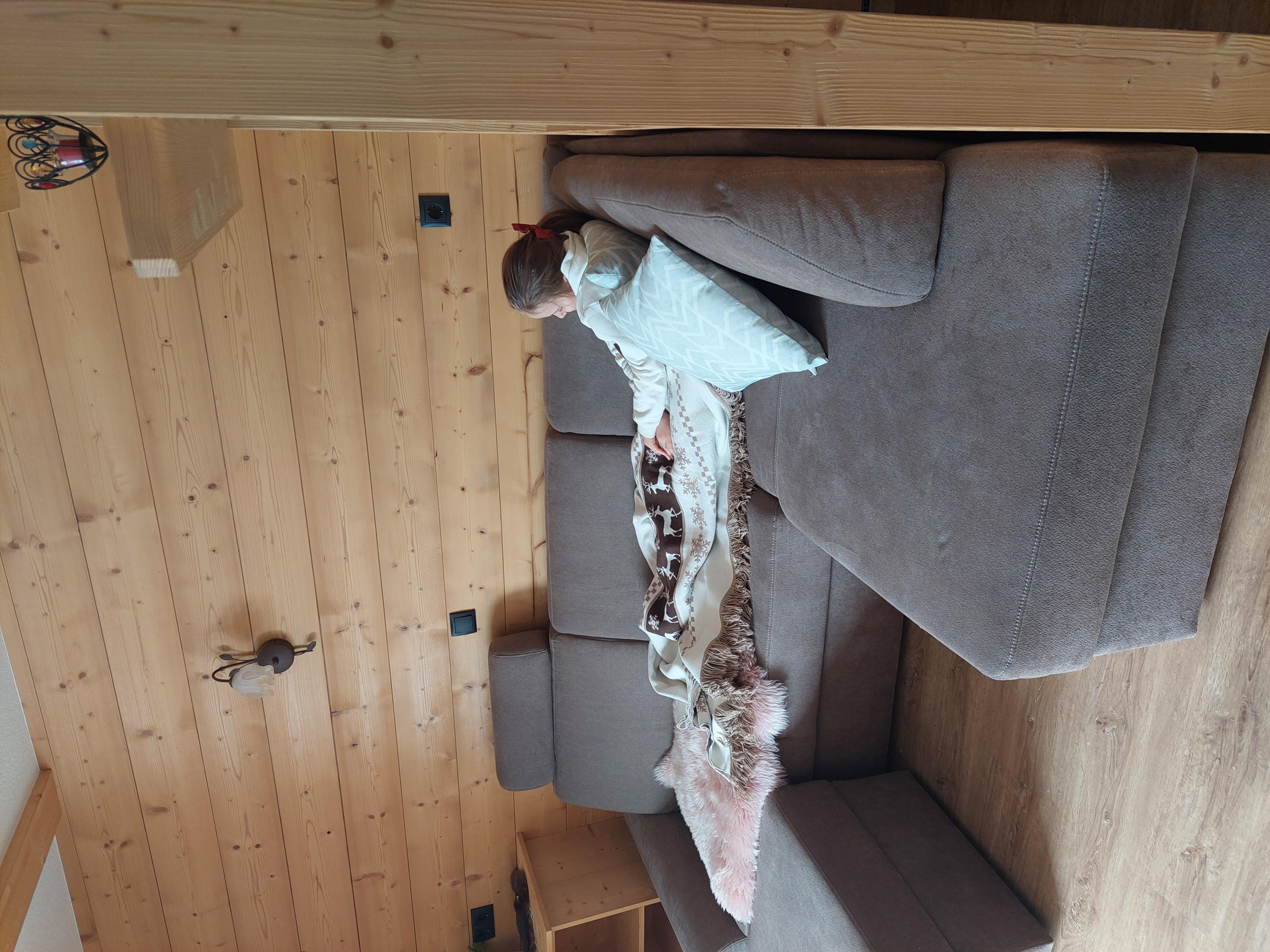 die gemütliche FEWO: ideal für 2 Erwachsene, auch für 2 Erwachsene und 2 KInder 1 großes Schlafzimmer mit Couch , Verbindungstüre in die Wohnküche mit ausziehbarer Couch für die 2 Kinder!