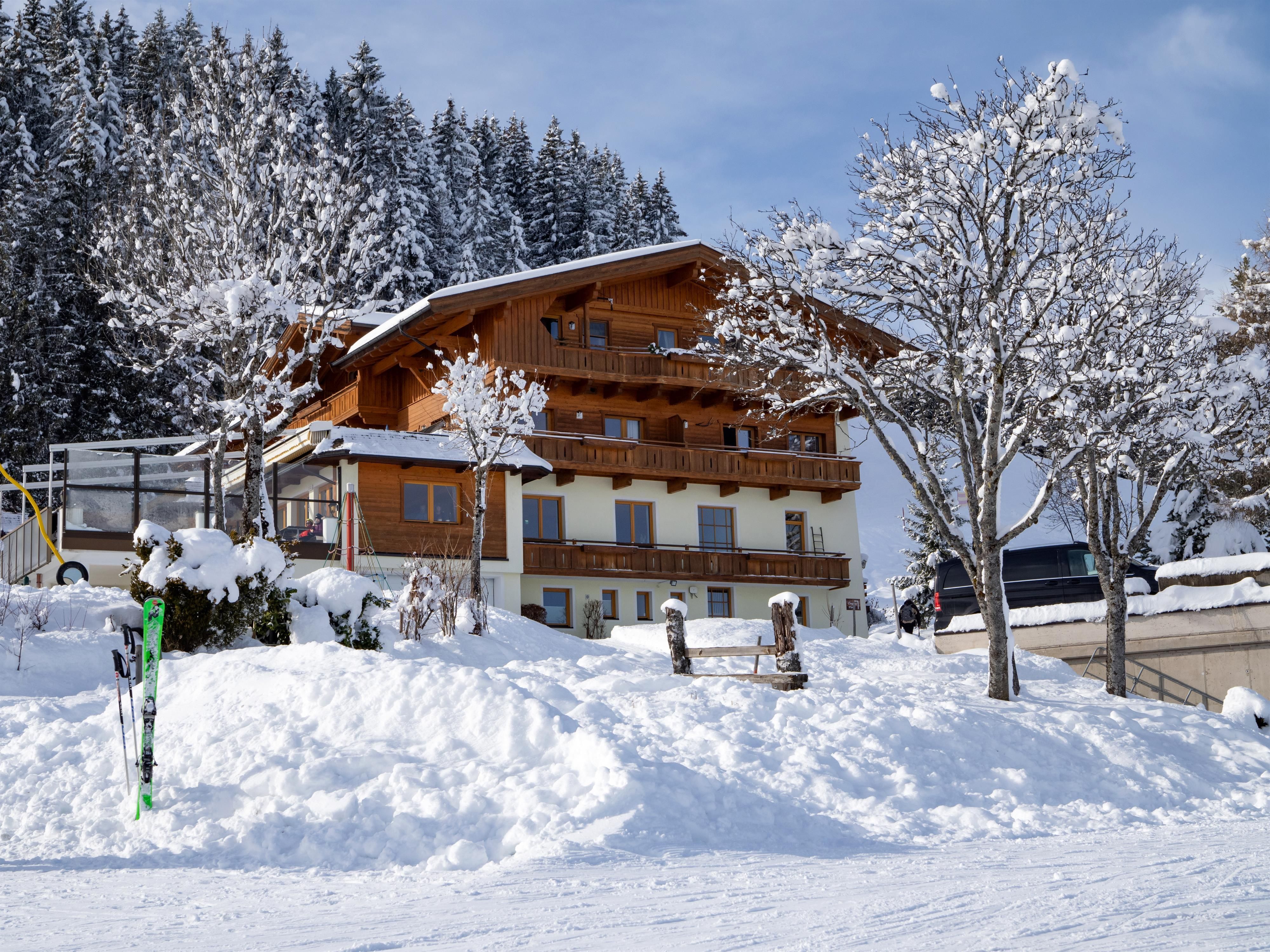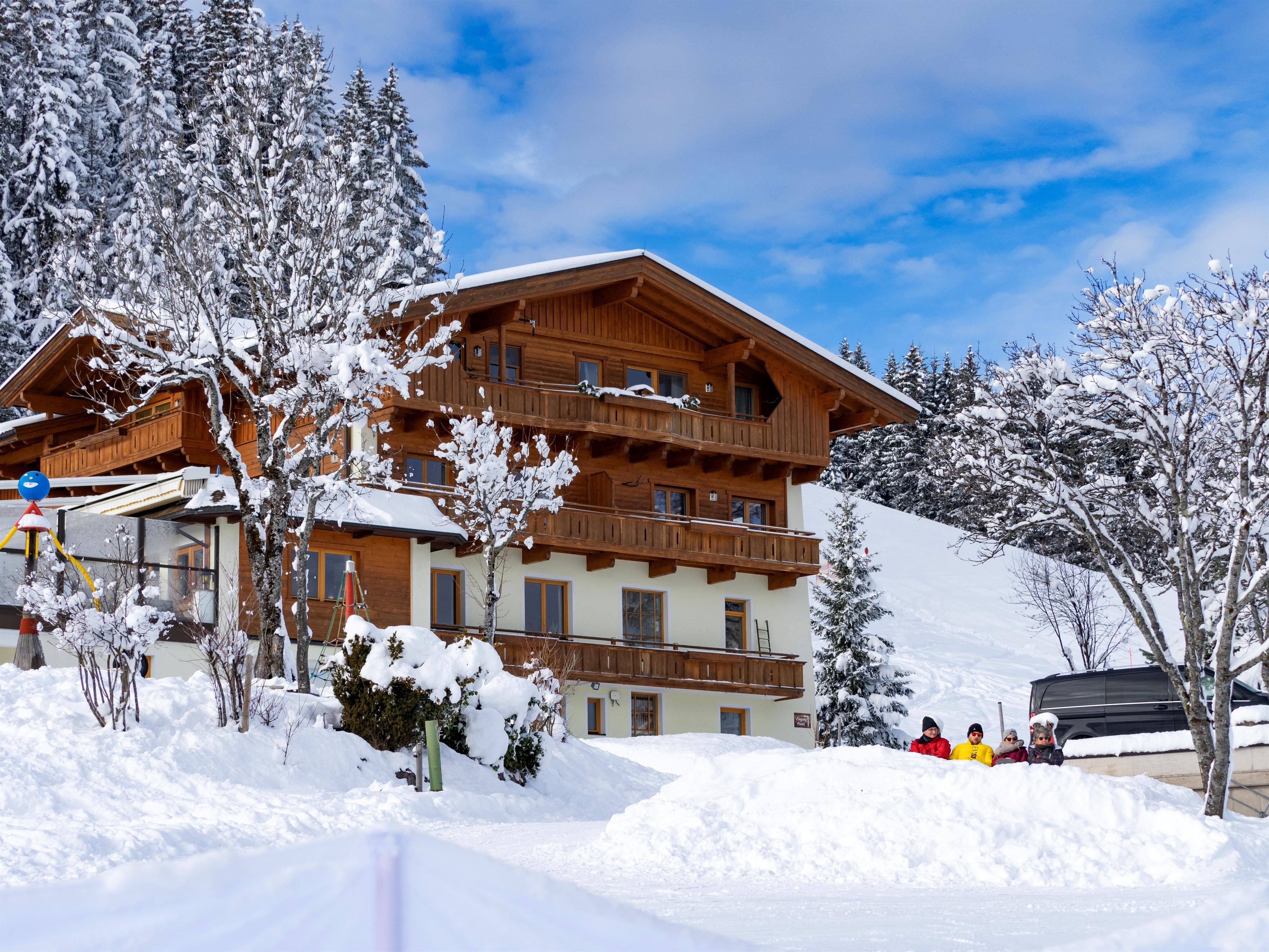 Im Winter: Raus aus dem Skikeller und ab auf die Piste . Am morgen die ersten Spuren ....im Schnee, nachmittags in die Sauna.