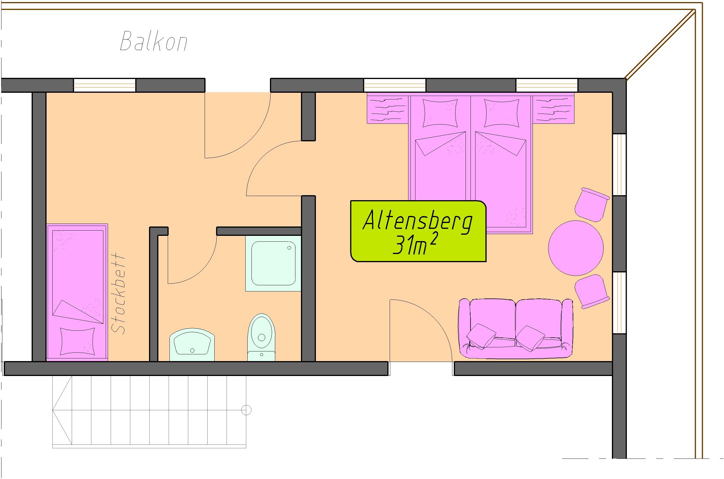 abgetrenner Kinderbereich für 2 Kinder (Stockbett)