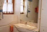 Das Badezimmer ist mit einer Wanne ausgestattet, in welcher man auch duschen kann.