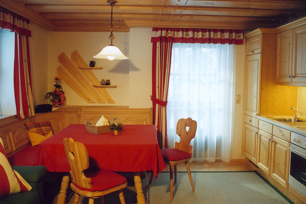 Die helle, freundliche Gestaltung unserer Appartements vermittelt Ihnen ein behagliches Wohngefühl. Vom Balkon aus haben Sie den einzigartigen Ausblick auf den wunderschönen Gosaukamm, wo Sie die letzten Sonnenstrahlen eines erlebnisreichen Tages genießen können. Die Küchen der Wohnungen sind mit Mikrowelle, Cerankochfeld, Kühlschrank mit Gefrierfach, Wasserkocher, Toaster, Bügeleisen, Bügelauflage, Handstaubsauger, Küchenwaage, Mixer und großteils mit Geschirrspüler ausgestattet. Bettwäsche, Handtücher und Geschirrtücher sind ausreichend vorhanden und müssen nicht vom Gast mitgebracht werden. Kinderbett und Hochstuhl werden bei Bedarf gerne bereitgestellt.
